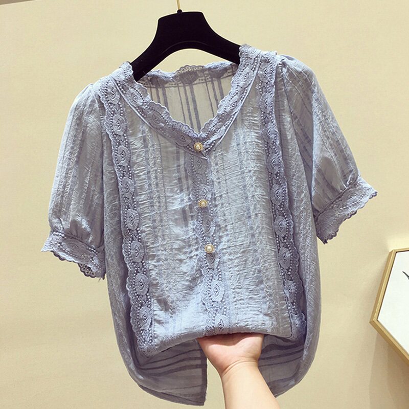 Шифоновый кружевной шелковый летний приталенный корсет, короткий рукав, коллекция 2021, в западном стиле