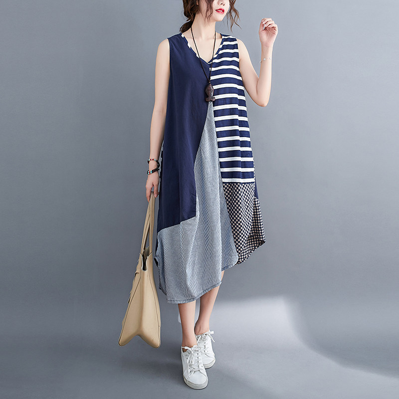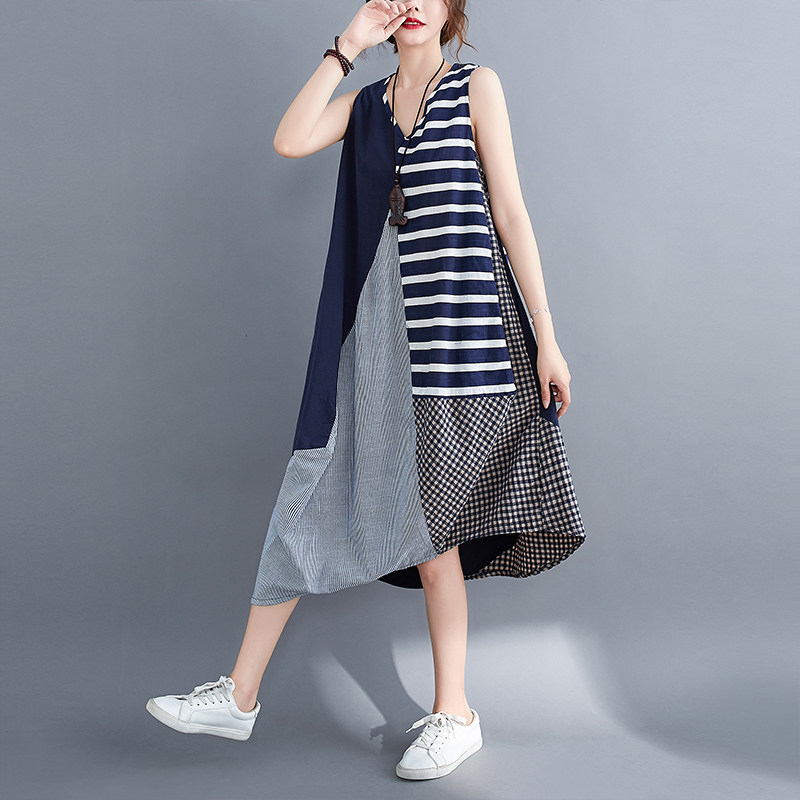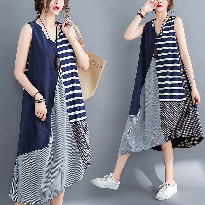 Летняя одежда, платье без рукавов без рукавов, юбка, подходит для полных девушек, большой размер