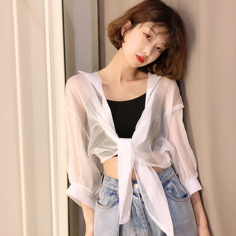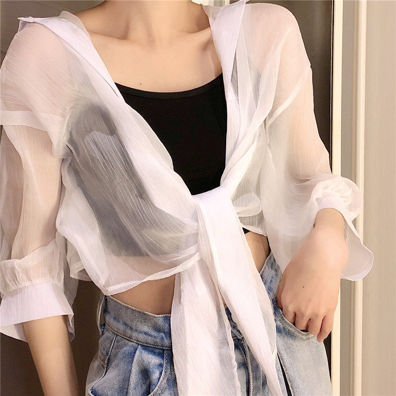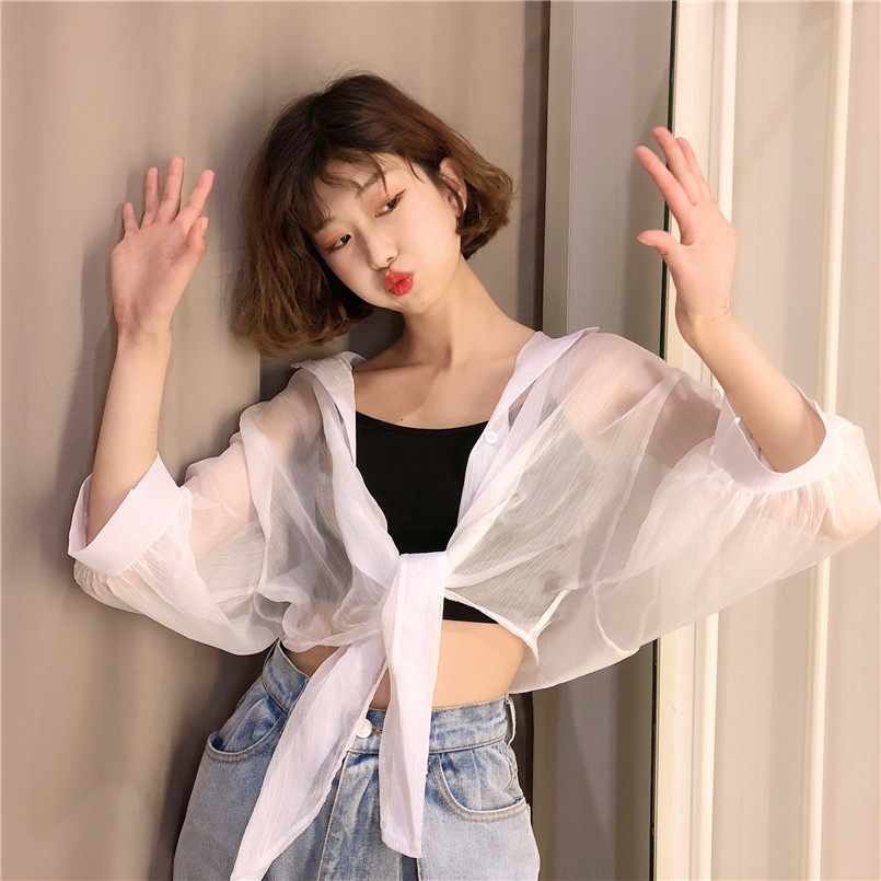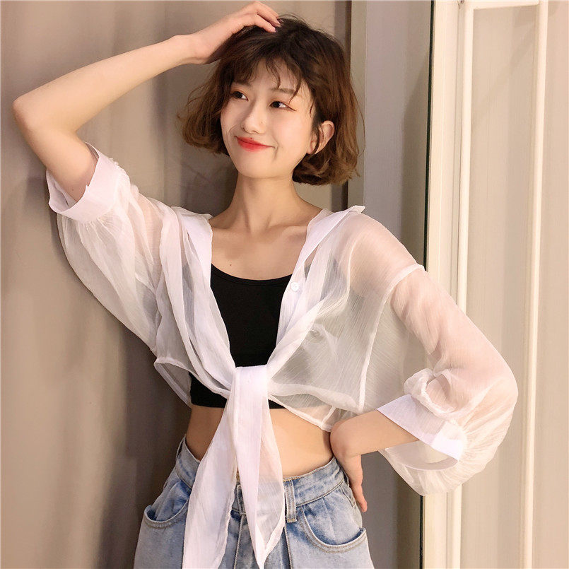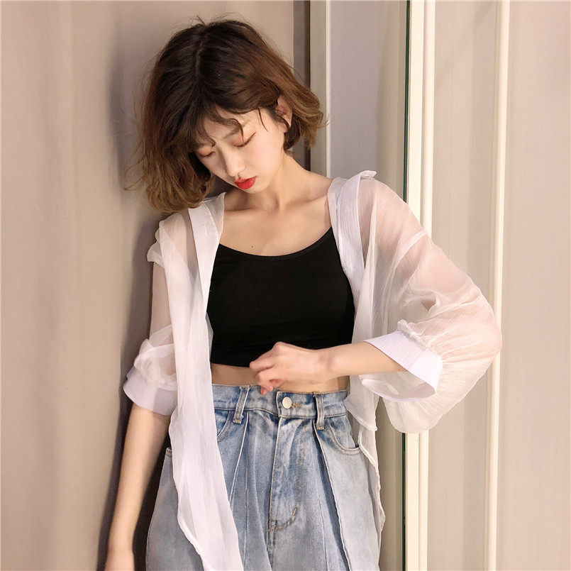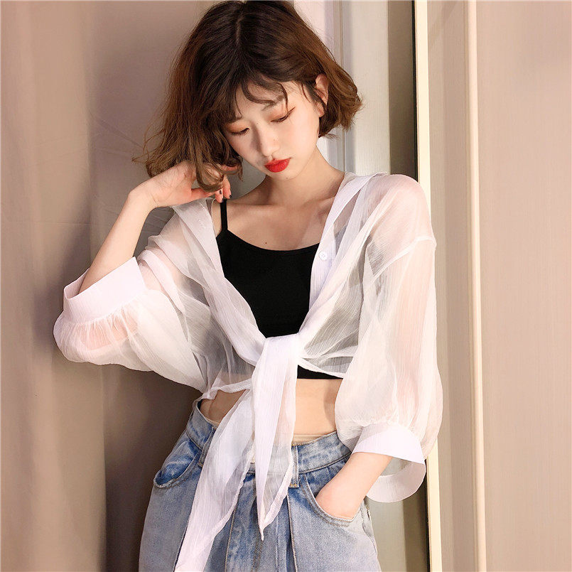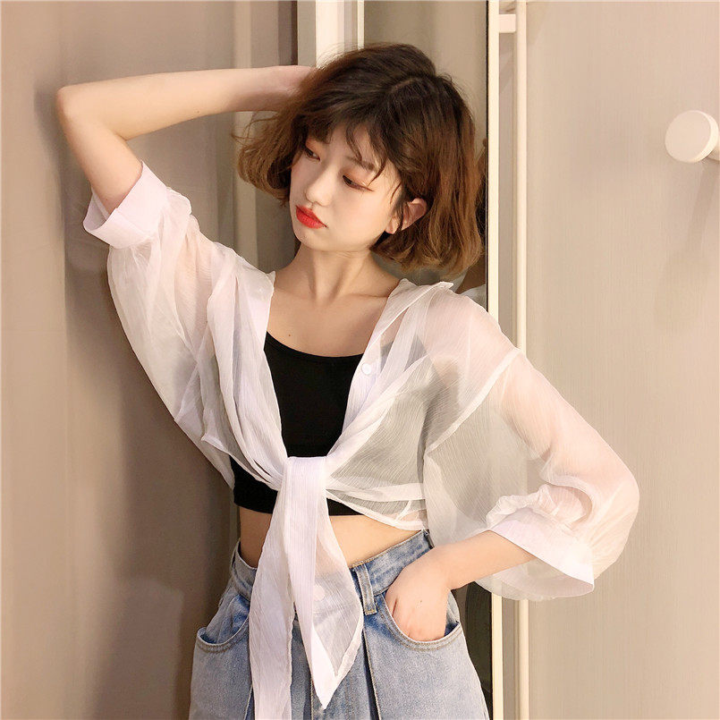 Одежда для защиты от солнца, летняя накидка, короткое шифоновое платье-комбинация, кардиган, 2020