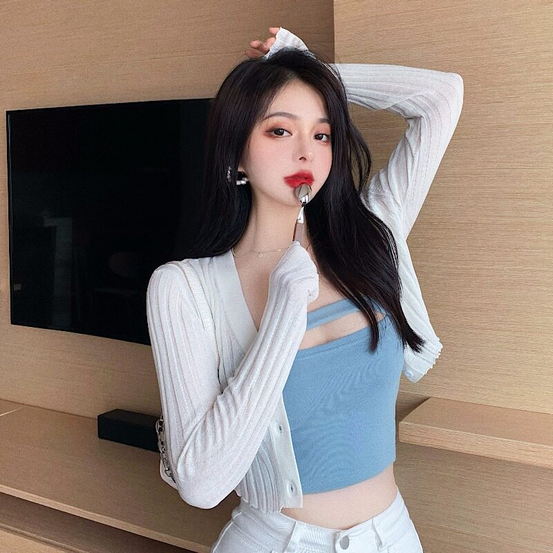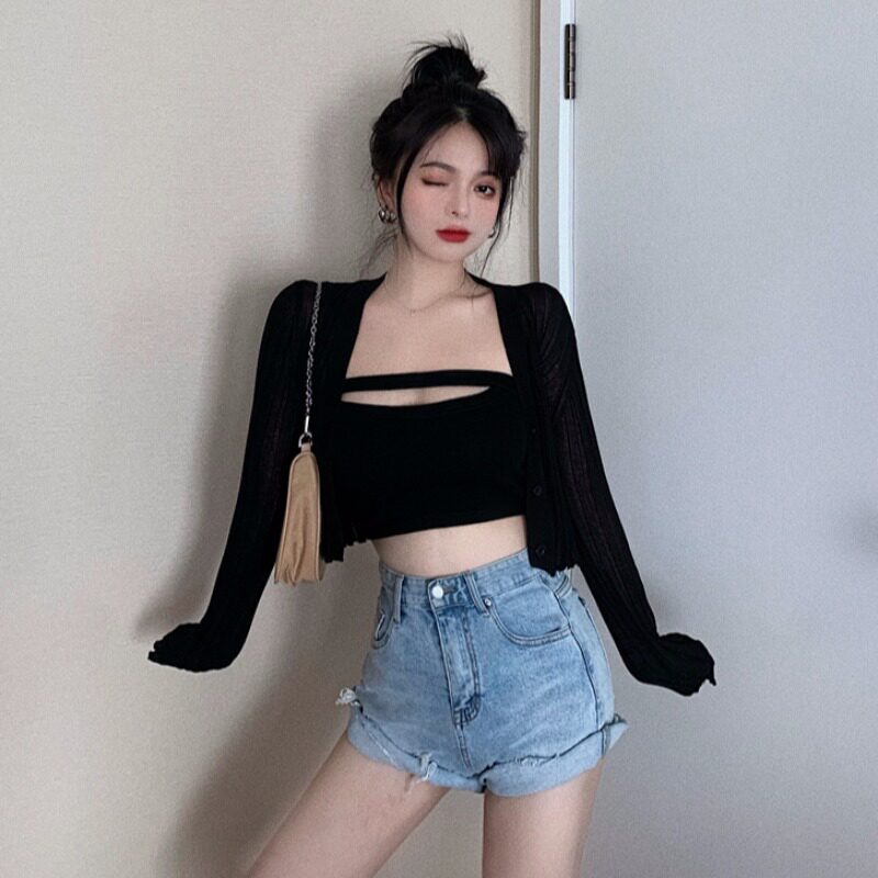 | Цвет: | Белый кардиган, Черный кардиган, Черный бюстгальтер-топ, Синий бюстгальтер-топ |