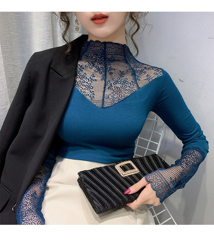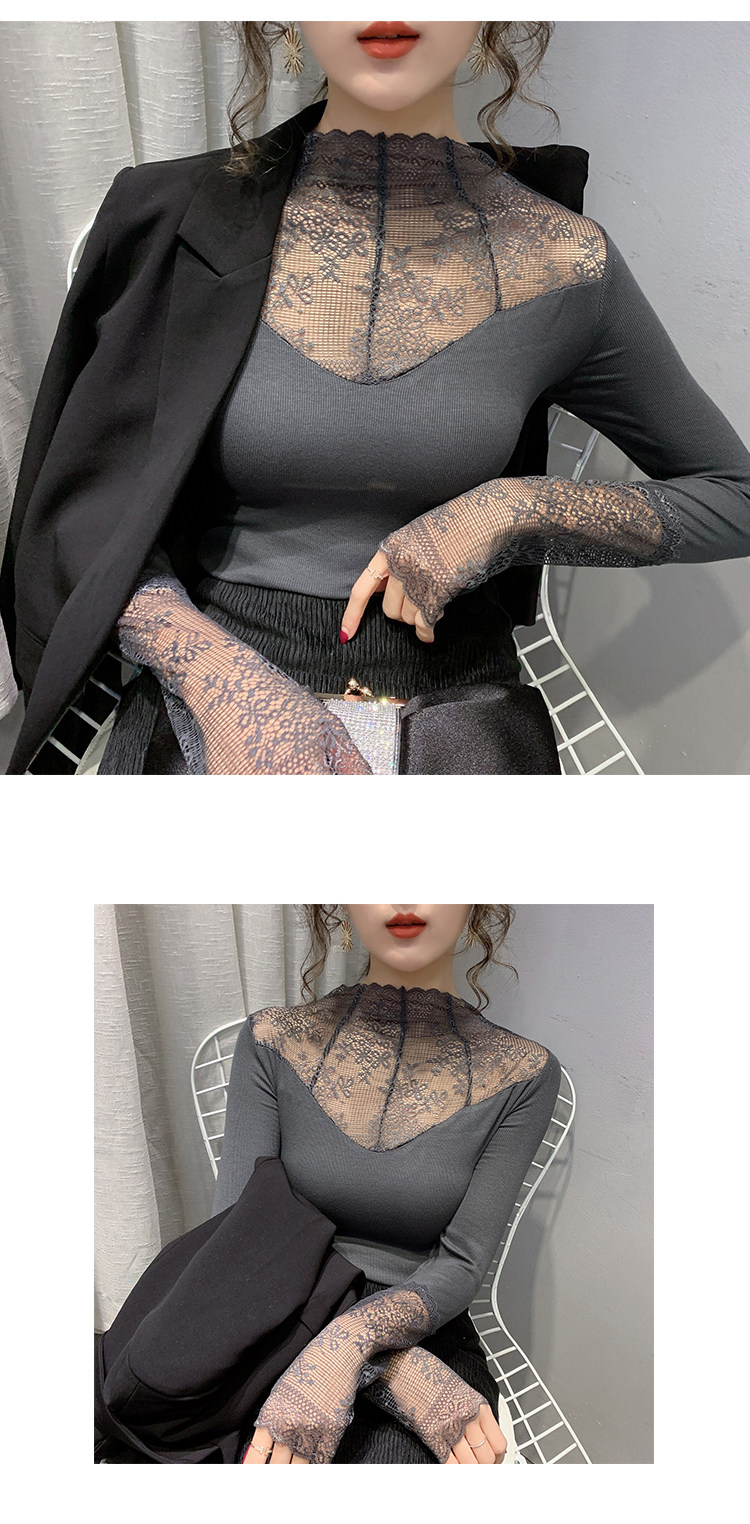 Кружевая базовая рубашка для женщин с модной блузкой на раннюю осень 2020 г. Новый тонкий сетка