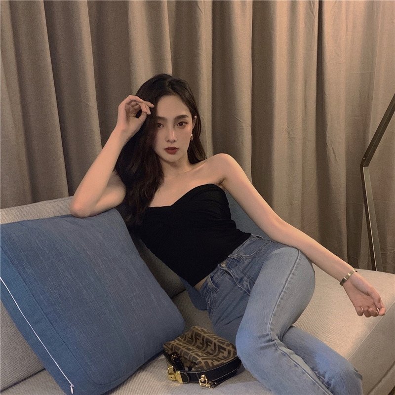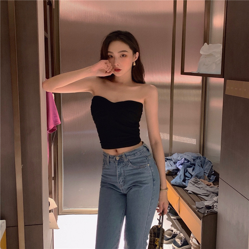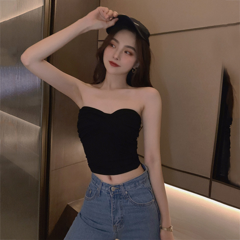 Черный бюстгальтер-топ, сексуальная майка топ, базовый приятный телу короткий костюм