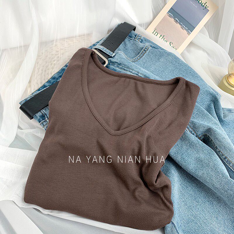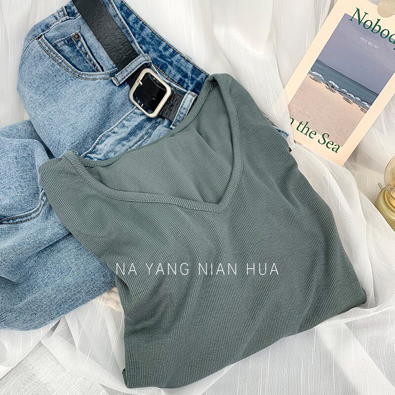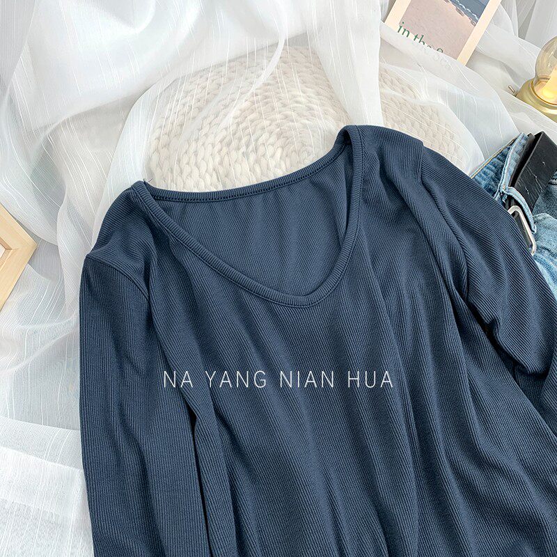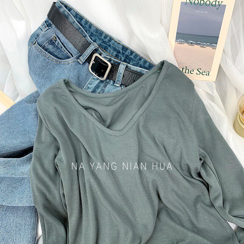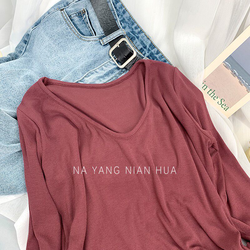 Tide, весенний базовый приятный телу лонгслив, V-образный вырез, по фигуре, облегающий крой