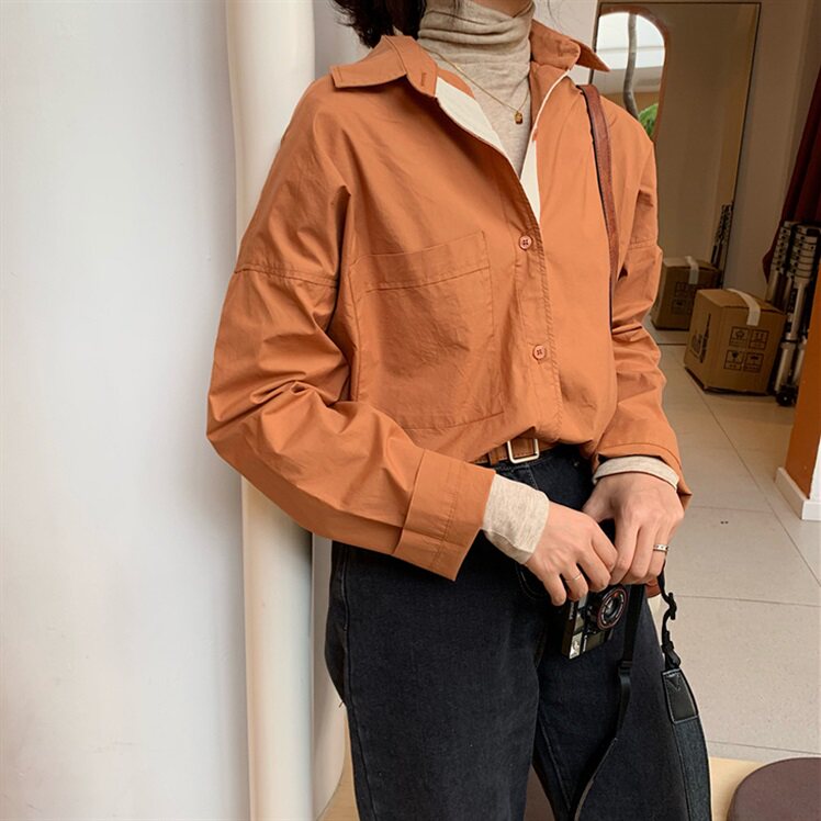 Оранжевая рубашка, ретро лонгслив, универсальный осенний комплект, 2020