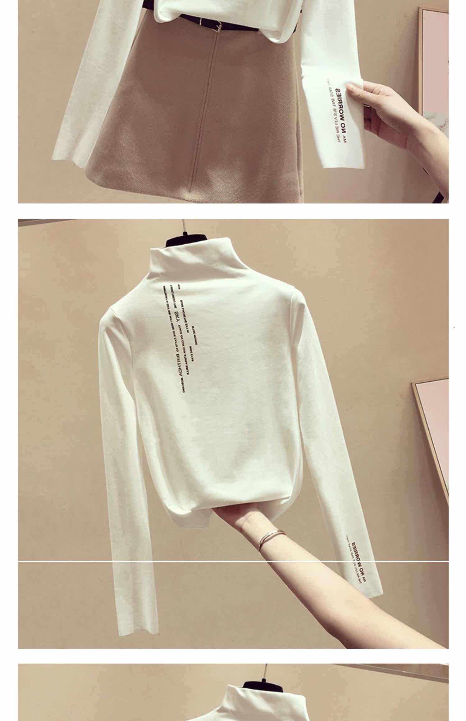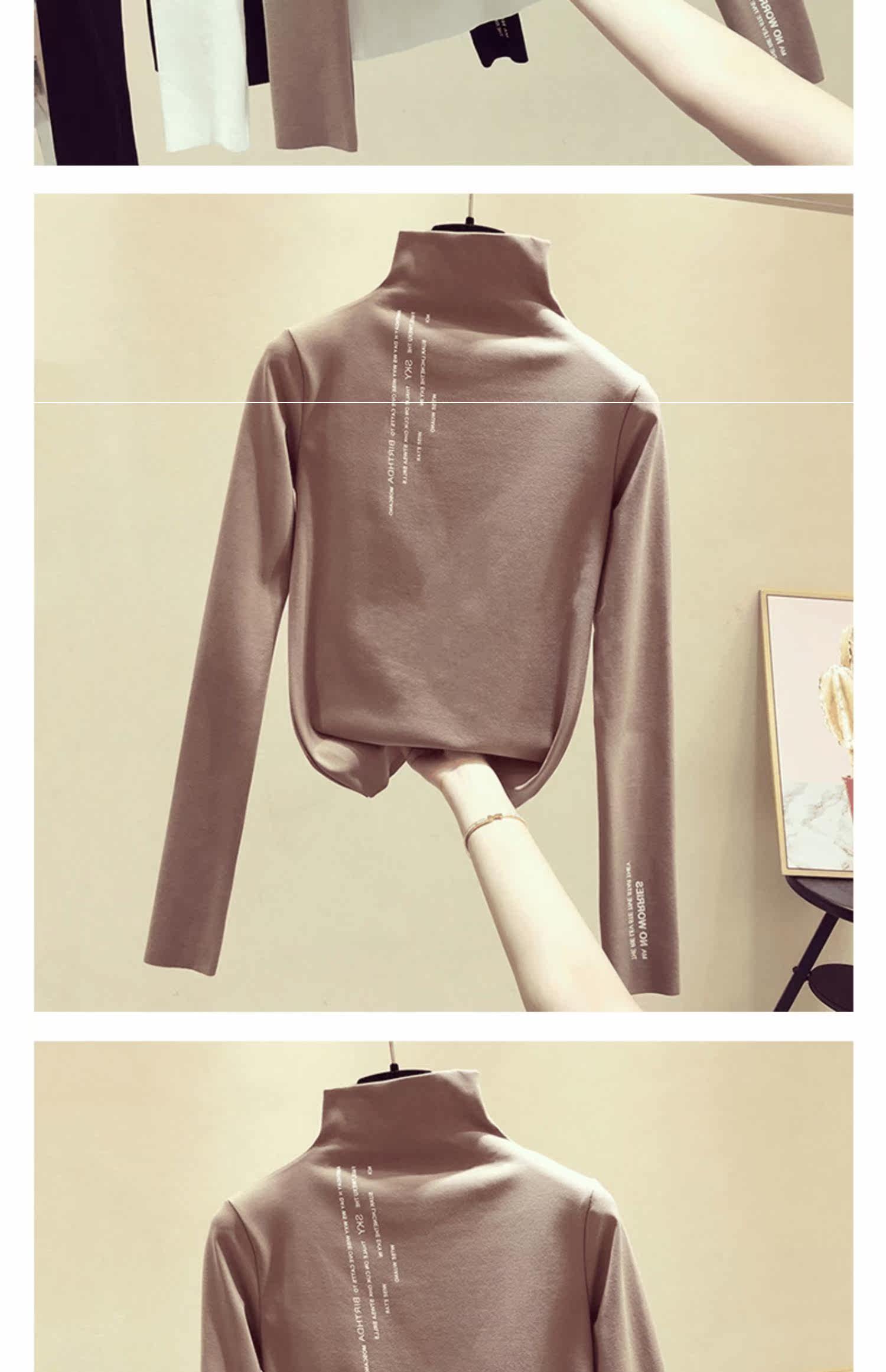 Базовый приятный телу осенний бархатный цветной лонгслив, высокий воротник, в западном стиле, увеличенная толщина, в обтяжку