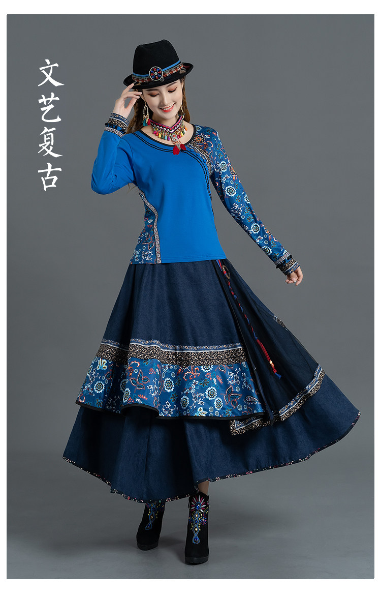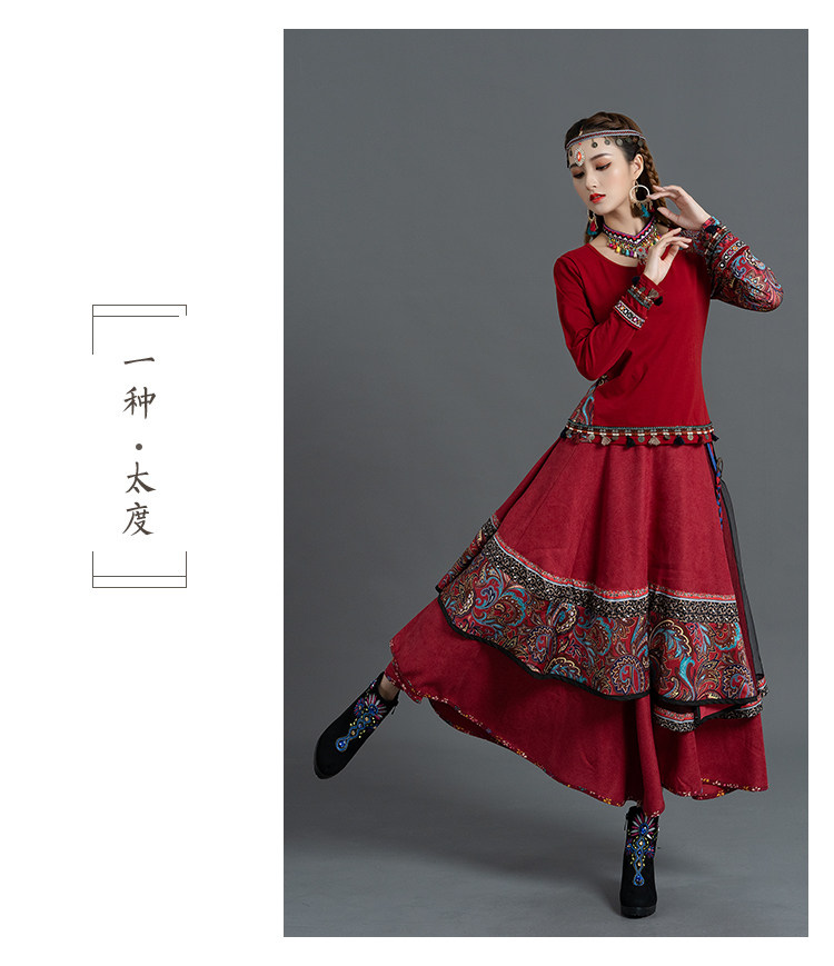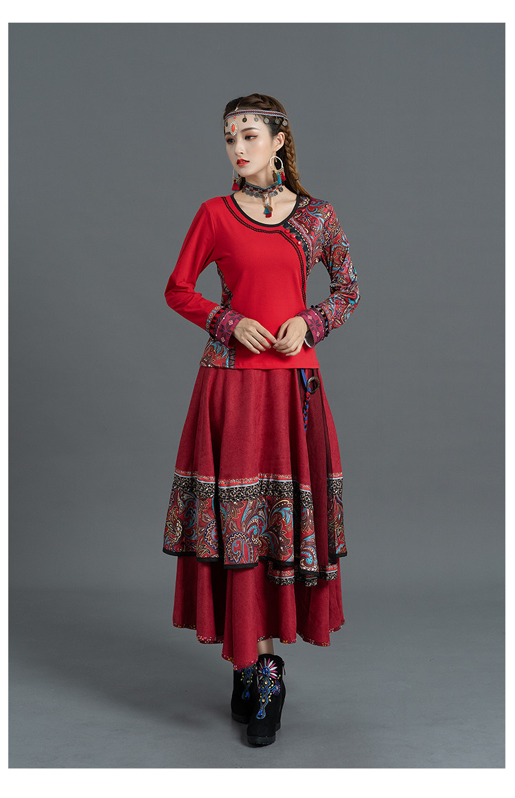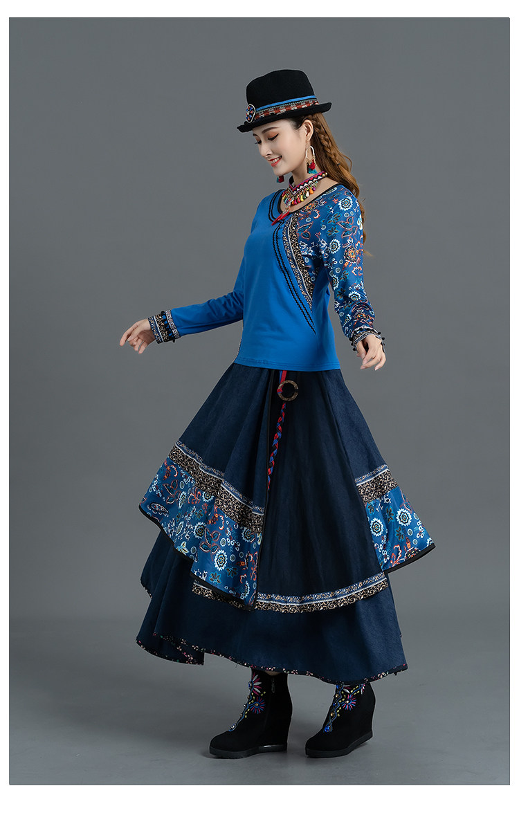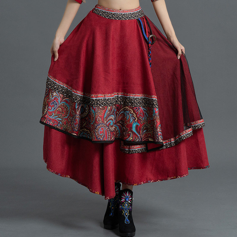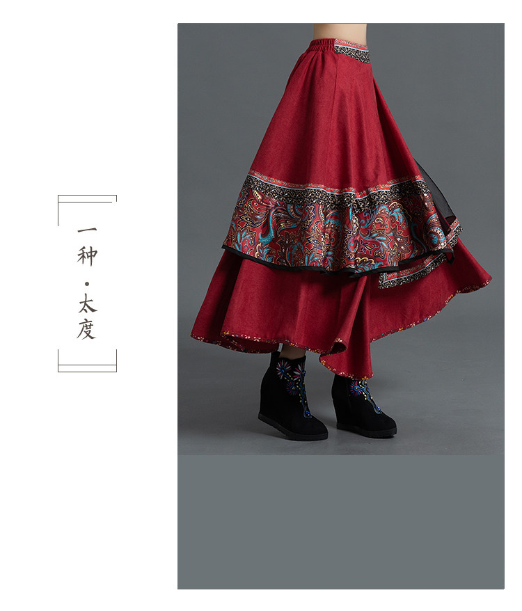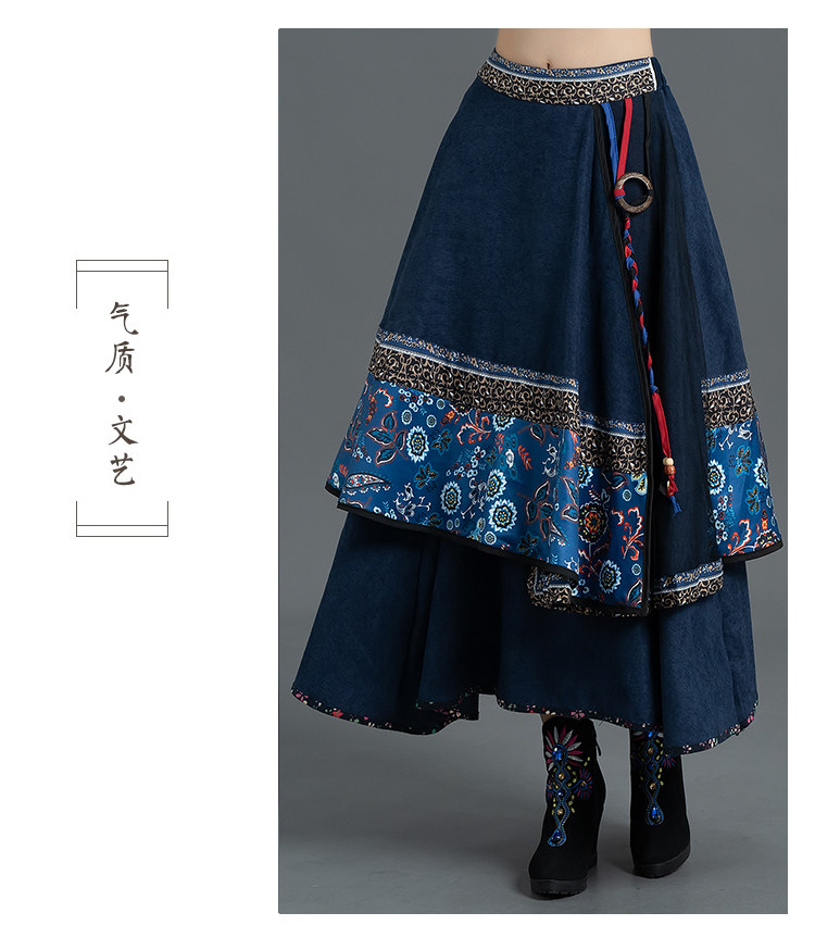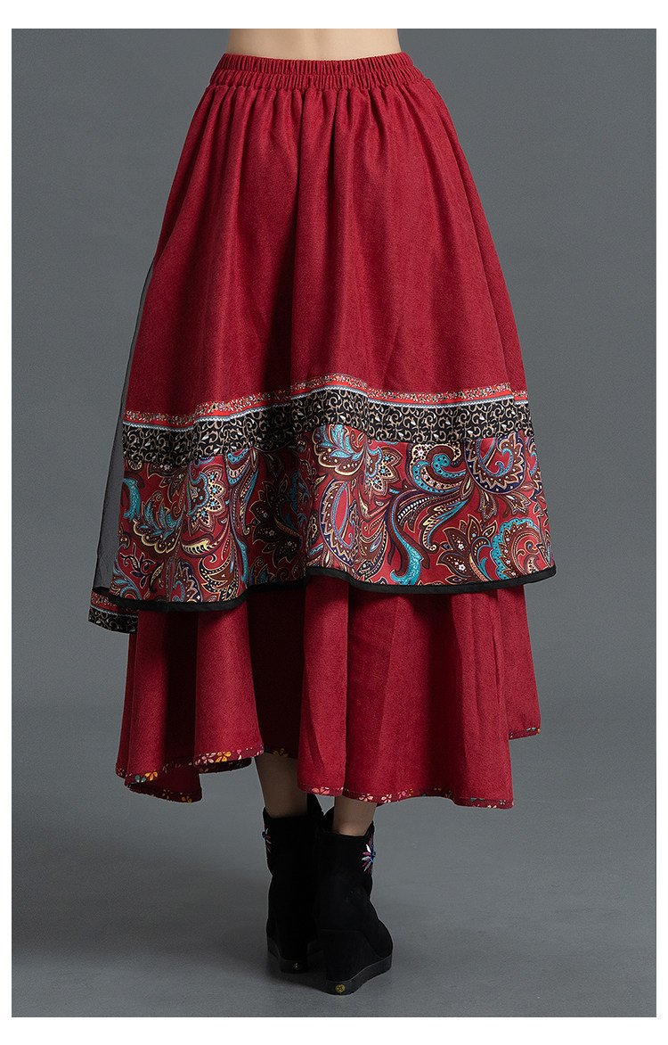 Демисезонная ретро этническая вельветовая юбка, этнический стиль, А-силуэт