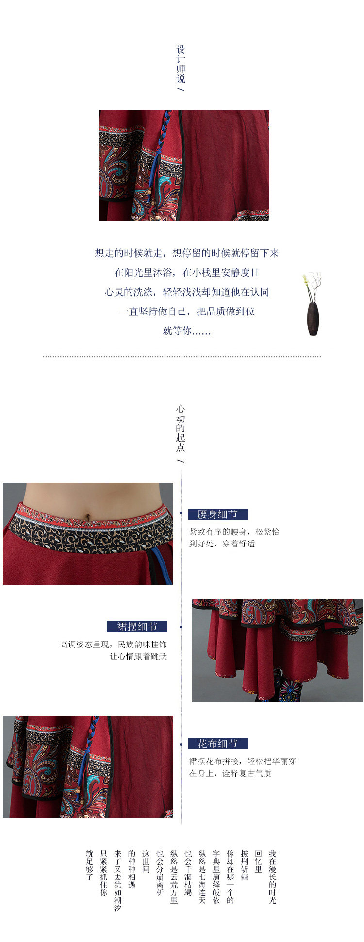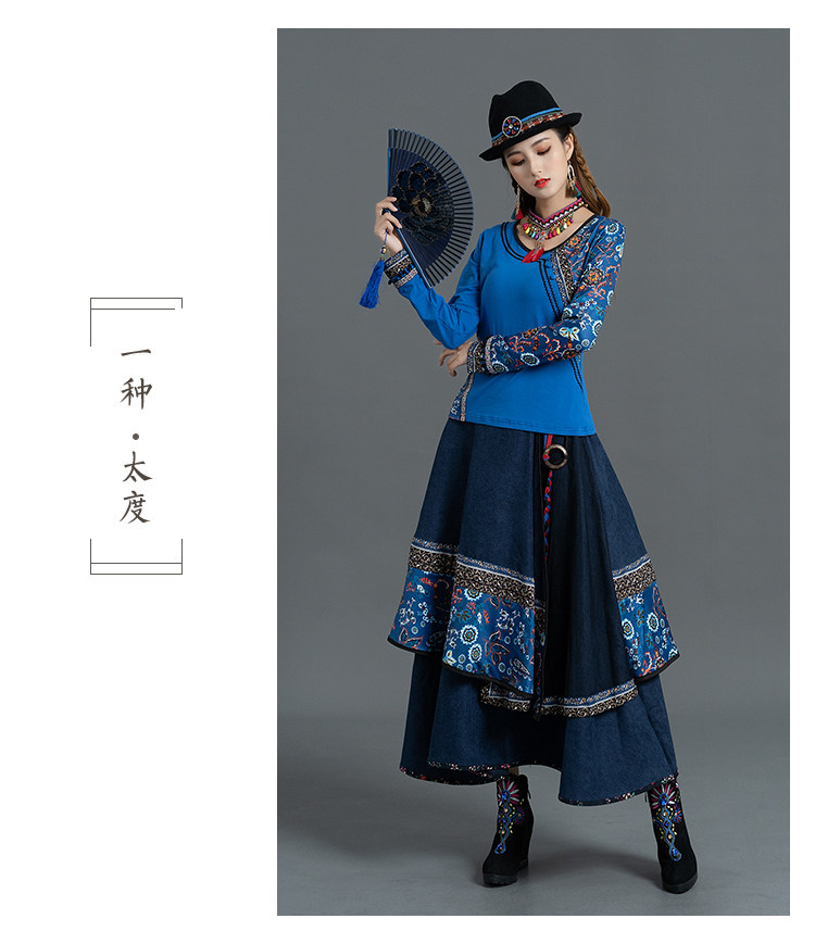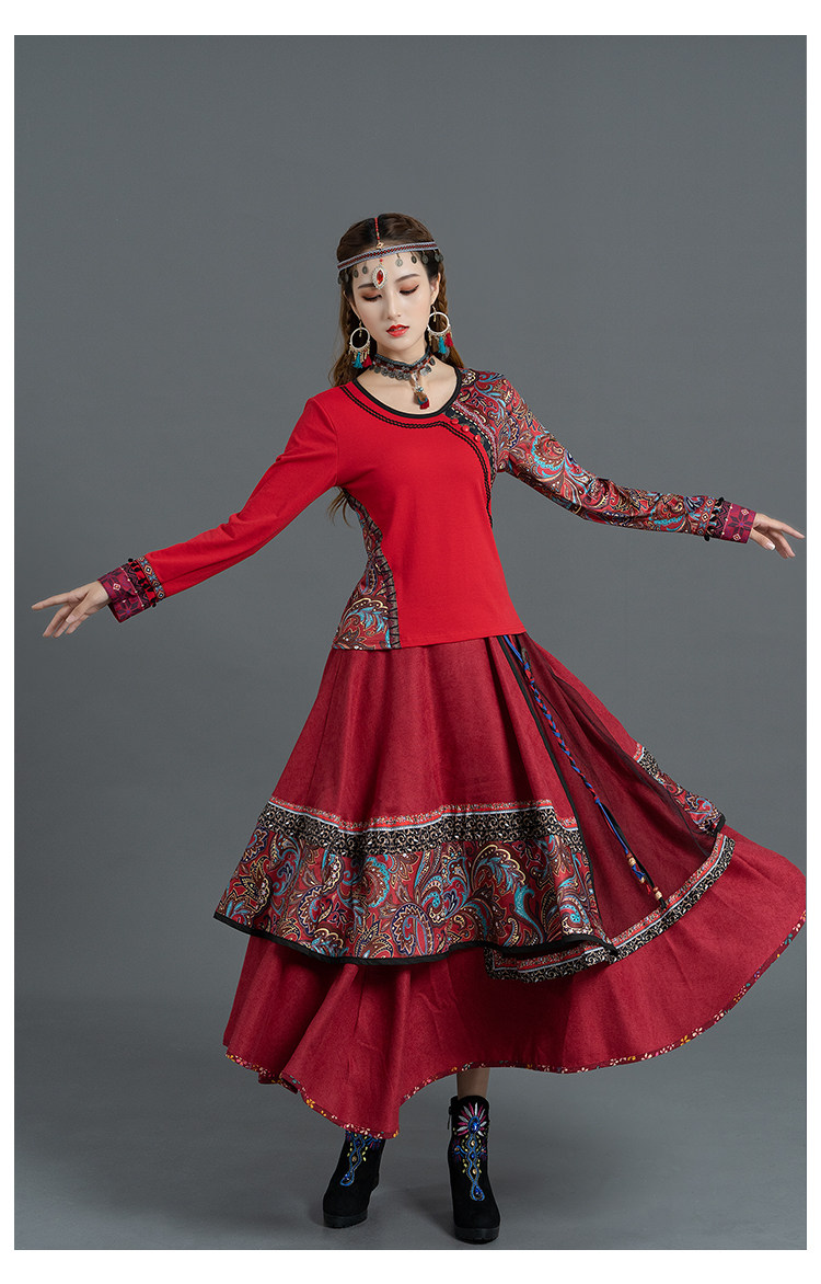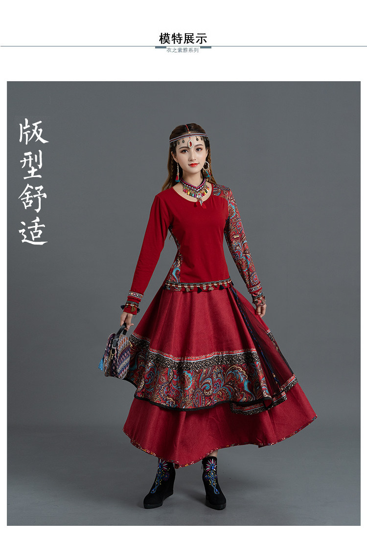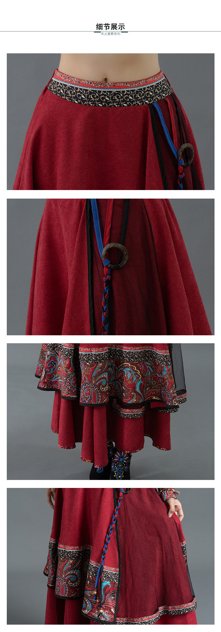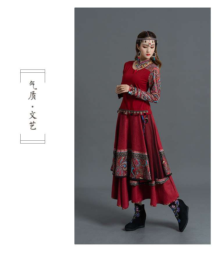 Демисезонная ретро этническая вельветовая юбка, этнический стиль, А-силуэт