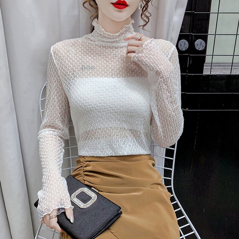 Кружевной шелковый приятный телу демисезонный сексуальный свитер, в западном стиле