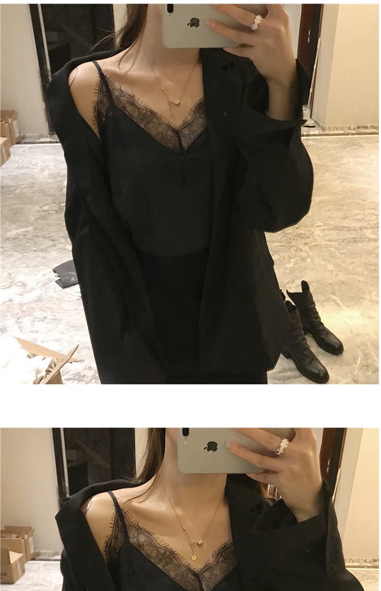 Утепленная майка топ, утепленный базовый кружевной шелковый костюм, красивая спина