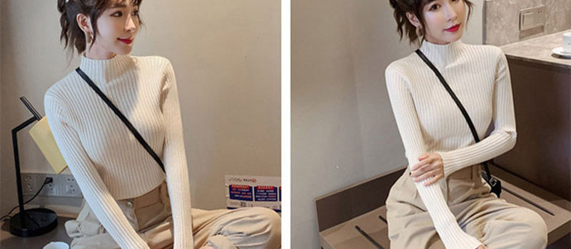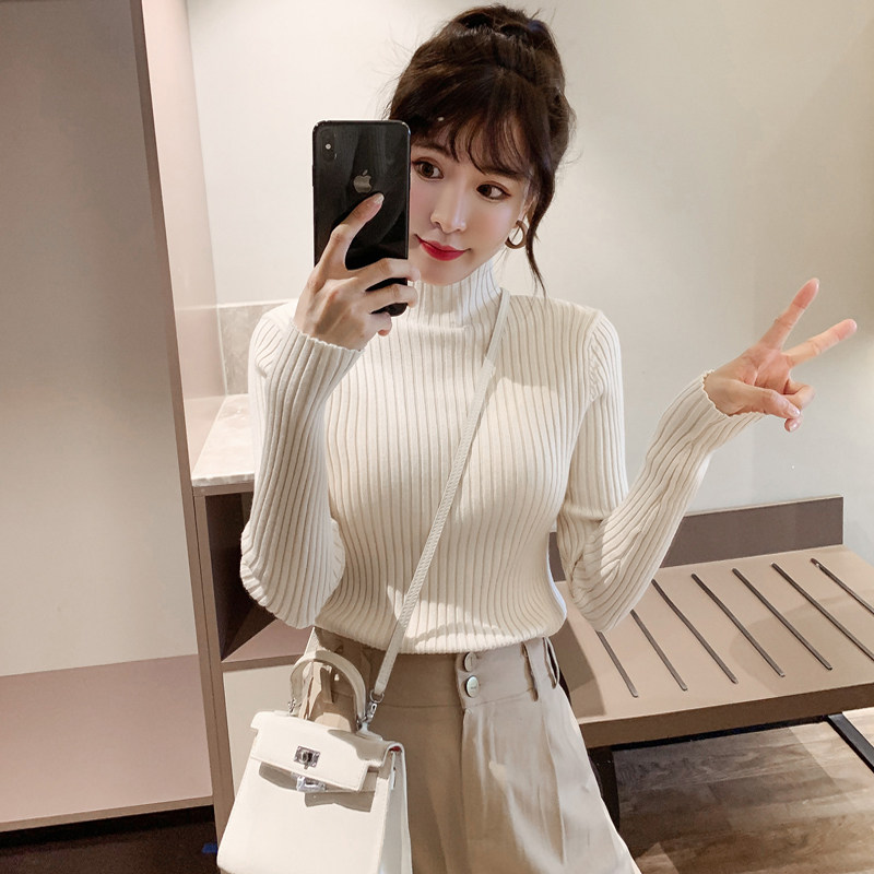 Бархатный базовый приятный телу демисезонный трикотажный свитер, в западном стиле, 2020 года, высокий воротник