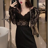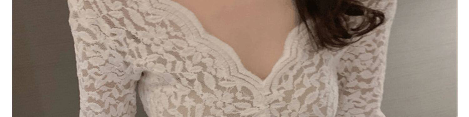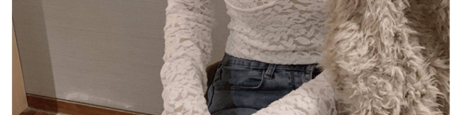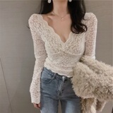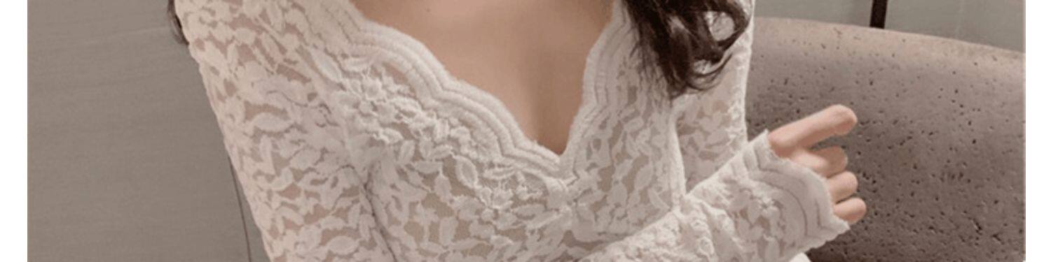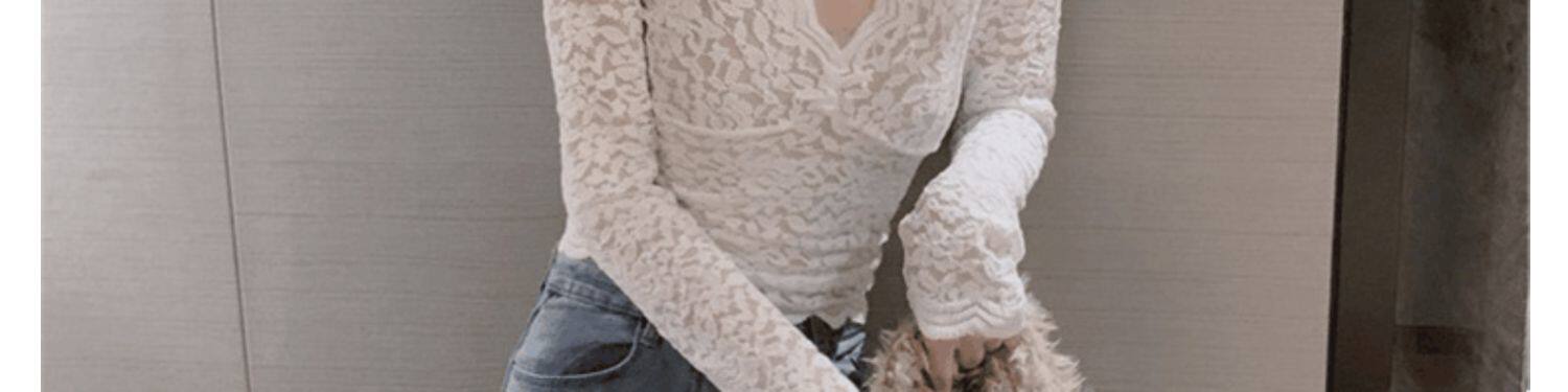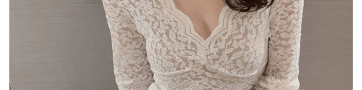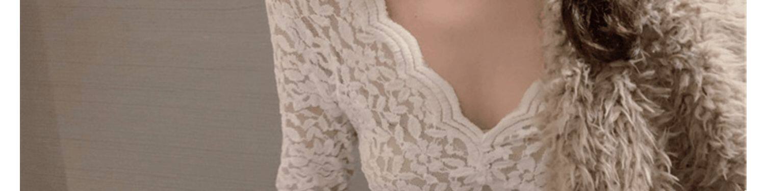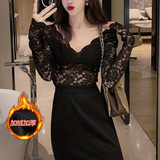Рубашка из кружева с низким вырезом и глубоким v-образным вырезом для женщин с нижним бельем в западном стиле, весна, осень и зима, а также верх из бархата и утолщенной меховой сетки.