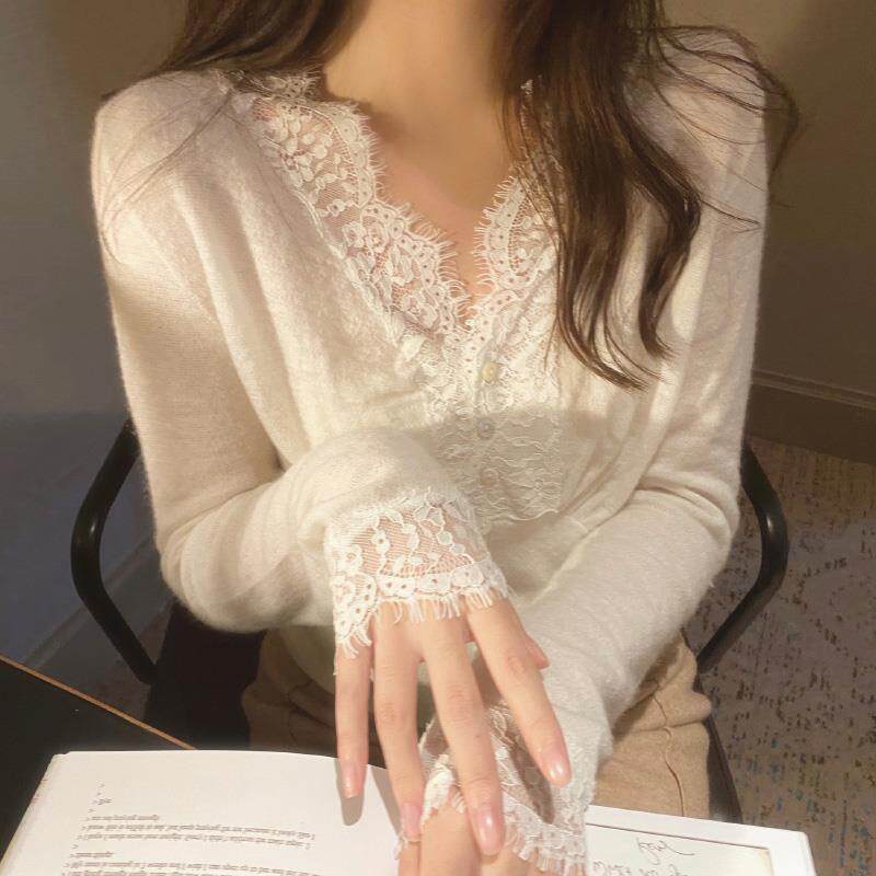 Белый V-образный кружевной сплайсинг нижняя рубашка для женщин осенью и зимняя модная внутренняя одежда осень и зимний бархатный.