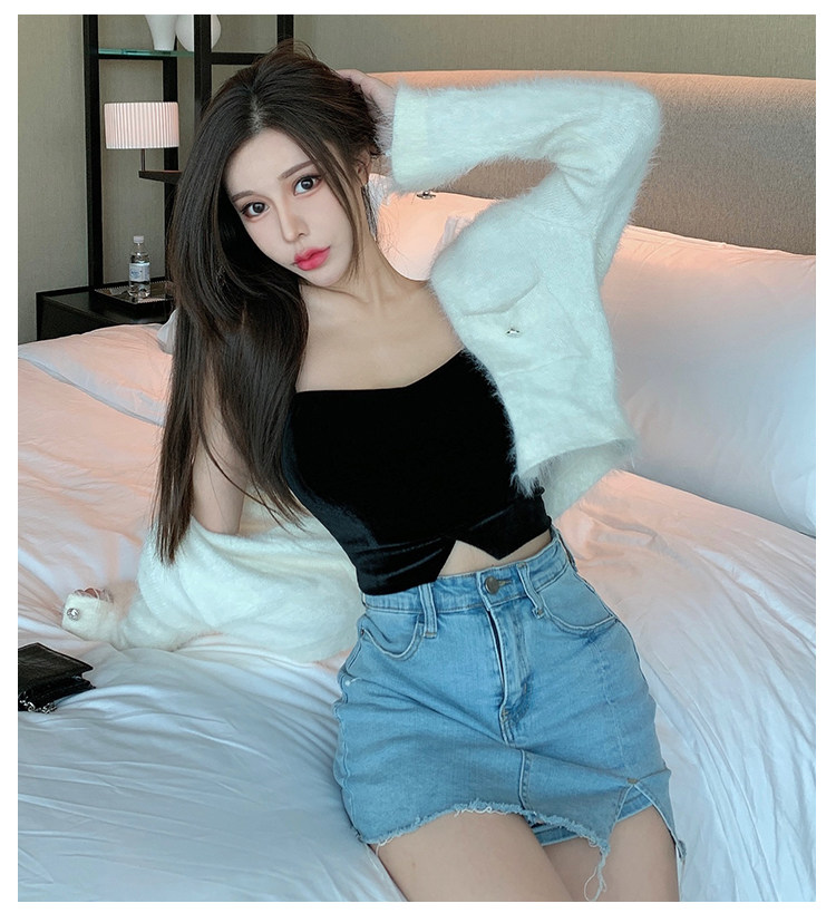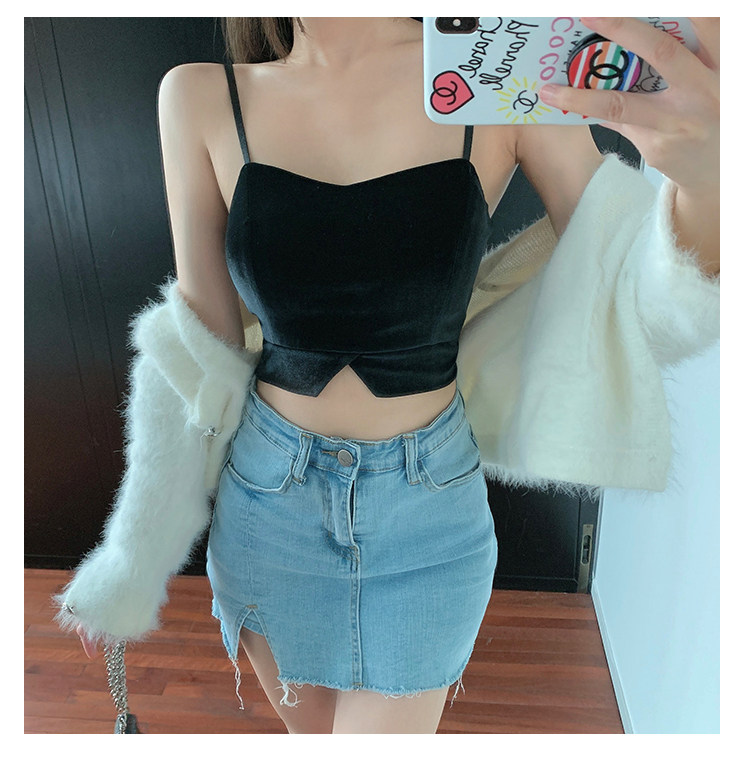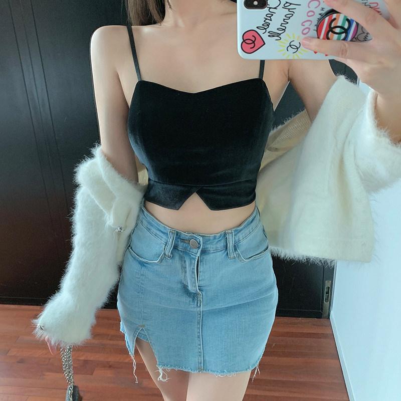 Tide, черный базовый дизайнерский топ с чашечками, короткий костюм, тренд сезона