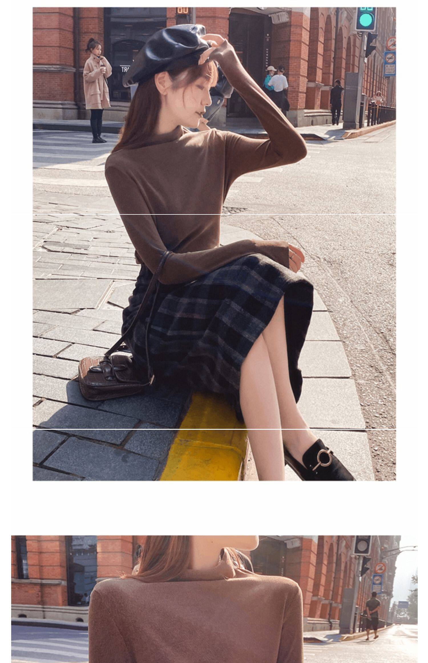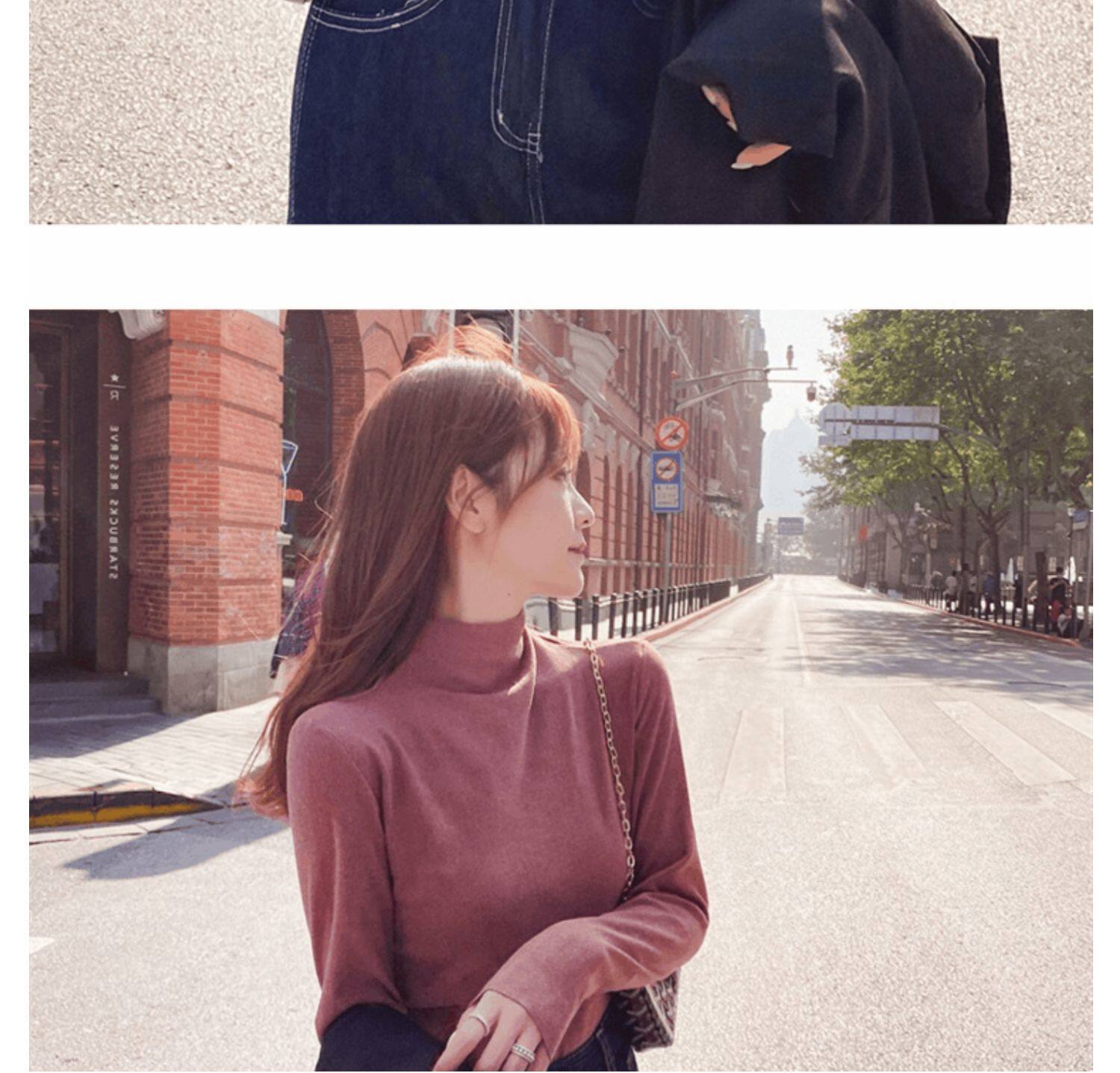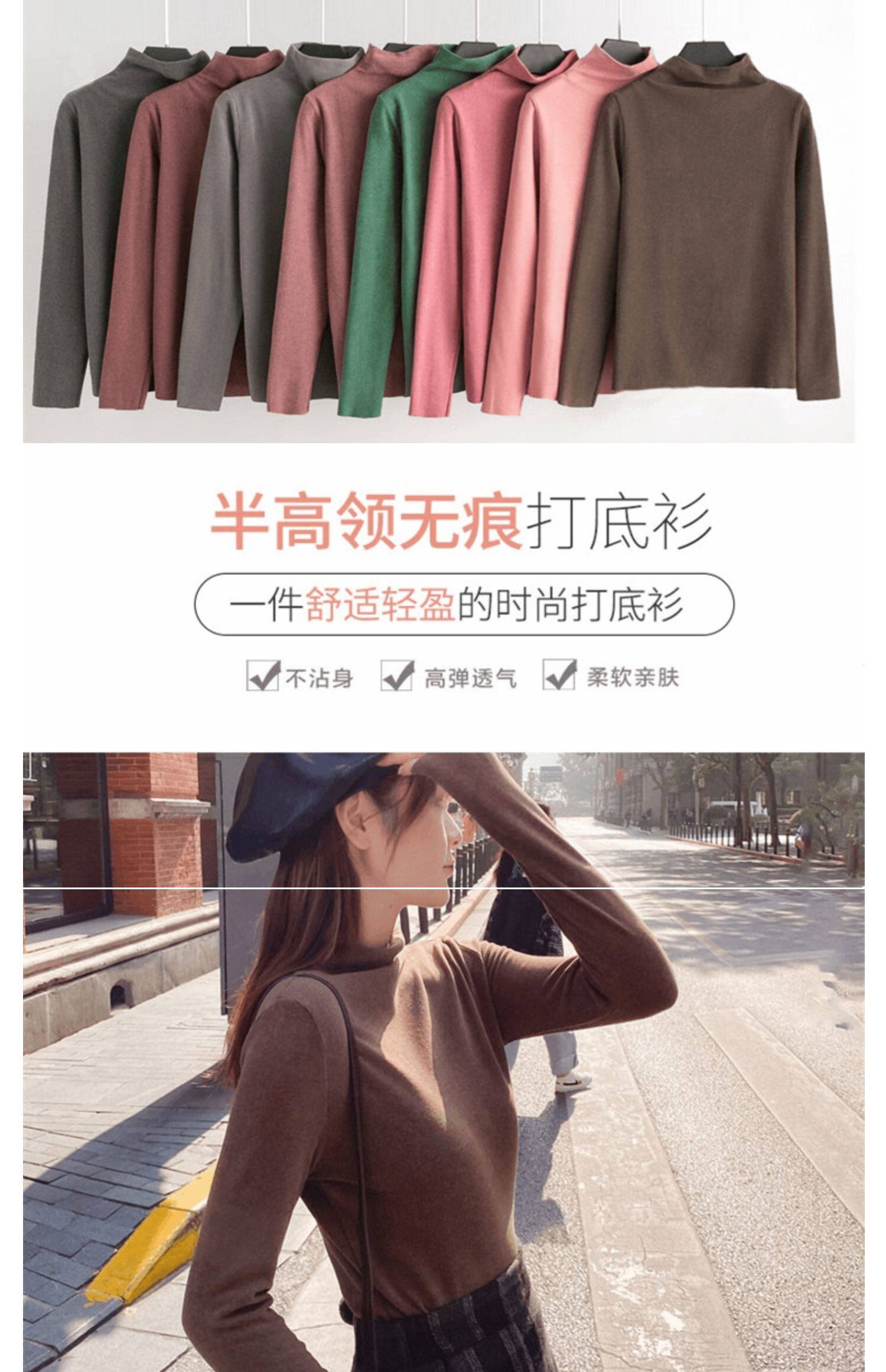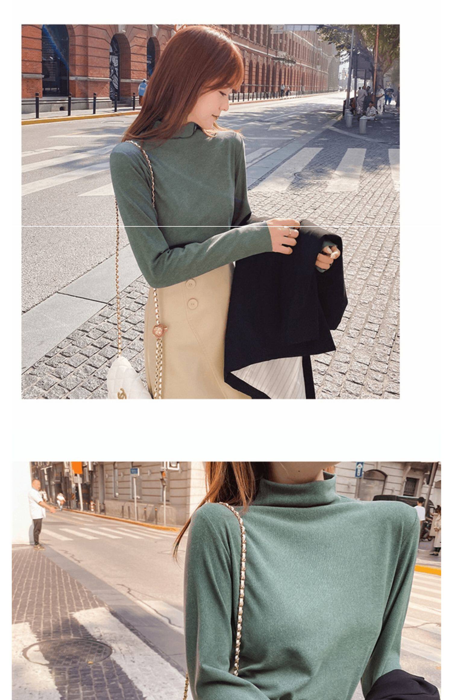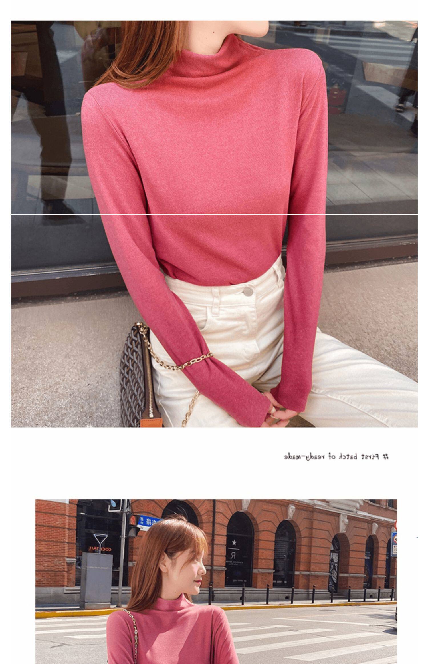 Базовая приятная телу демисезонная двусторонная бархатная утепленная цветная футболка, высокий воротник, в западном стиле