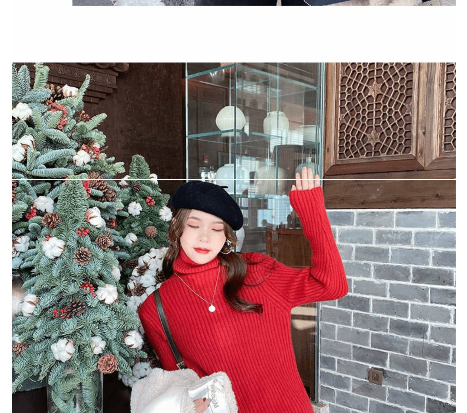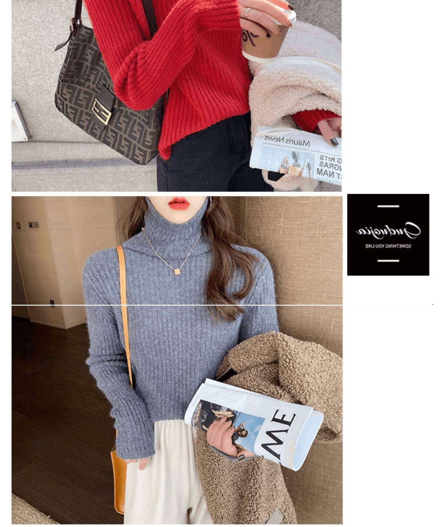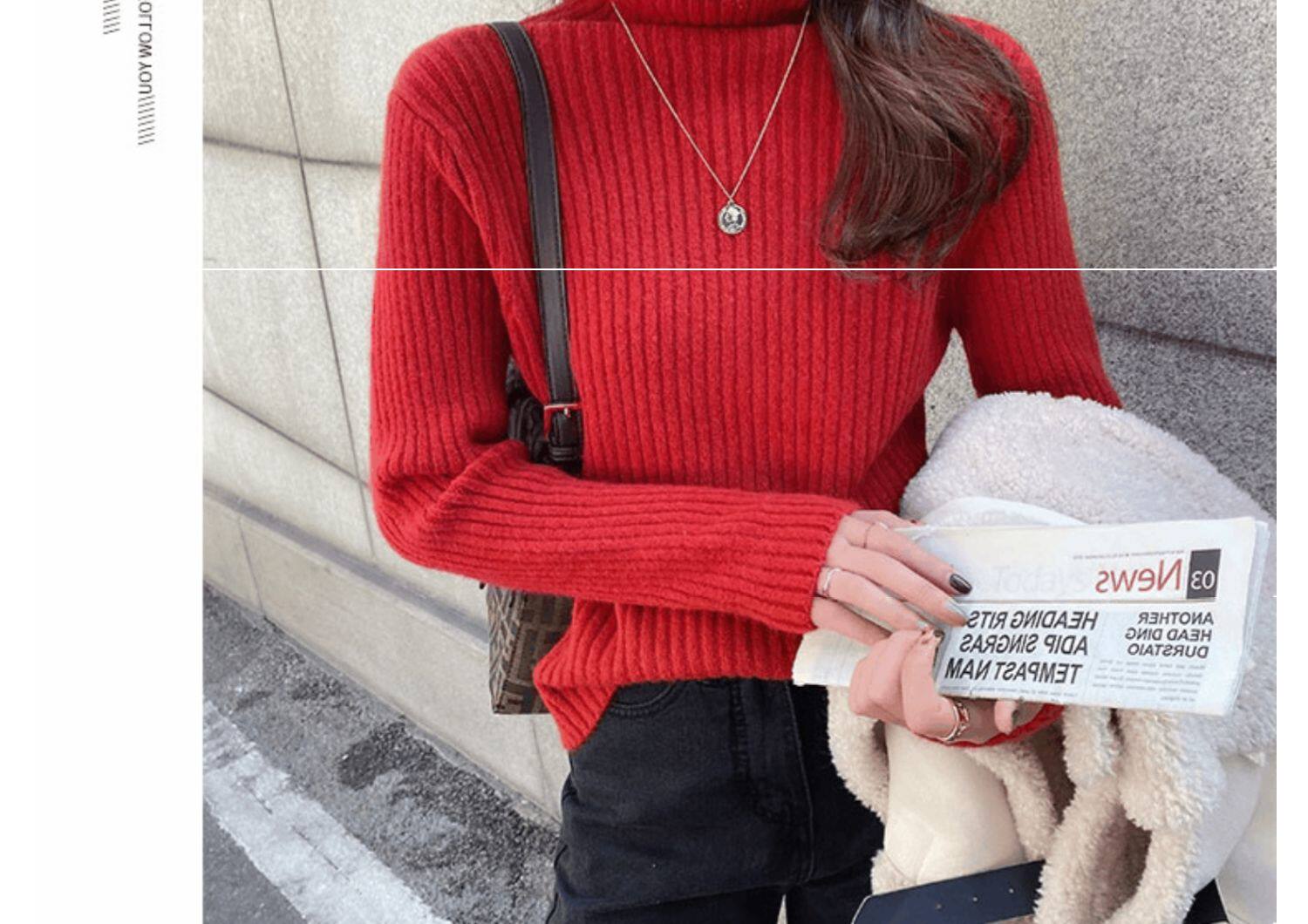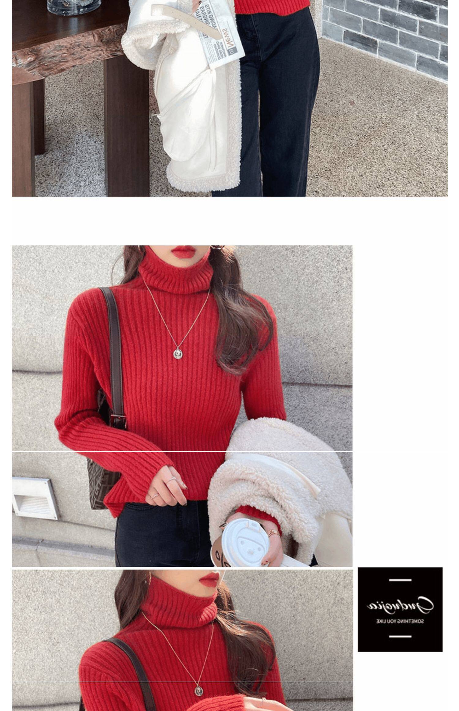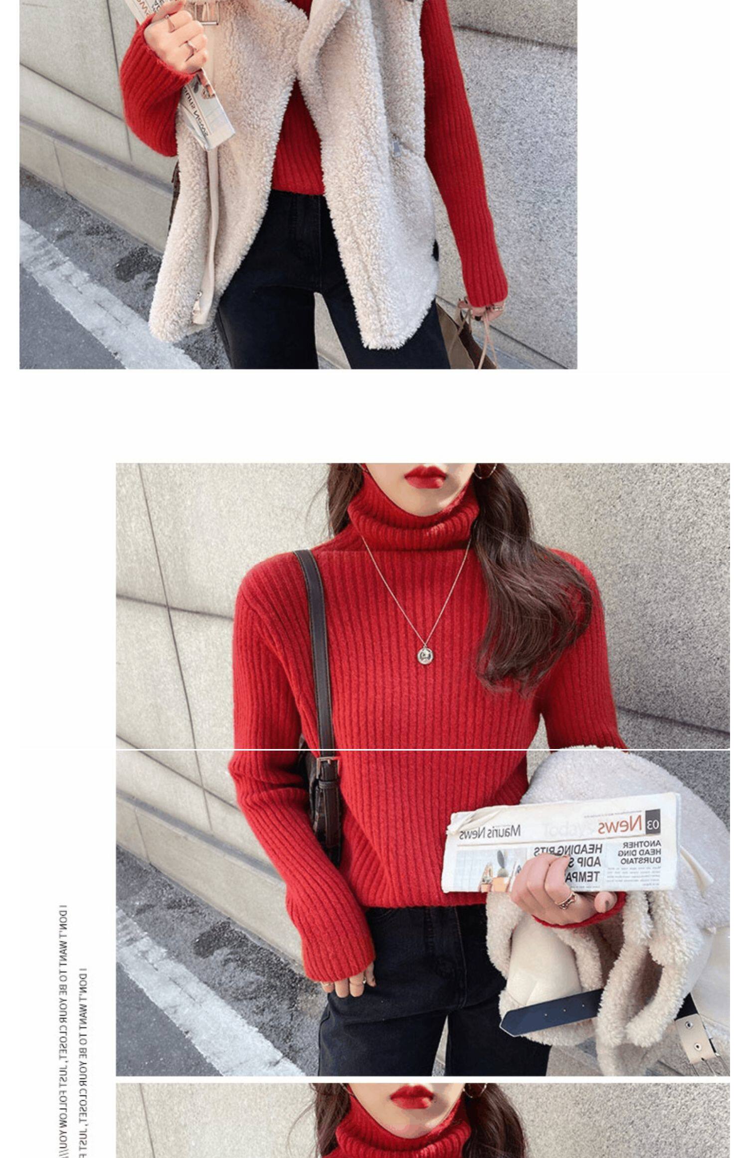 Красный демисезонный бархатный базовый приятный телу свитер, 2021 года, в западном стиле, увеличенная толщина, высокий воротник