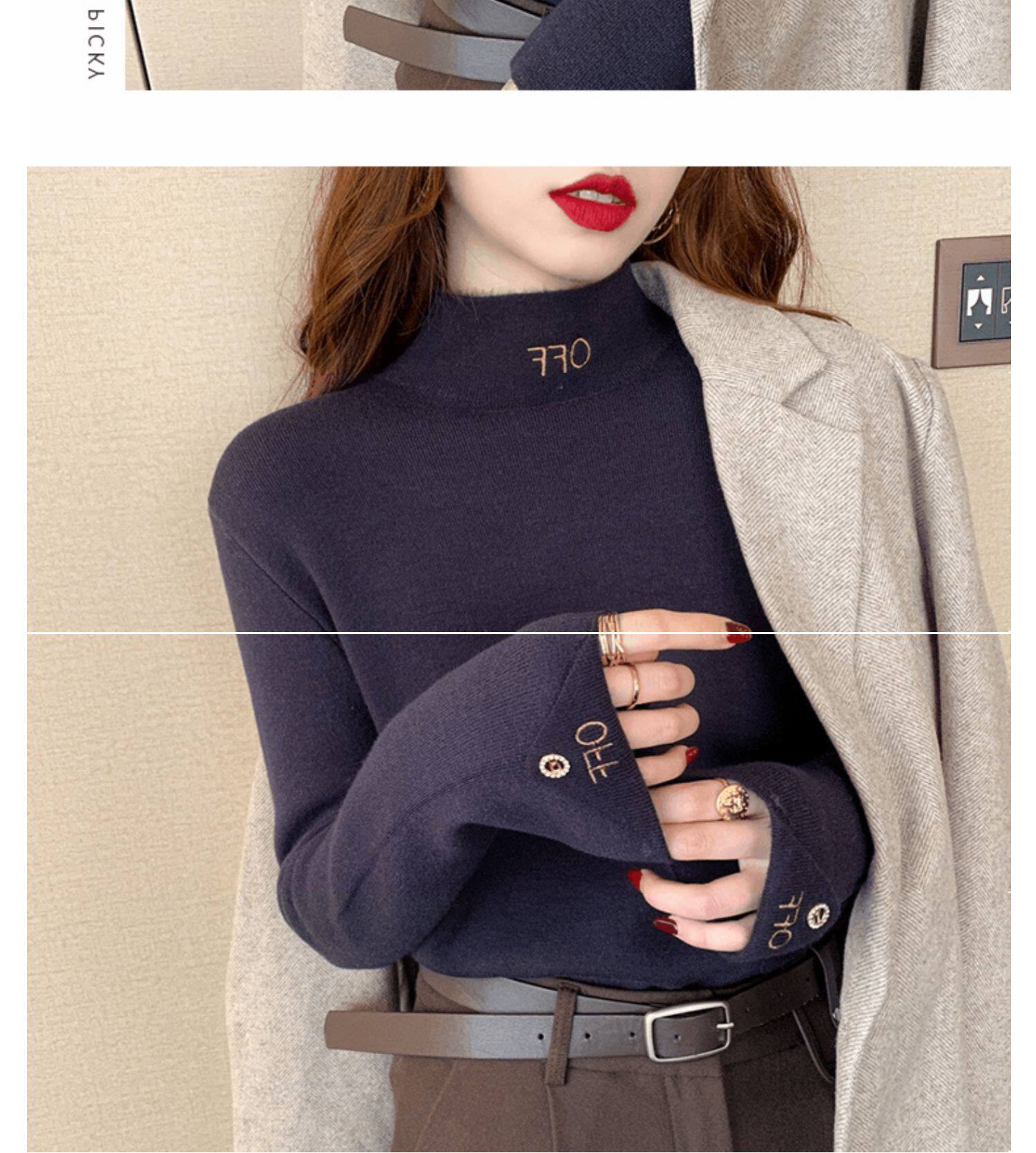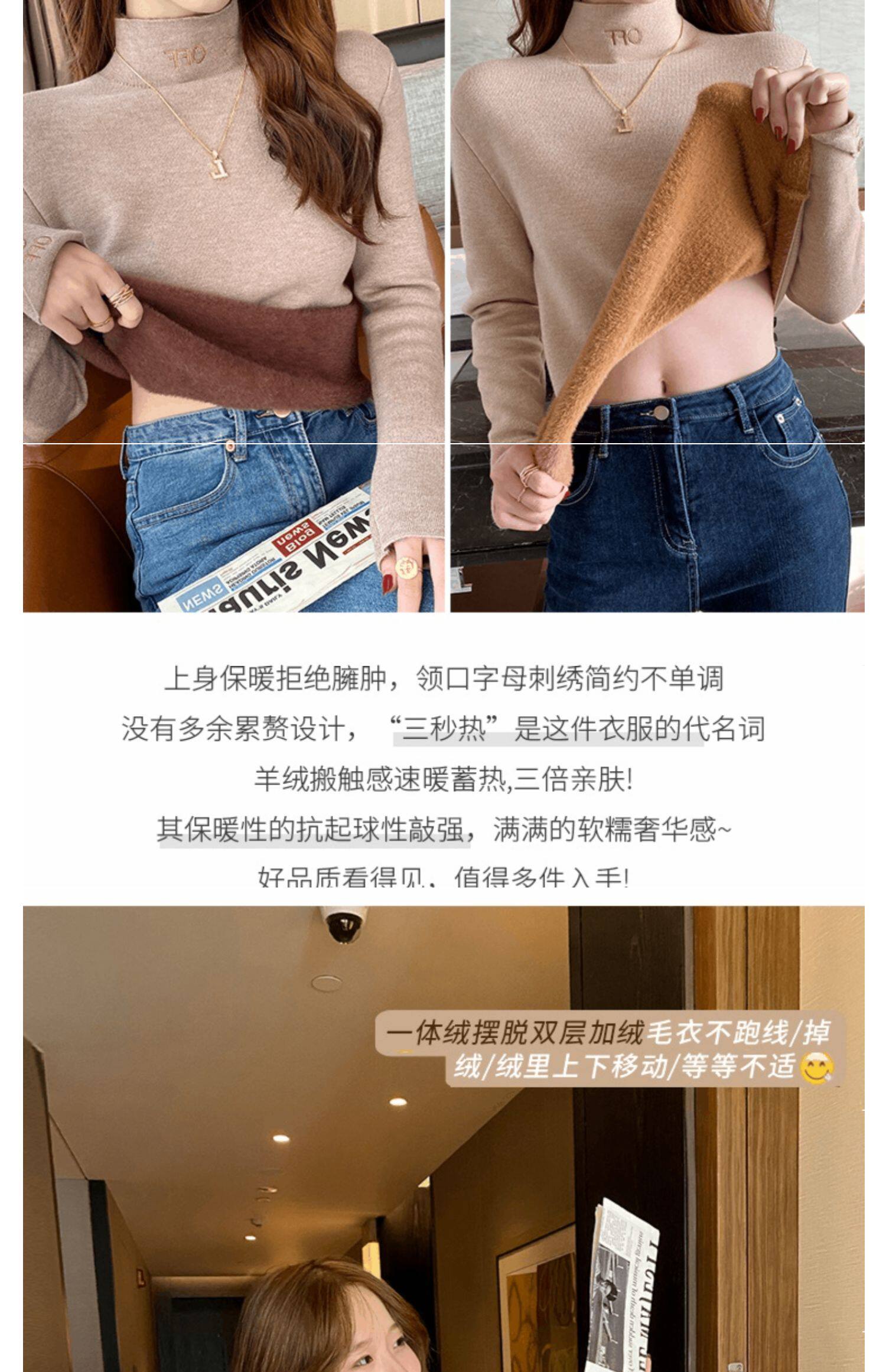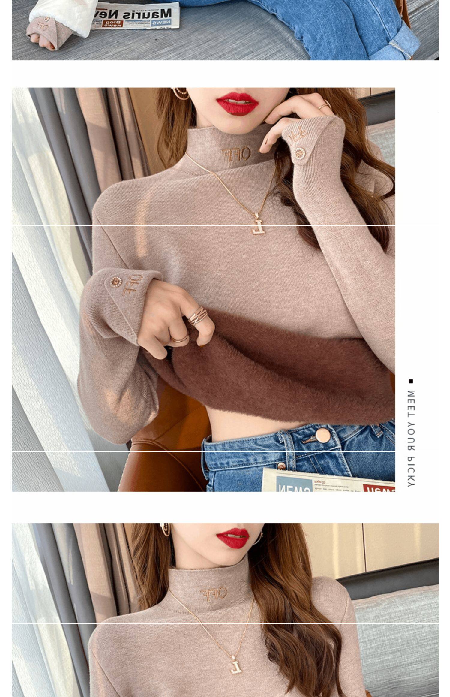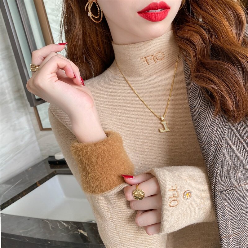 Бархатный утепленный демисезонный базовый приятный телу свитер, в западном стиле, высокий воротник