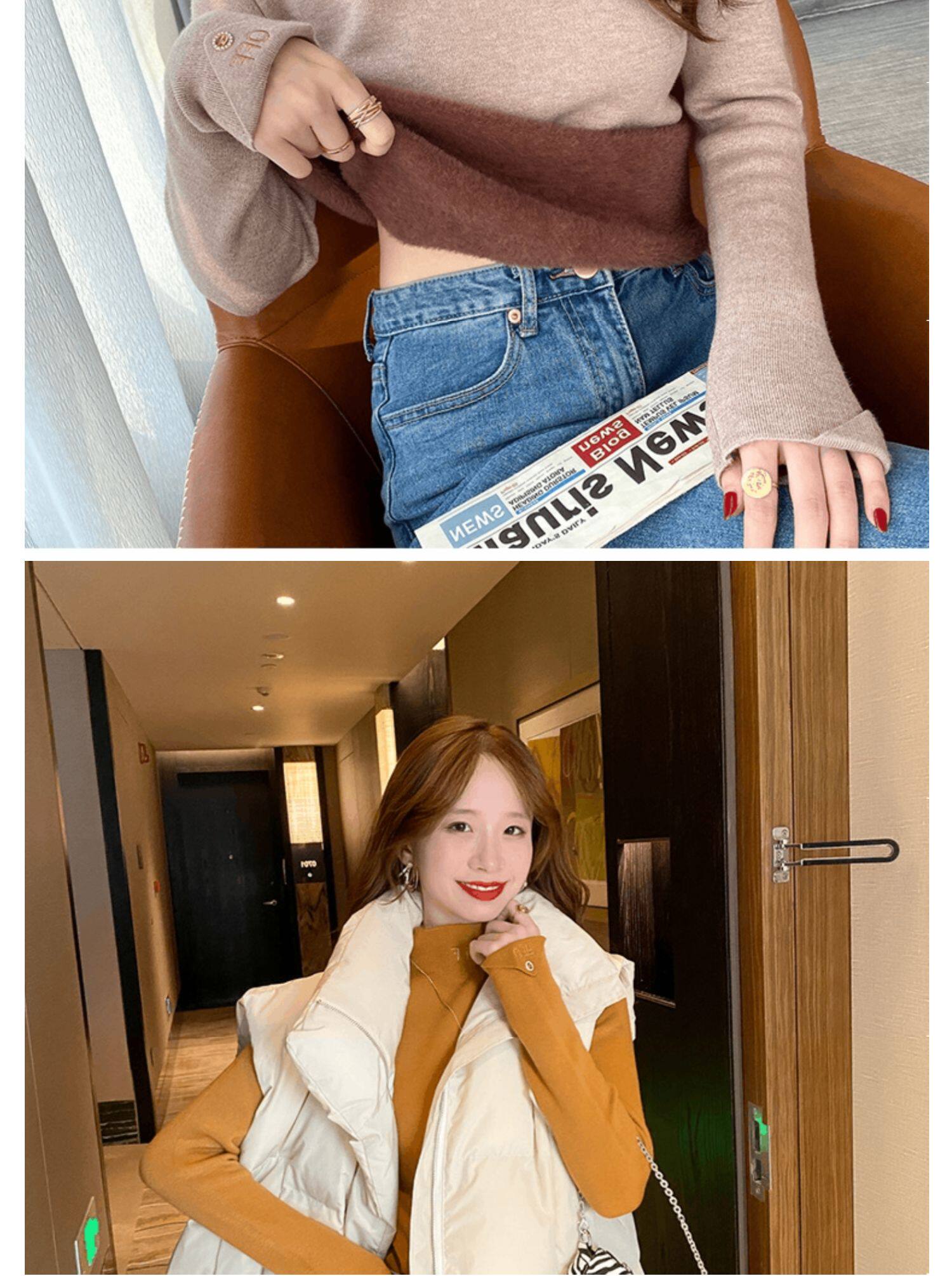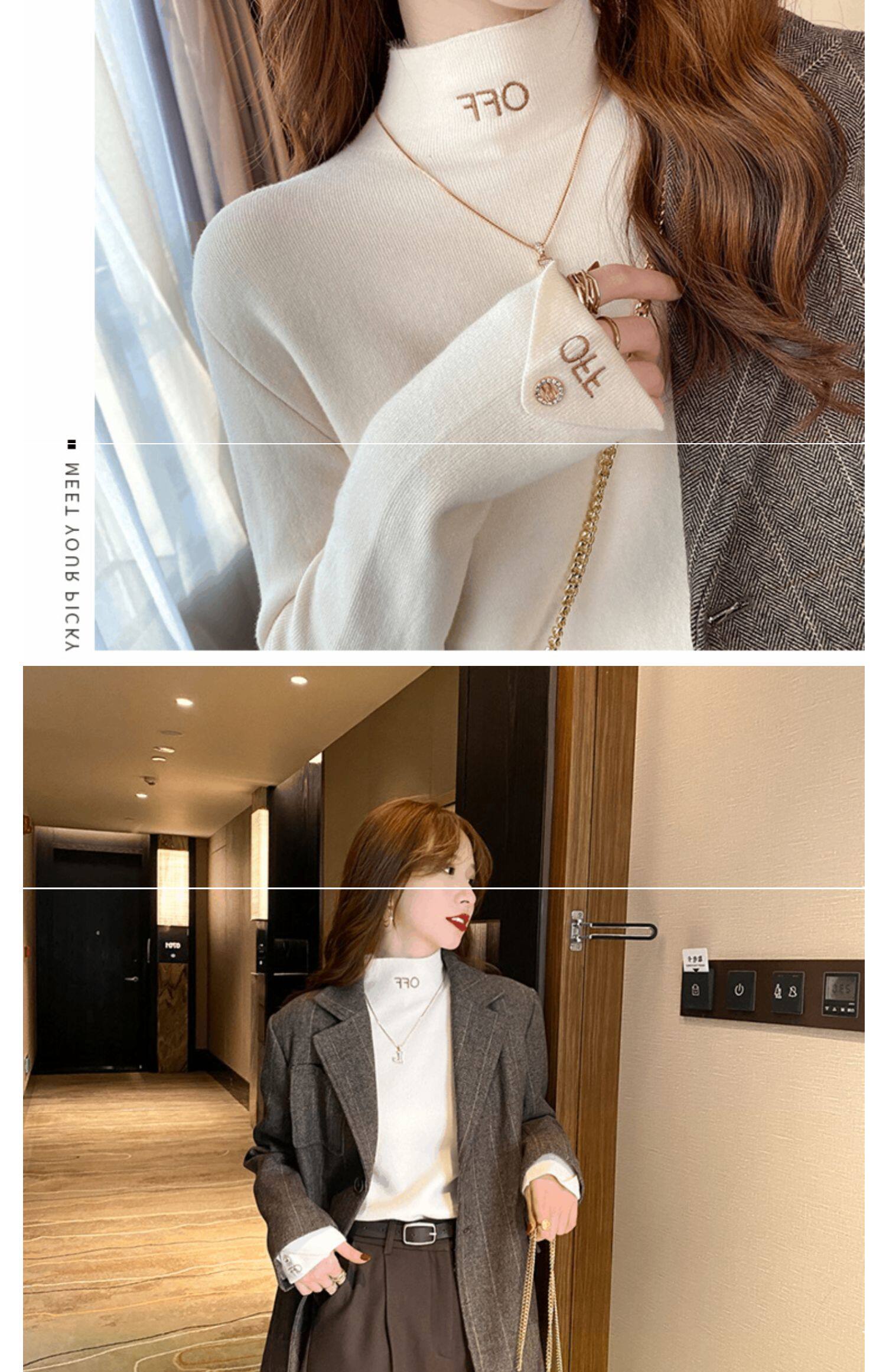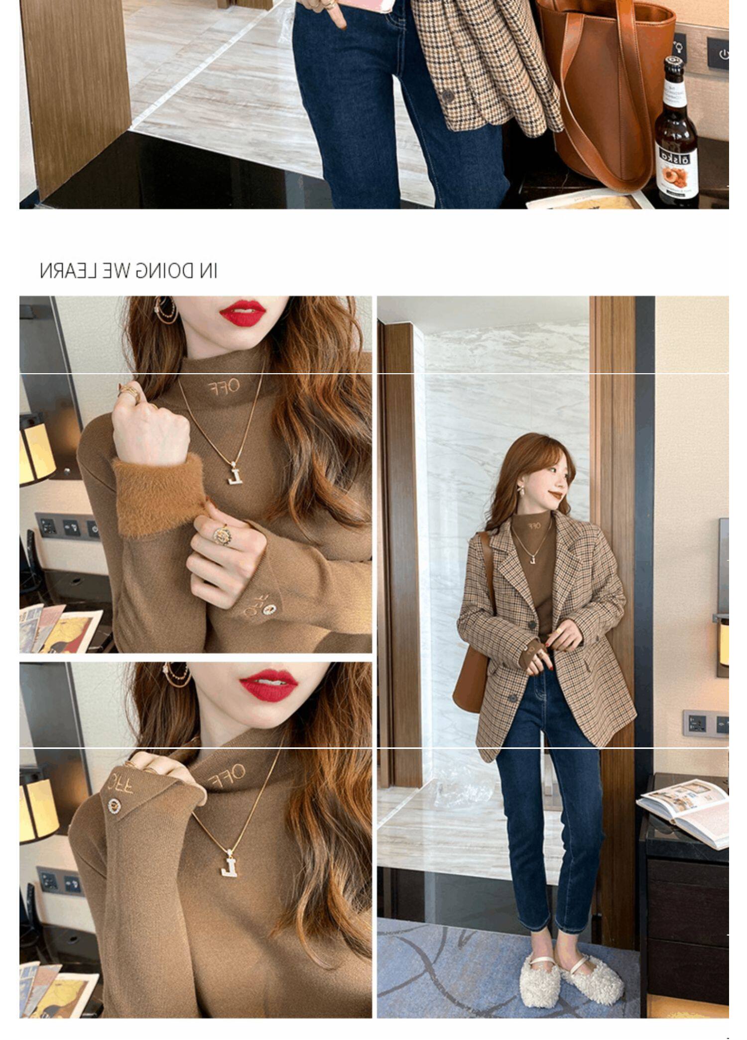 Бархатный утепленный демисезонный базовый приятный телу свитер, в западном стиле, высокий воротник