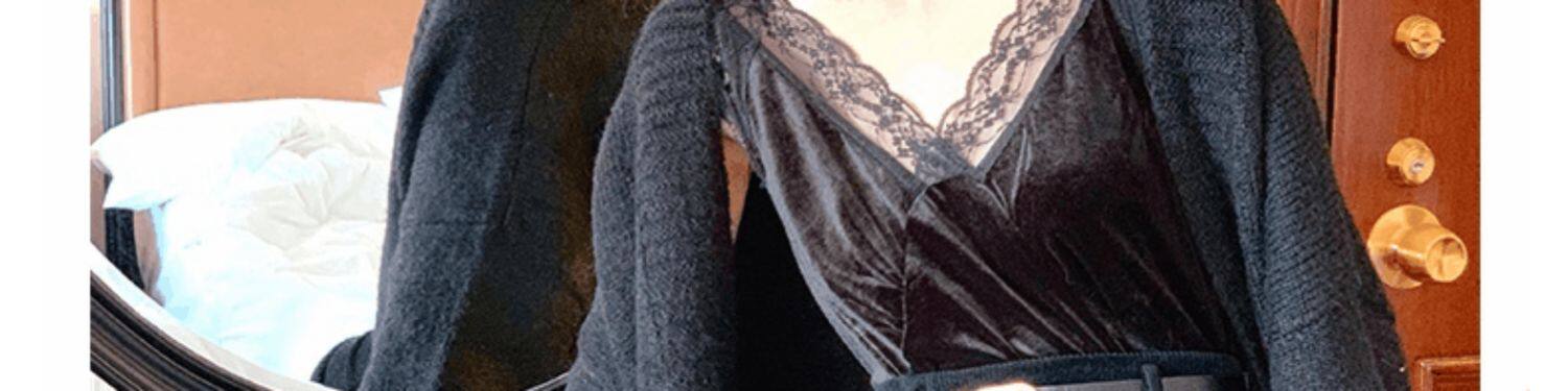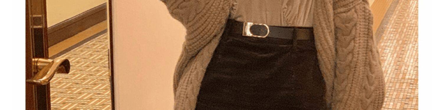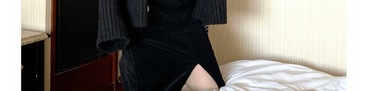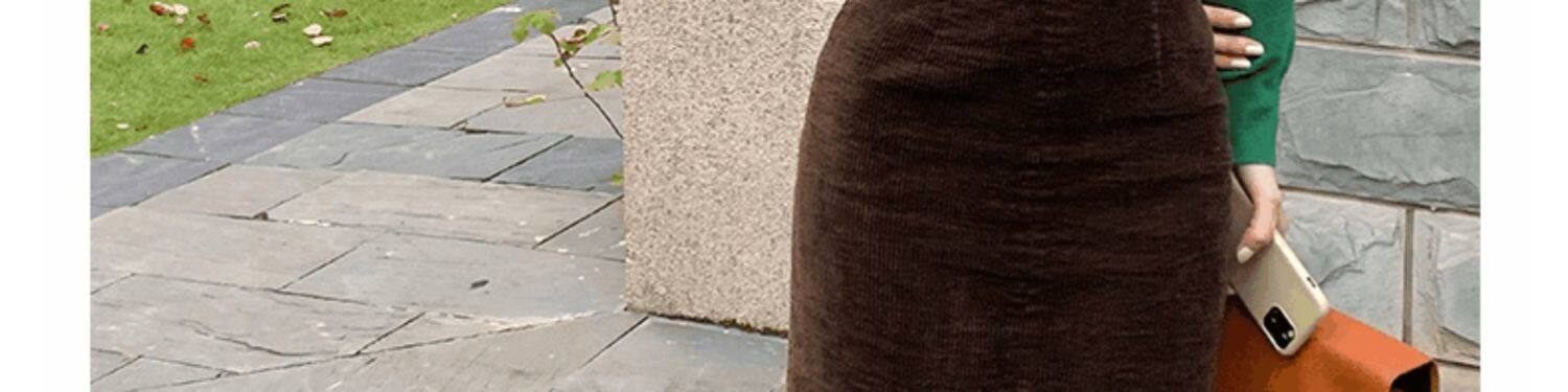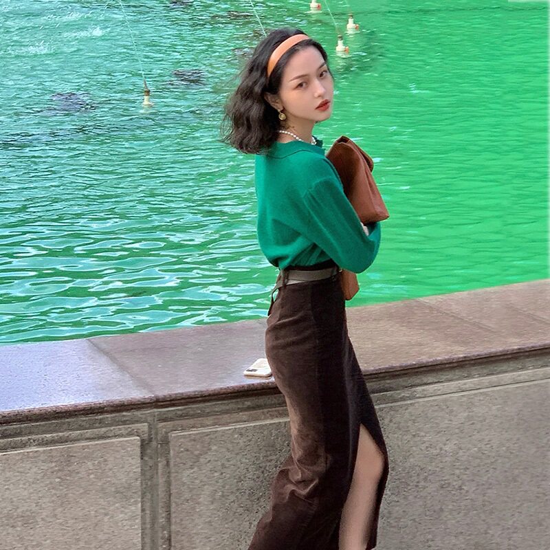 Вельветовая длинная демисезонная юбка, зимний шерстяной универсальный свитер, бархатная зимняя поясная сумка, средней длины, высокая талия