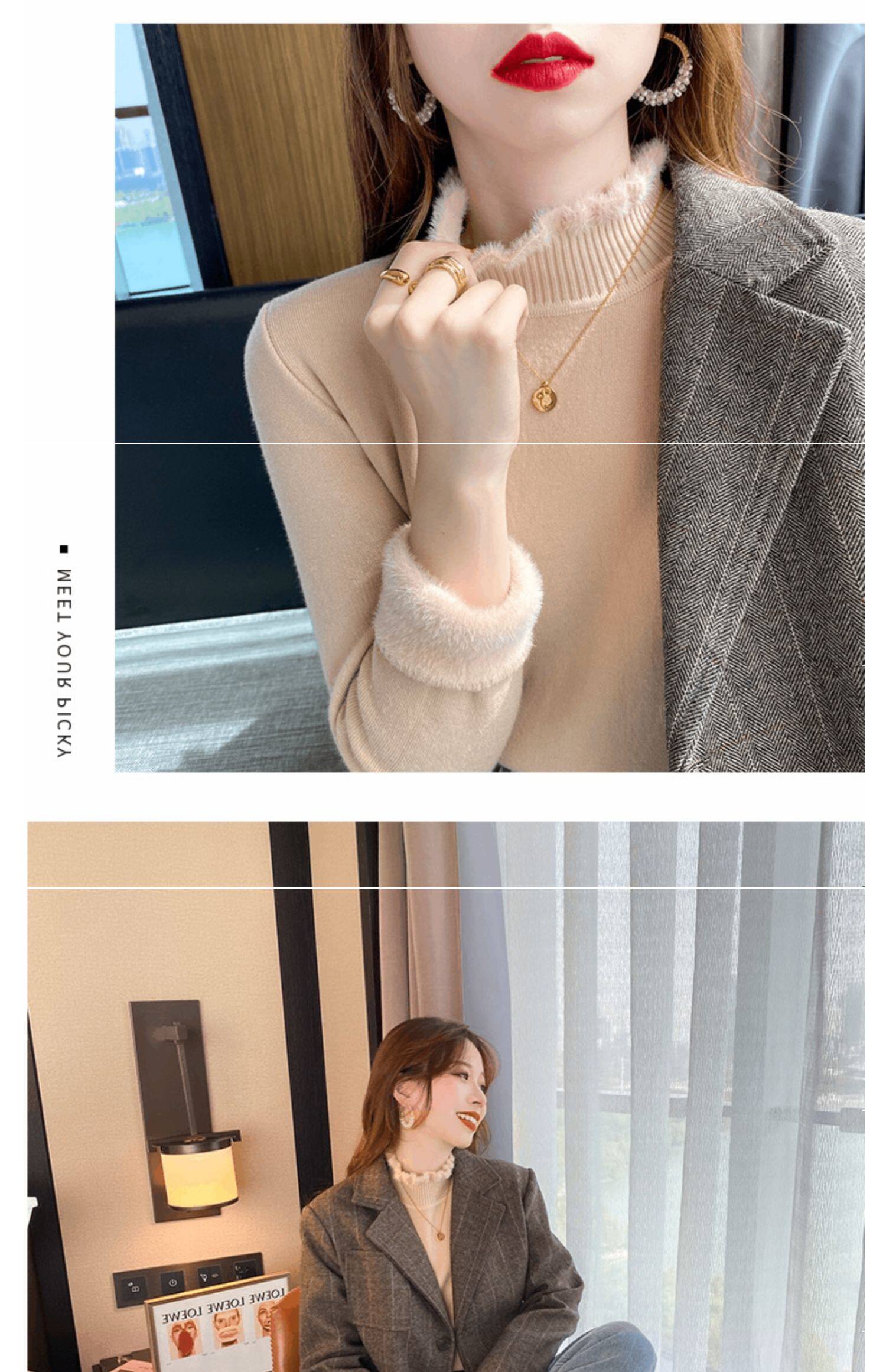 Бархатный утепленный демисезонный базовый приятный телу свитер, в западном стиле