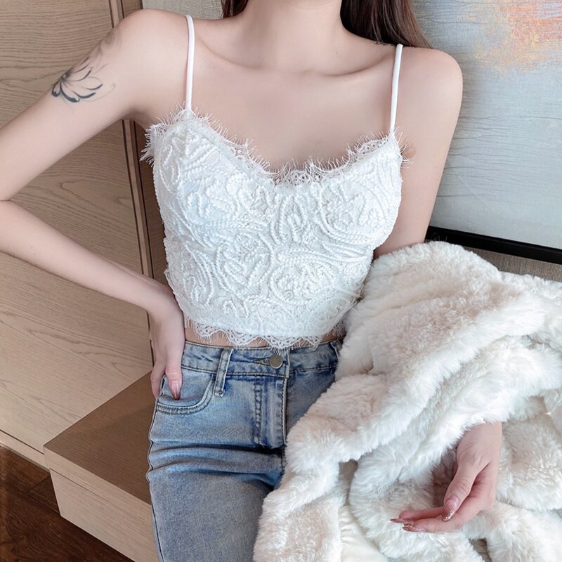Майка топ, базовый кружевной шелковый костюм, французский стиль, популярно в интернете, красивая спина