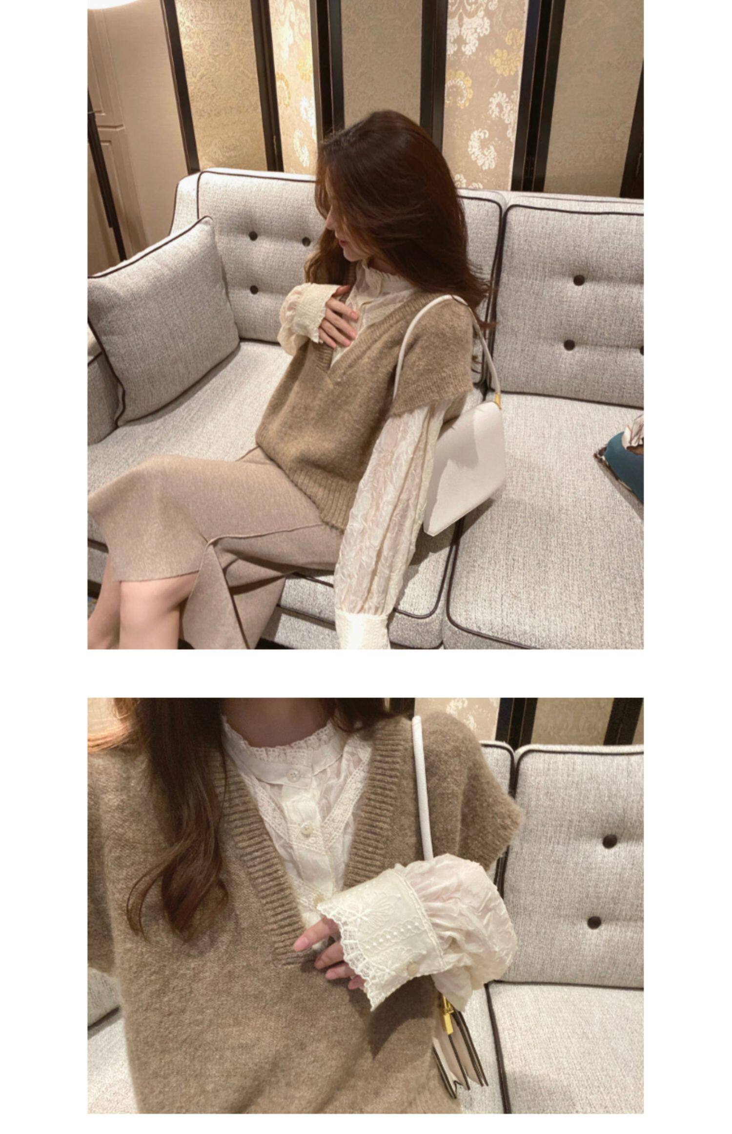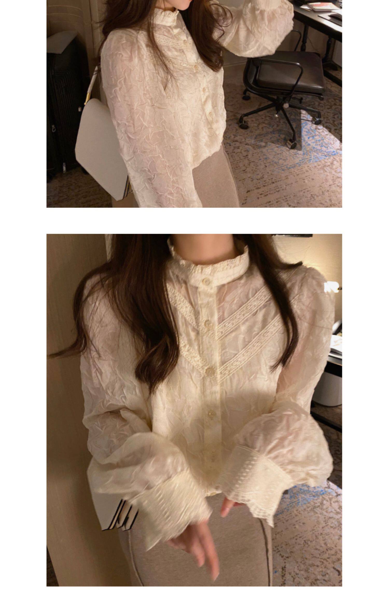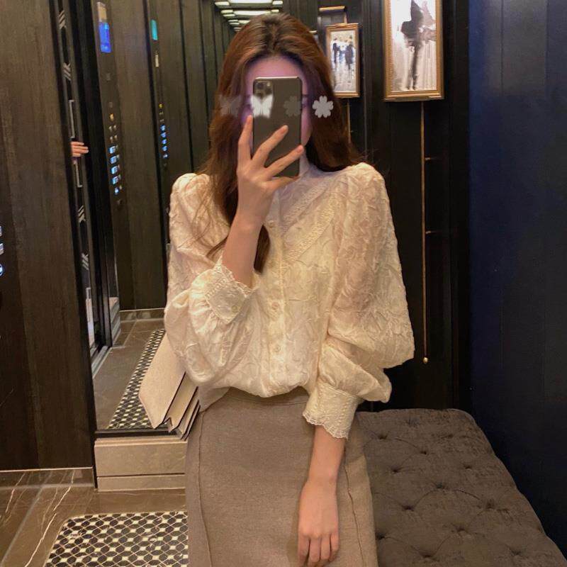 Кружевная шелковая приятная телу осенняя сексуальная рубашка, в западном стиле, коллекция 2023, французский стиль