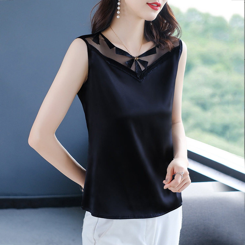 Топ с чашечками, майка топ, базовый шелковый костюм без рукавов, французский стиль, V-образный вырез