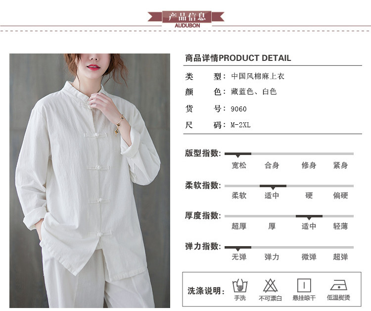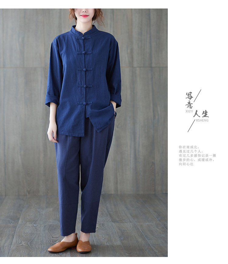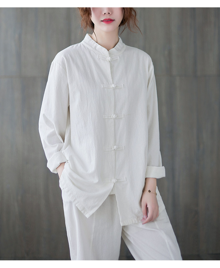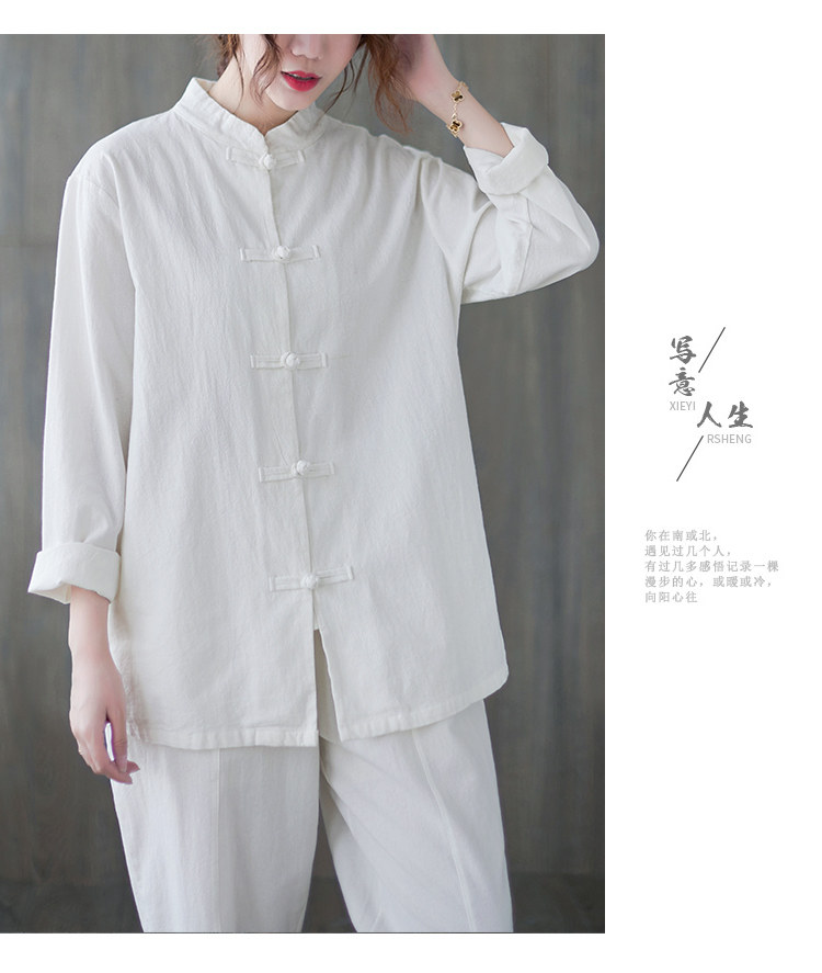 Рубашка, весенний кардиган, китайский стиль, из хлопка и льна, коллекция 2021, свободный крой