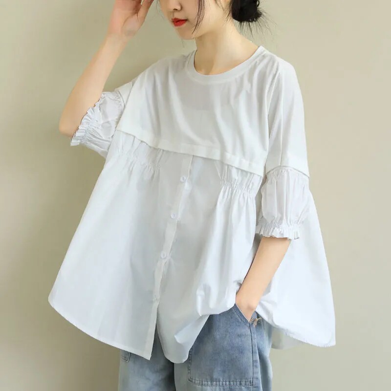 Летняя дизайнерская летняя одежда, футболка, рубашка, большой размер, тренд сезона, оверсайз, свободный крой, в западном стиле