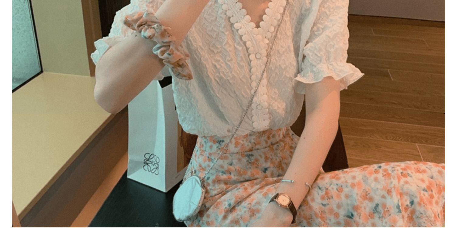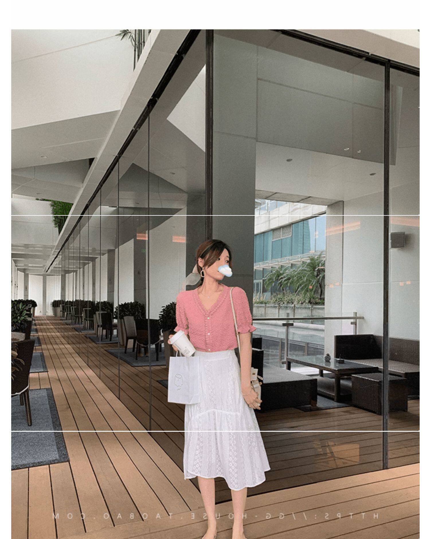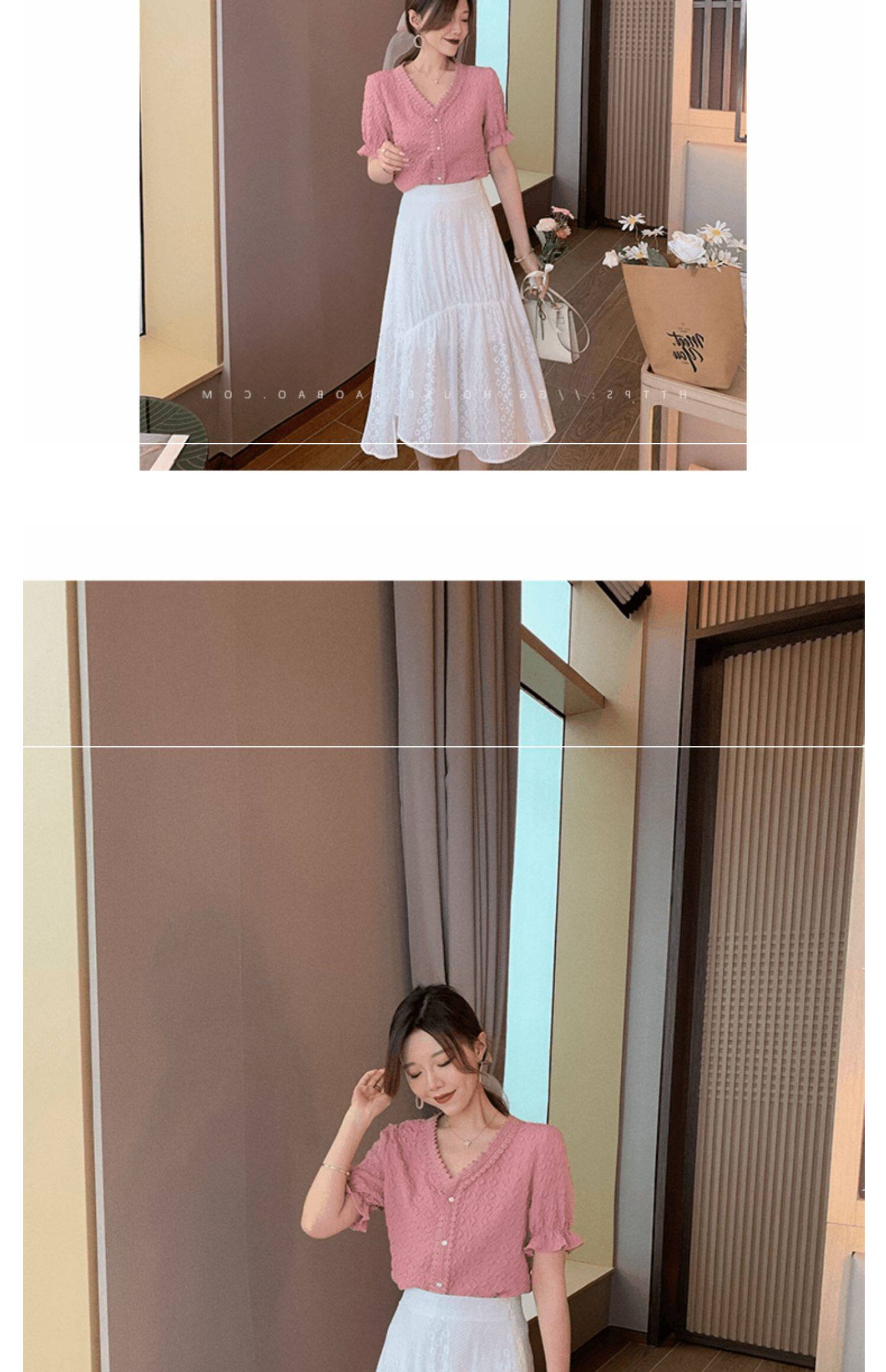 Белая шифоновая летняя кружевная шелковая рубашка, короткий рукав, 2021 года, в западном стиле
