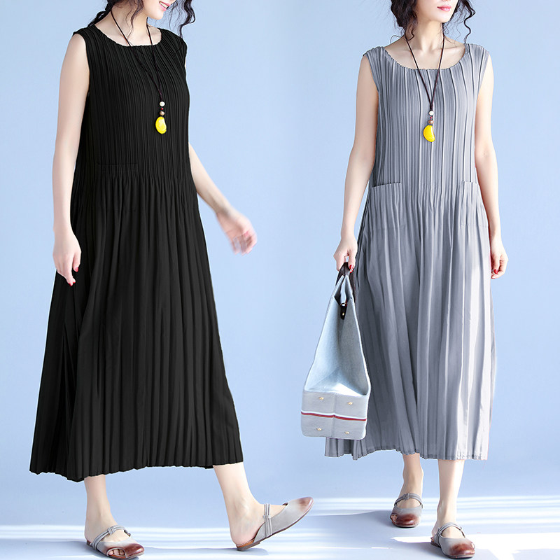 Летняя одежда, длинное платье без рукавов без рукавов, длинная юбка, средней длины, большой размер