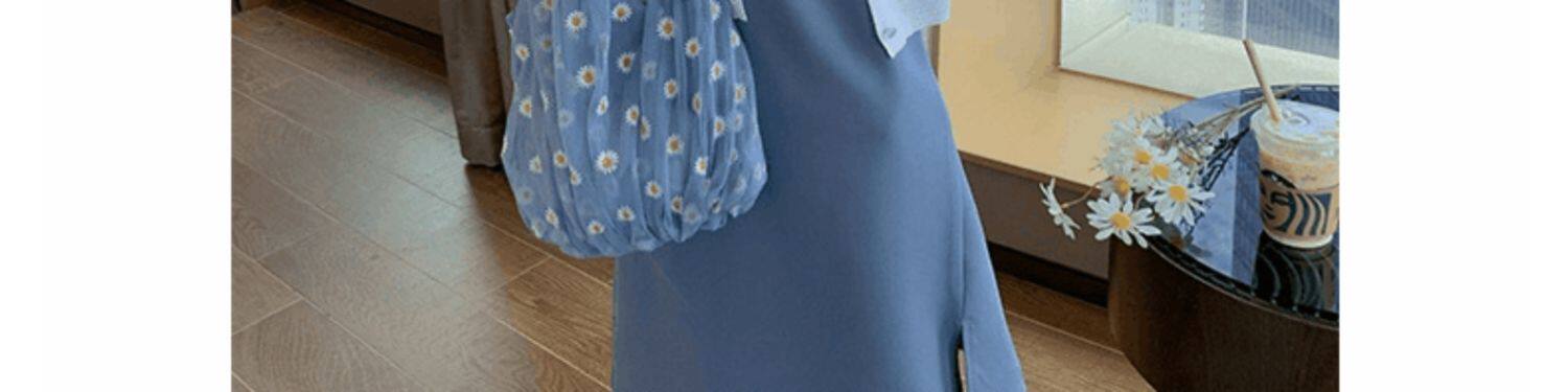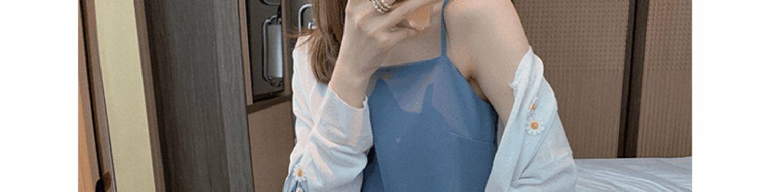 | Цвет: | Белый трикотажный свитер, Синий трикотажный свитер, Черное платье-комбинация, Синее платье-комбинация |