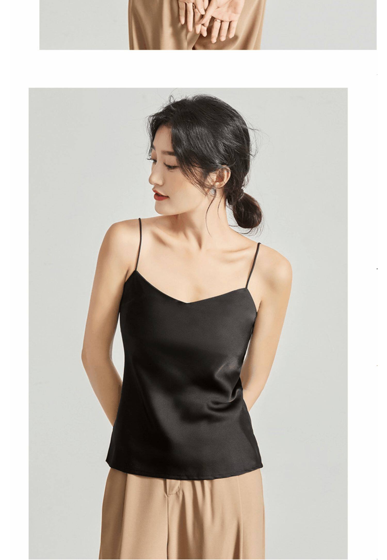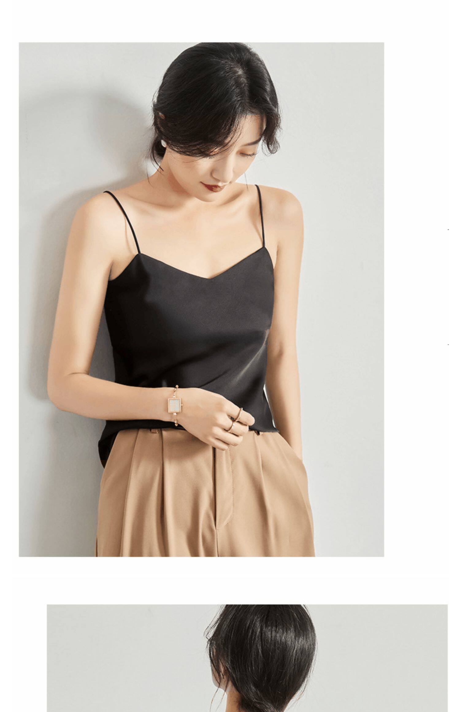 Майка топ, базовый шелковый костюм, большой размер, французский стиль, красивая спина