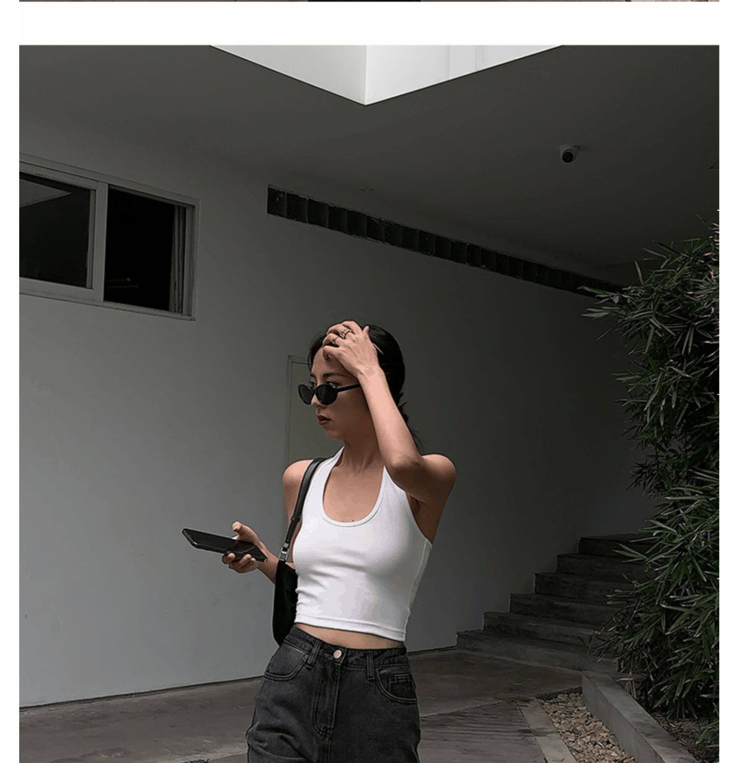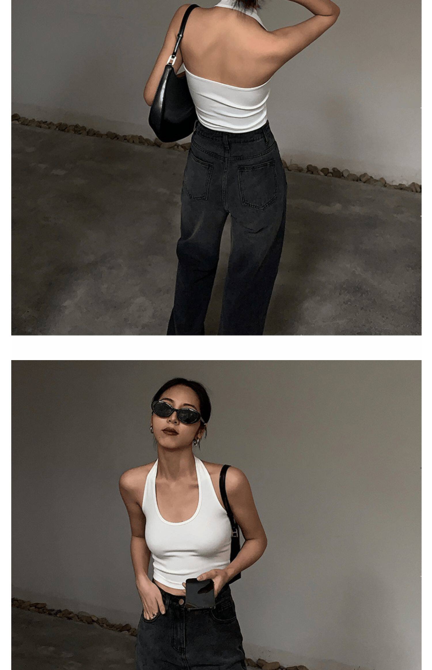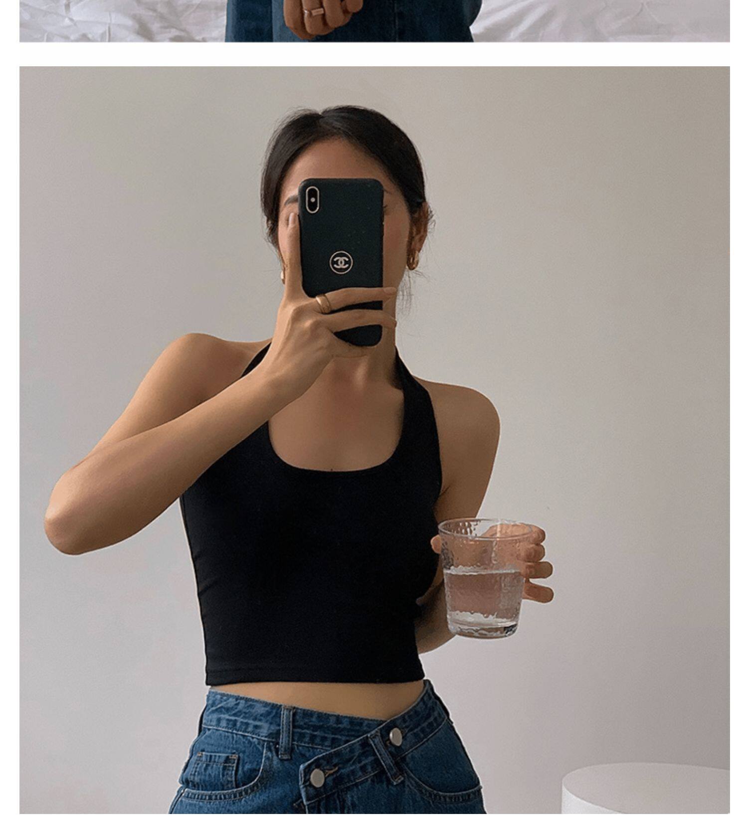 Майка топ, базовый сексуальный костюм, французский стиль, красивая спина, с открытой спиной