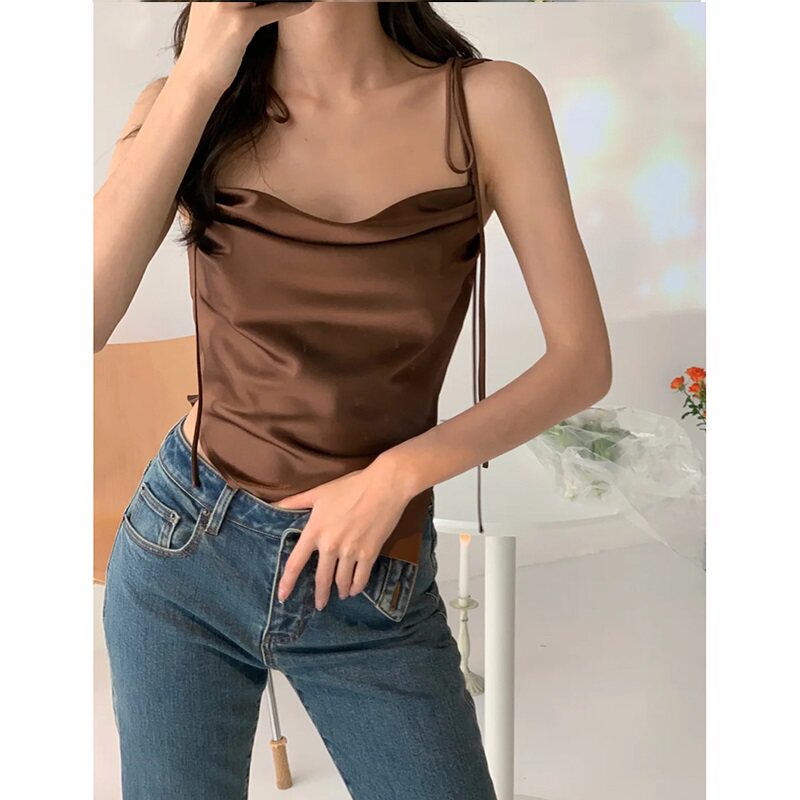Майка топ, базовый шелковый костюм, французский стиль