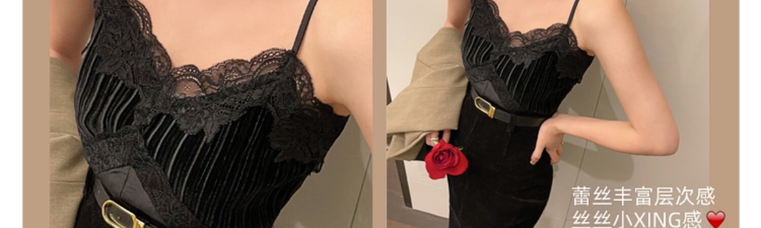Бархатная майка топ, базовый сексуальный шелковый костюм, красивая спина, французский стиль