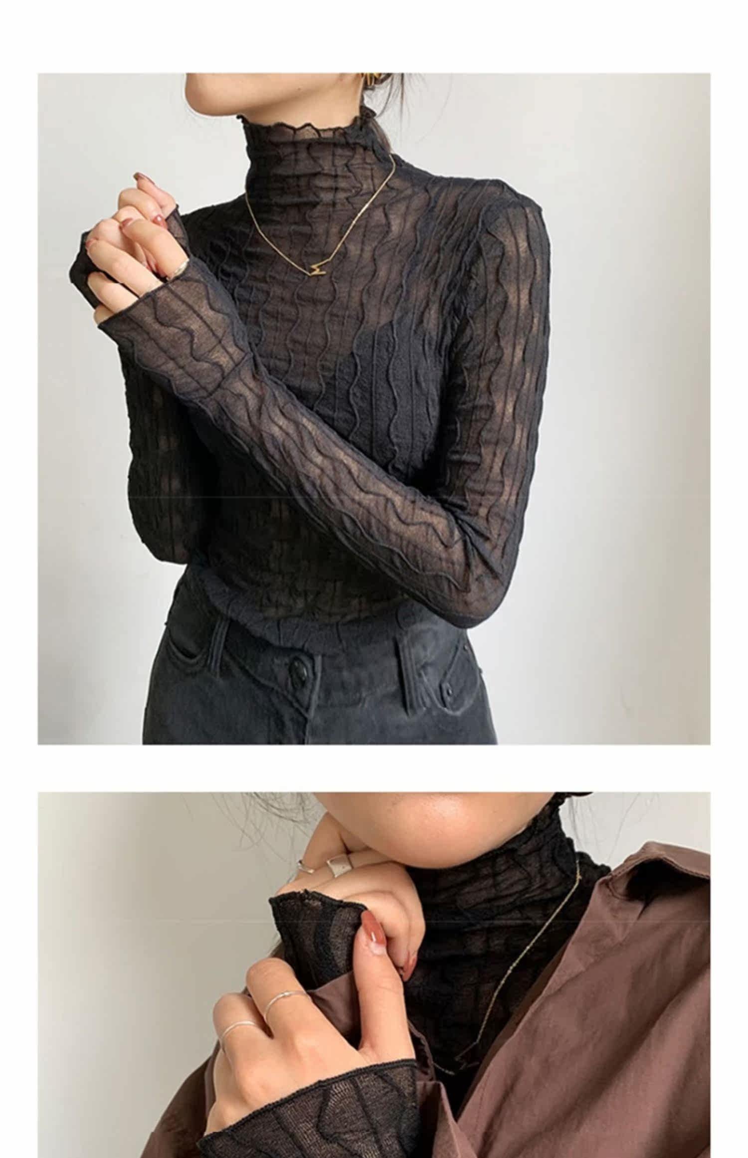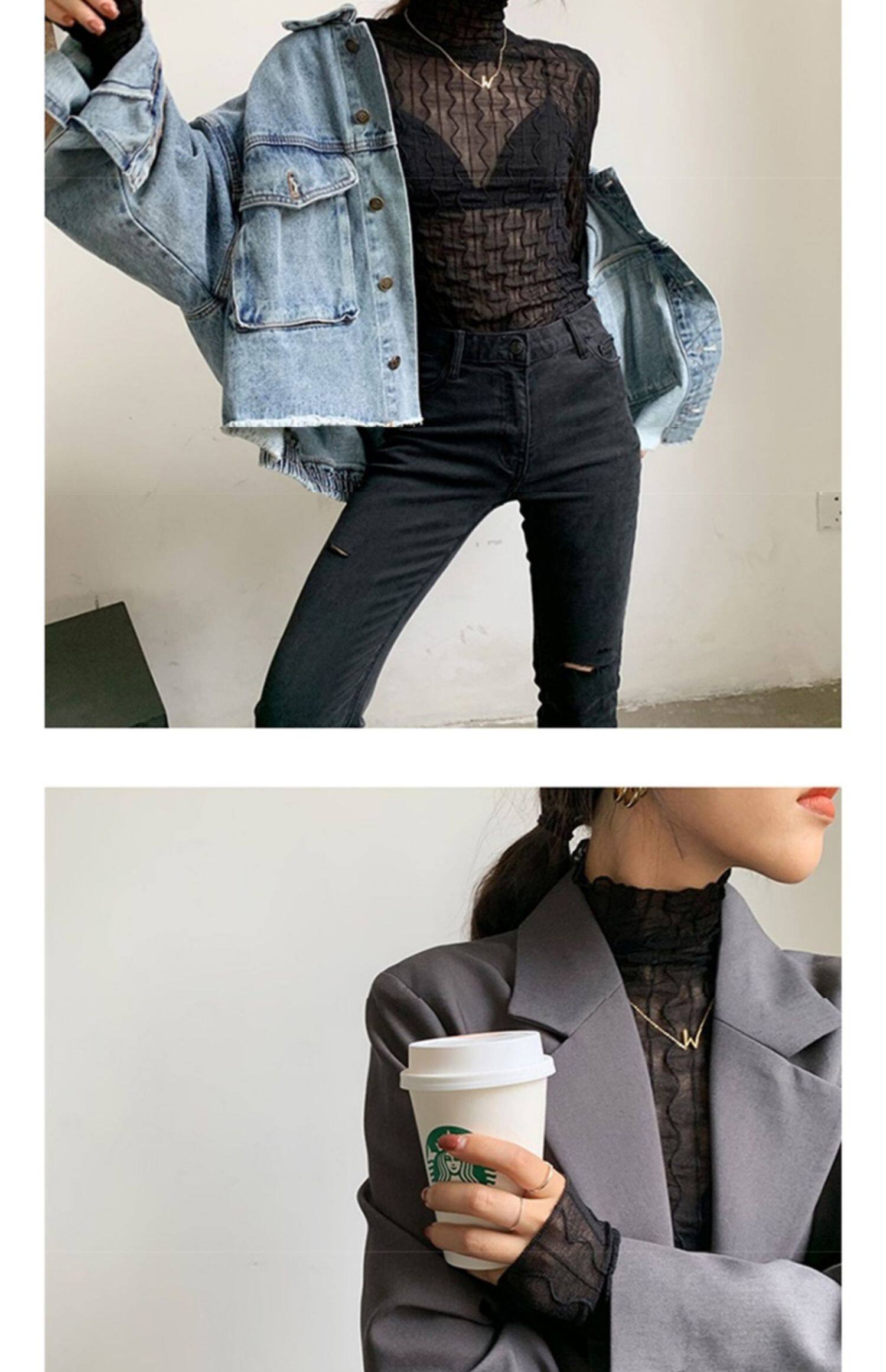 Сетчатая базовая рубашка для женщин с модным темпераментом Ранней осенью новая рубашка для весны, осень и зимний высококачественный топ водолазки