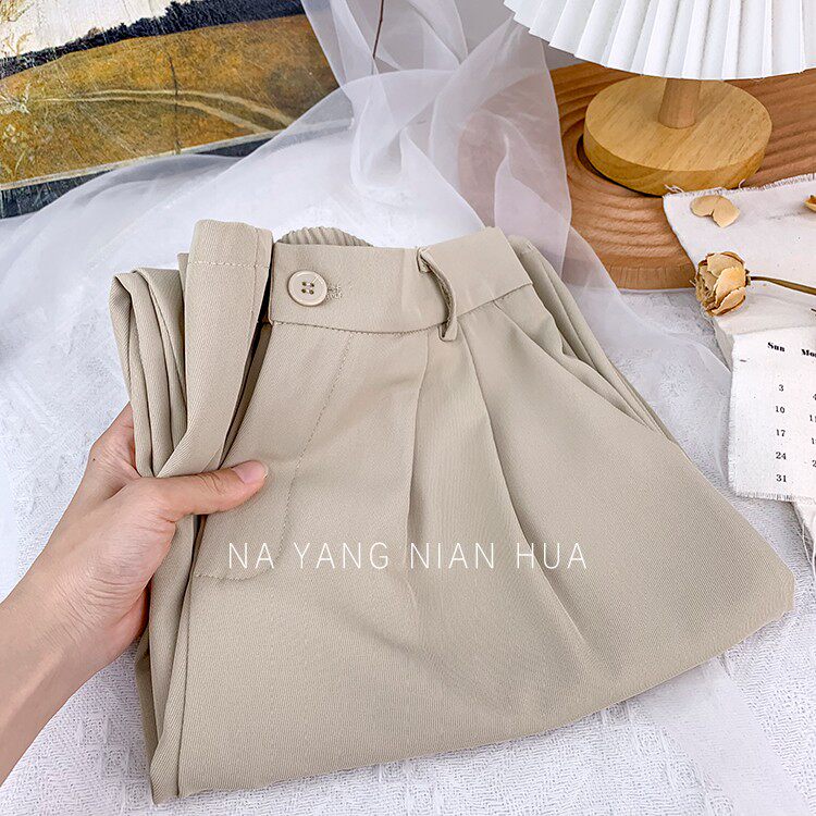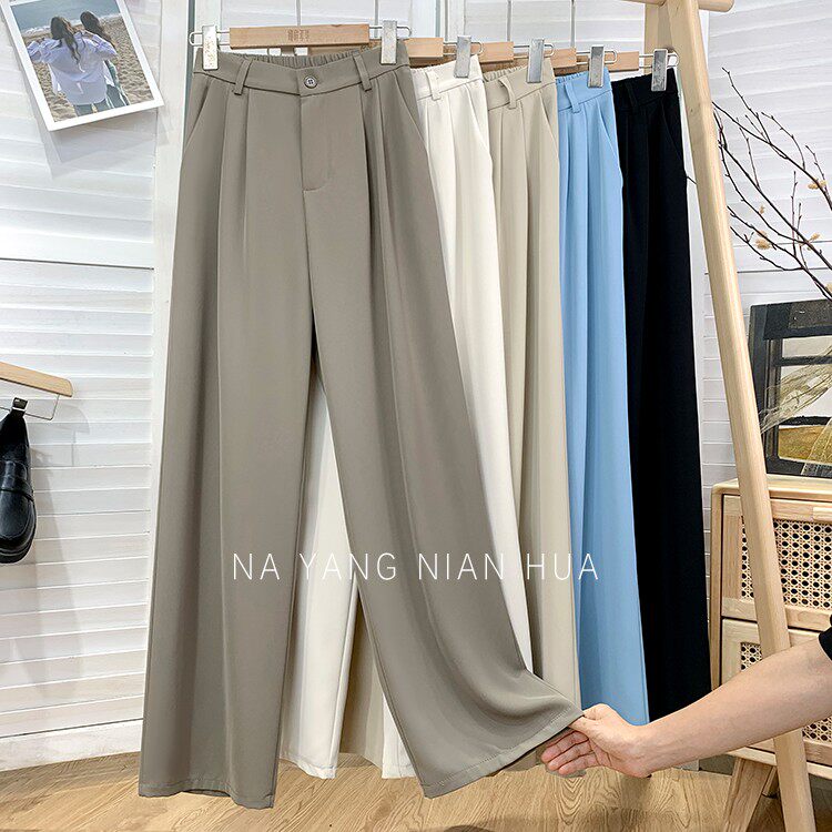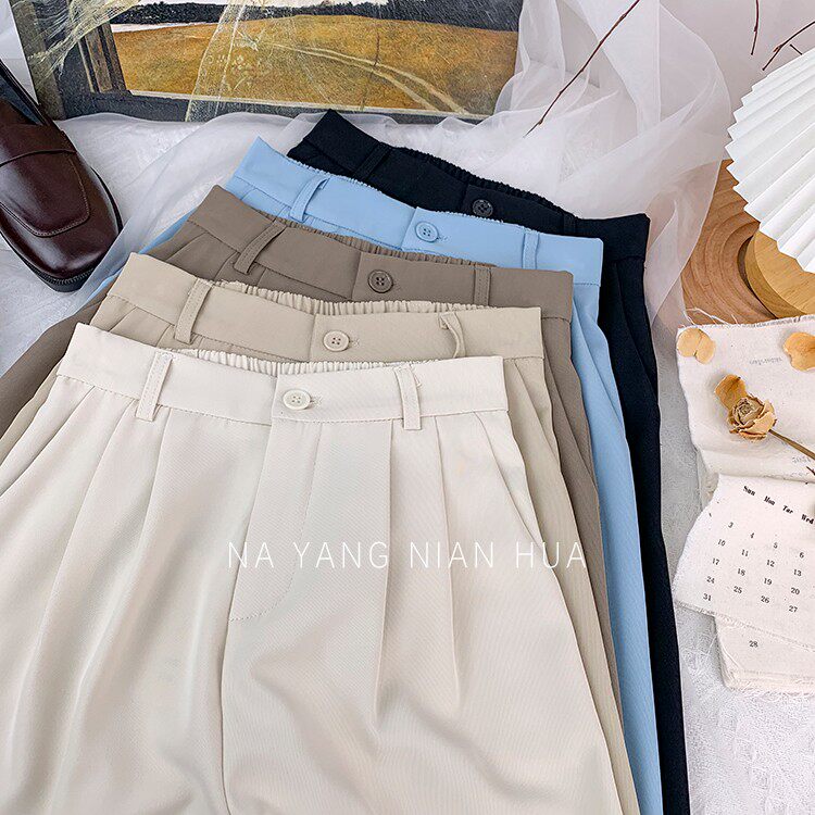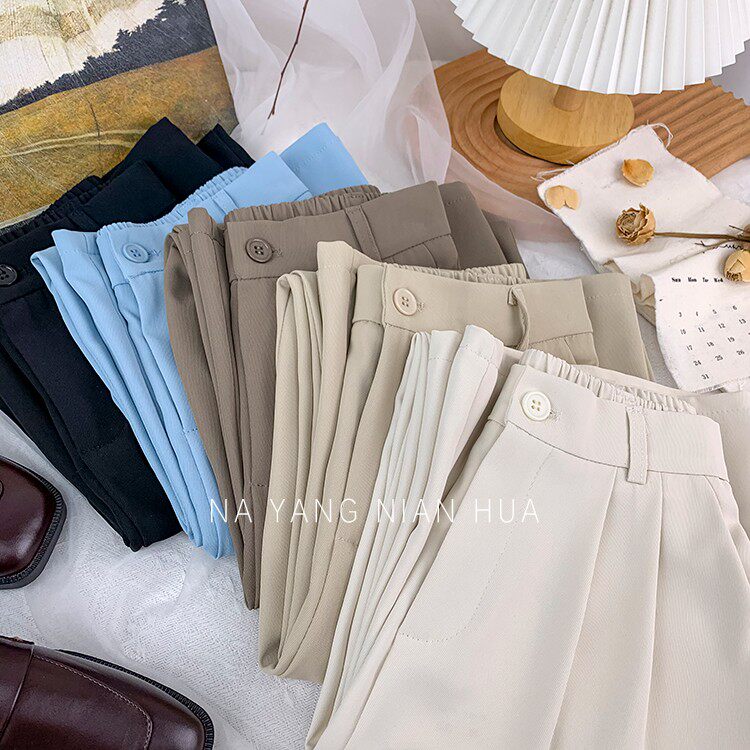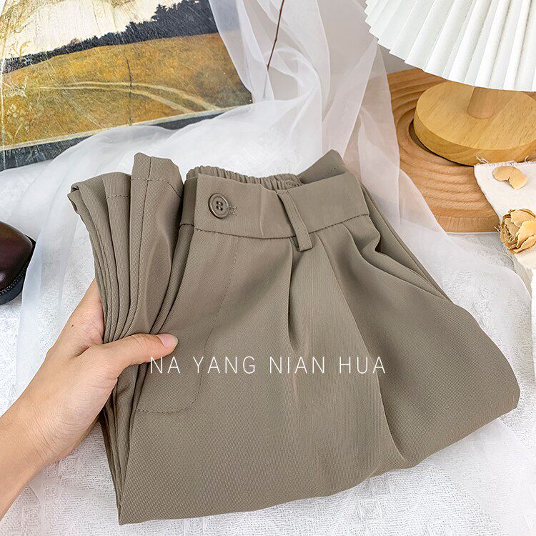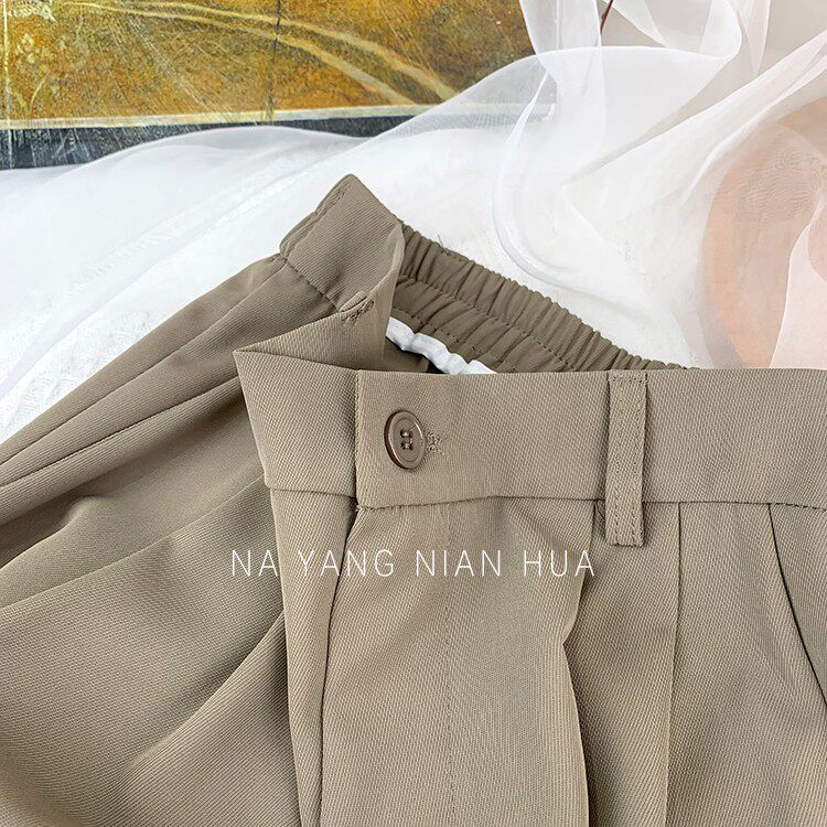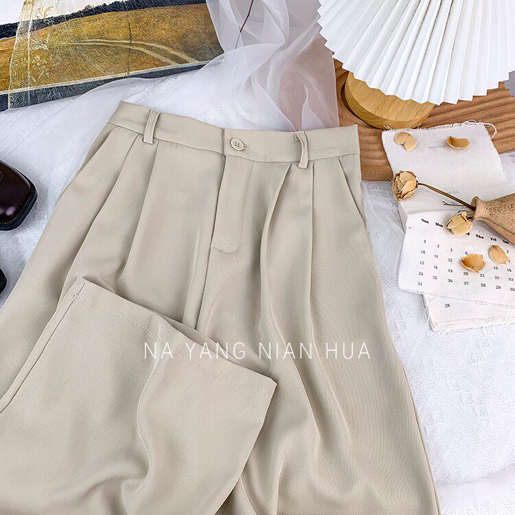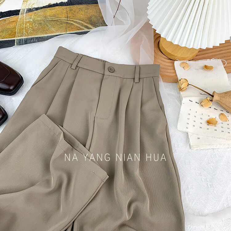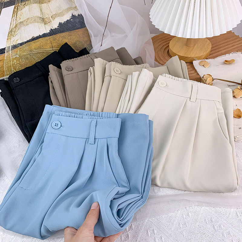 Приталенный костюм, осенние штаны, повседневные брюки, высокая талия, свободный прямой крой