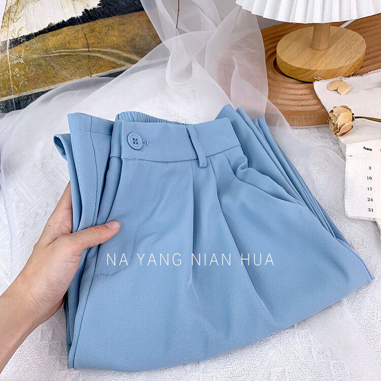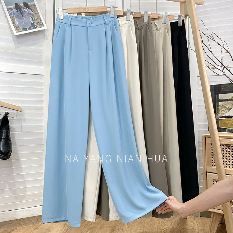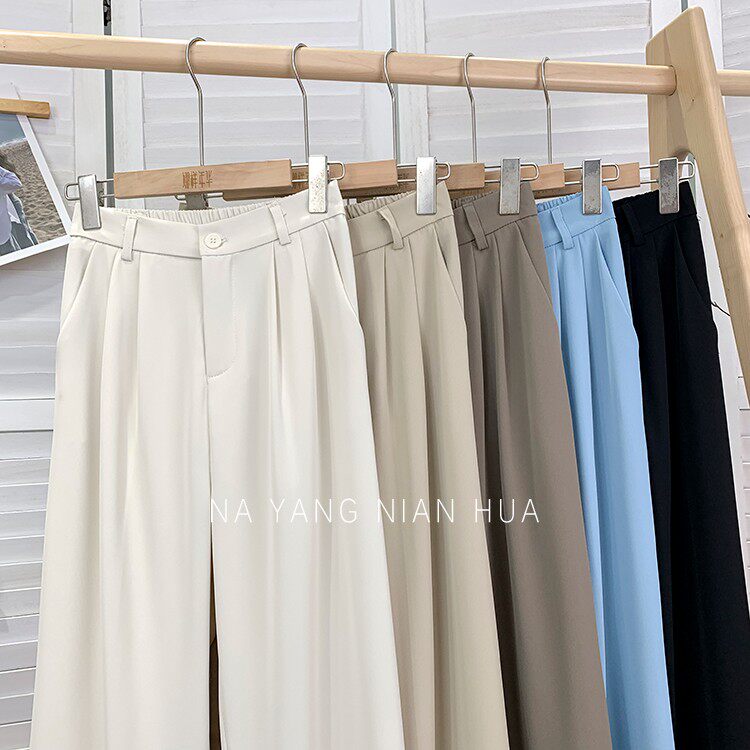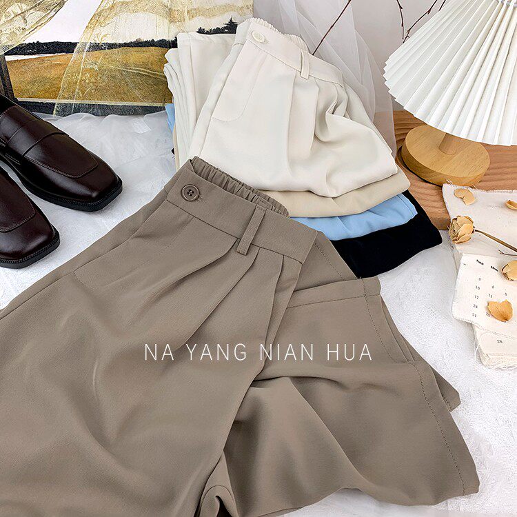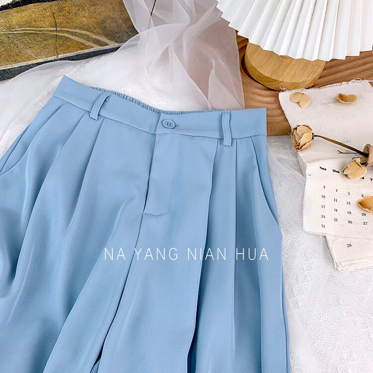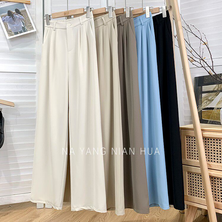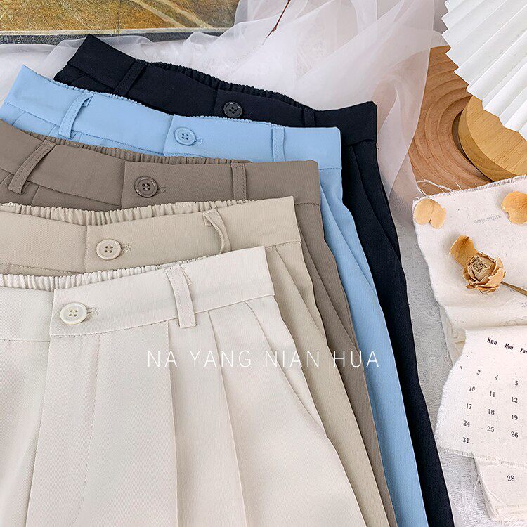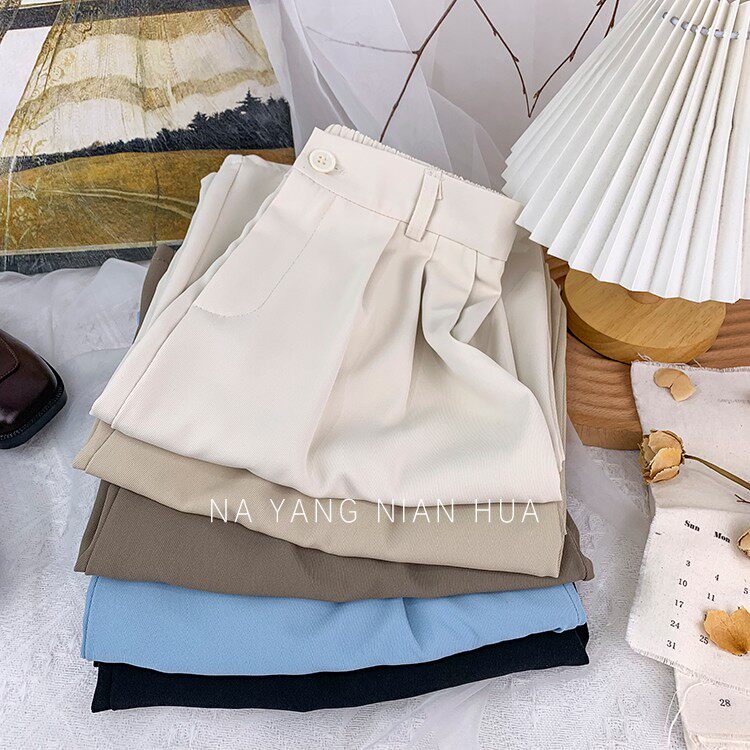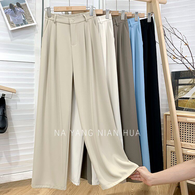 Приталенный костюм, осенние штаны, повседневные брюки, высокая талия, свободный прямой крой