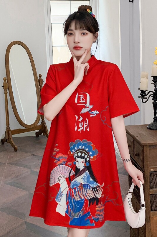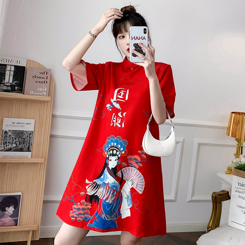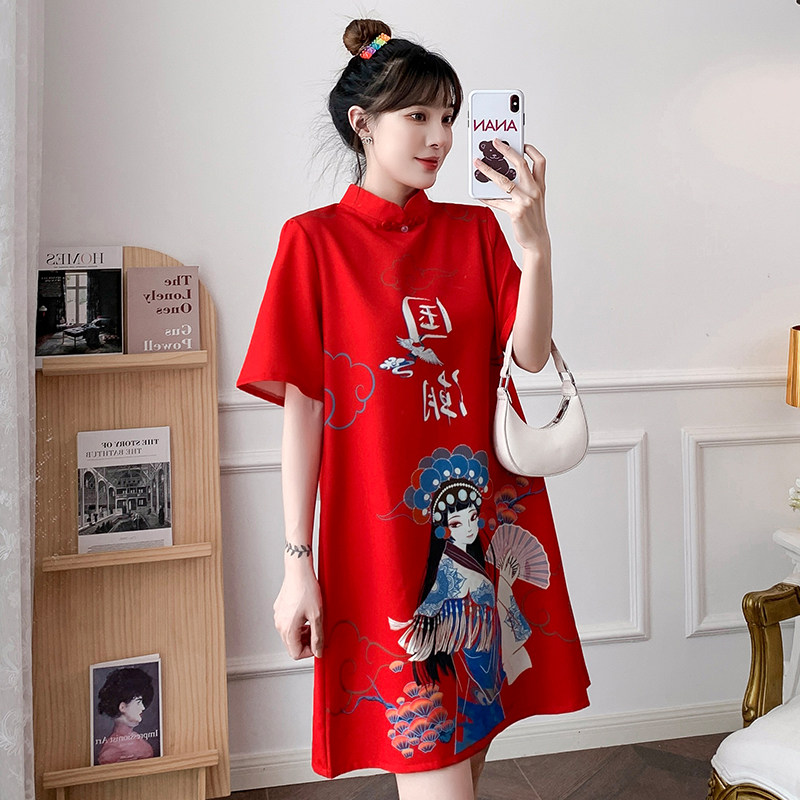 Летнее платье, легкое ципао, в цветочек, свободный крой
