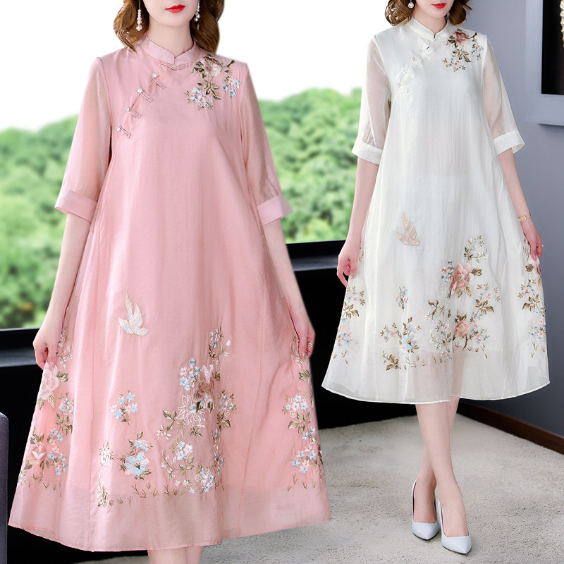Ципао, летнее элитное платье, ханьфу для матери, китайский стиль, большой размер, в западном стиле