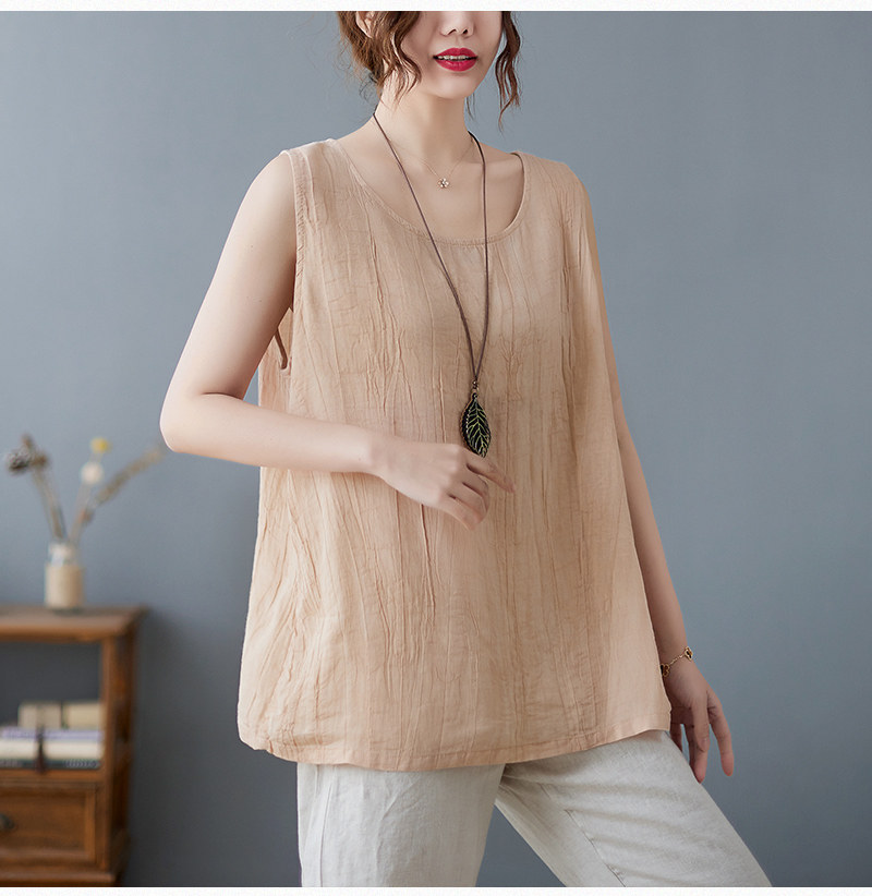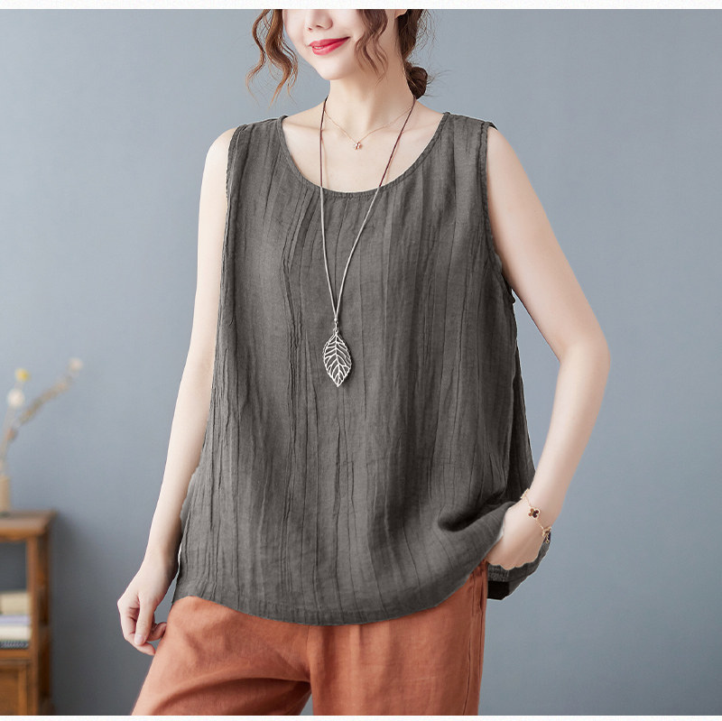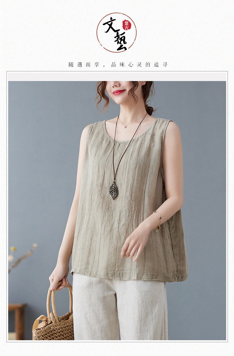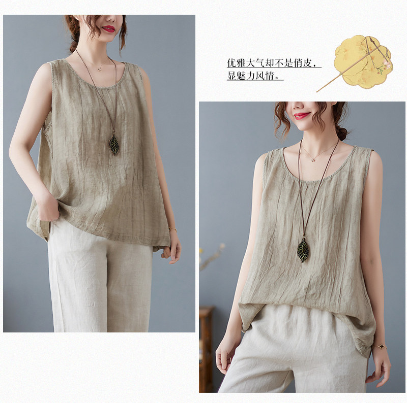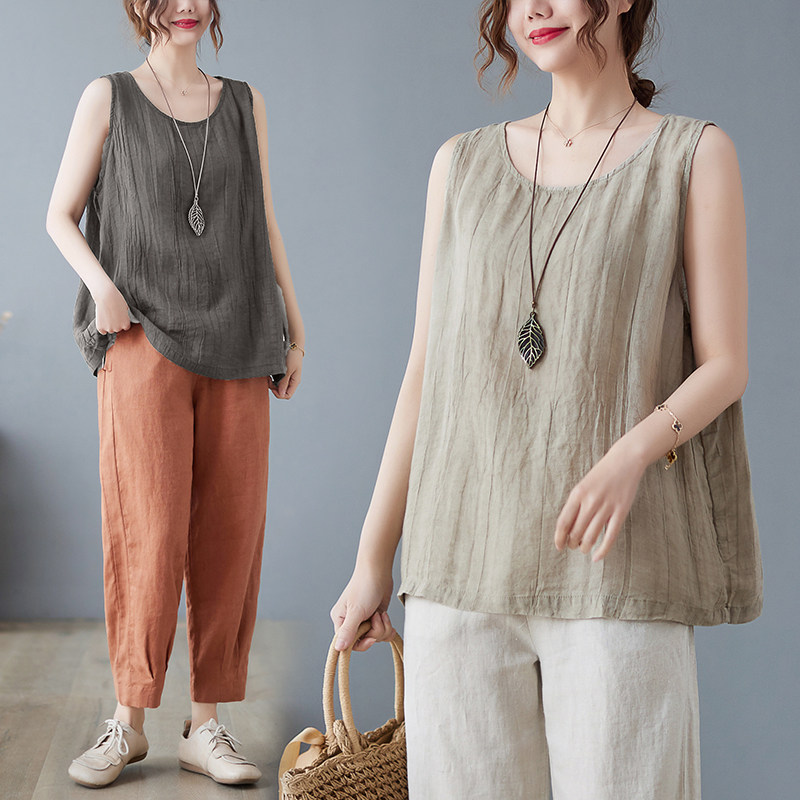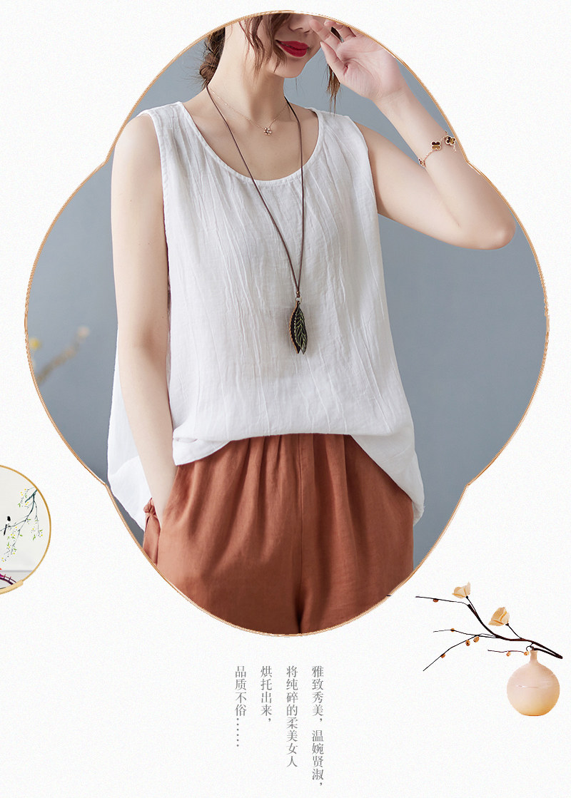 (Трансграничная торговля), японский ретро бюстгальтер-топ, футболка без рукавов, из хлопка и льна, свободный крой