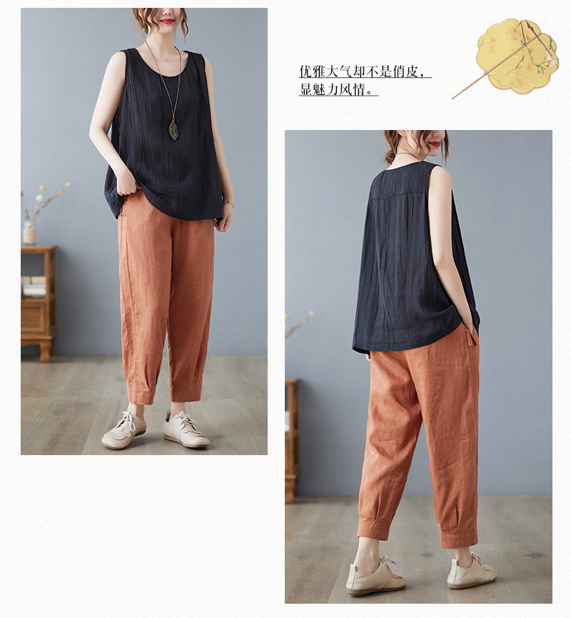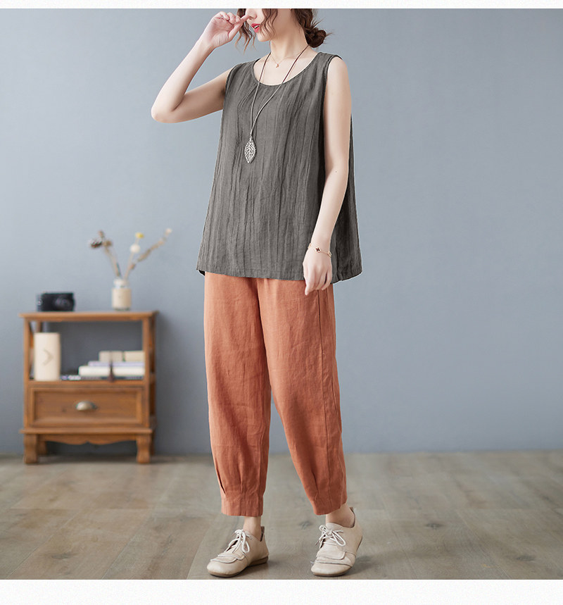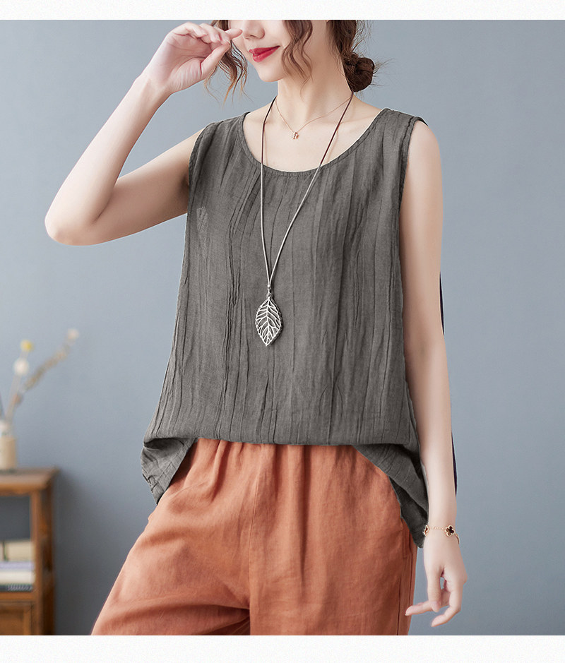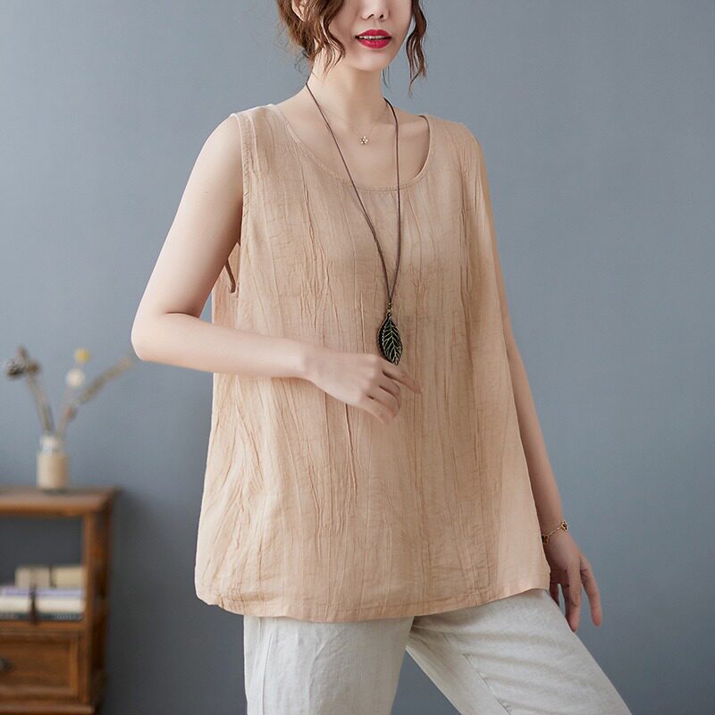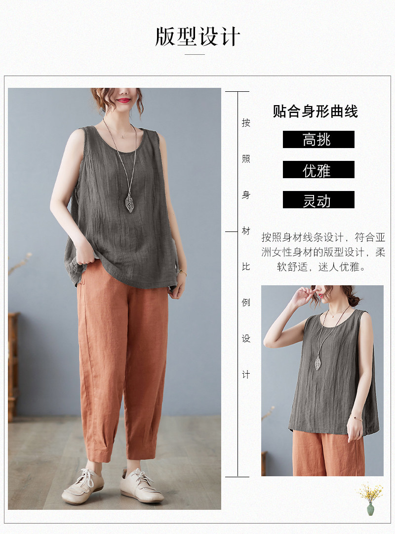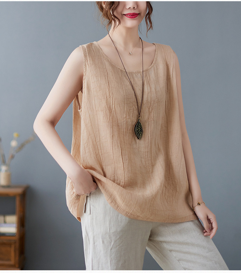 (Трансграничная торговля), японский ретро бюстгальтер-топ, футболка без рукавов, из хлопка и льна, свободный крой