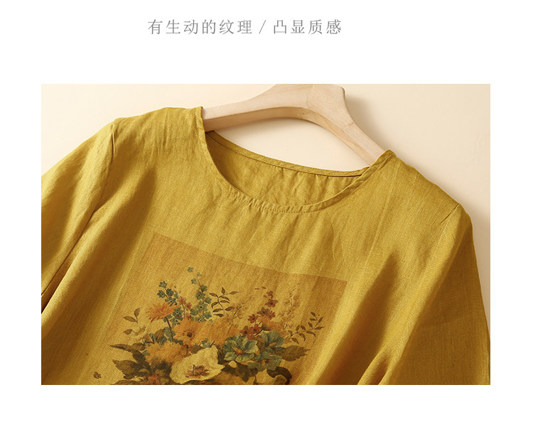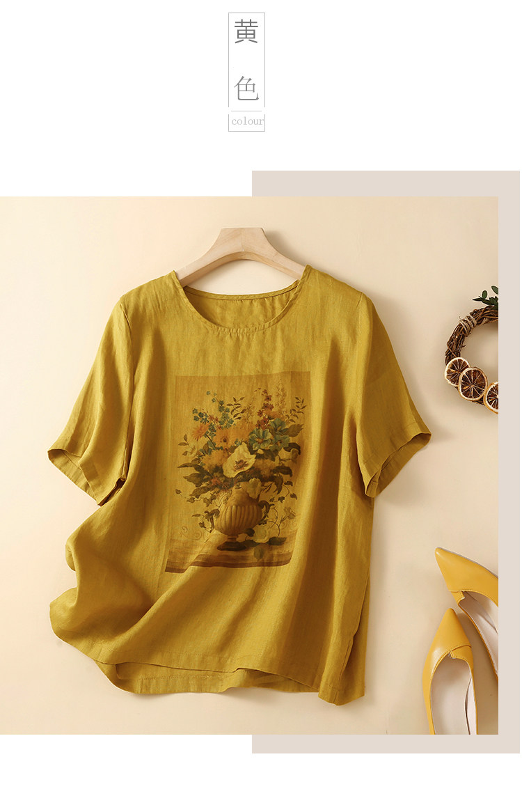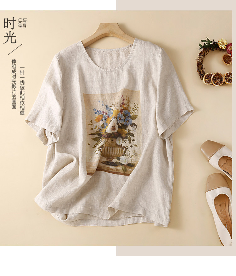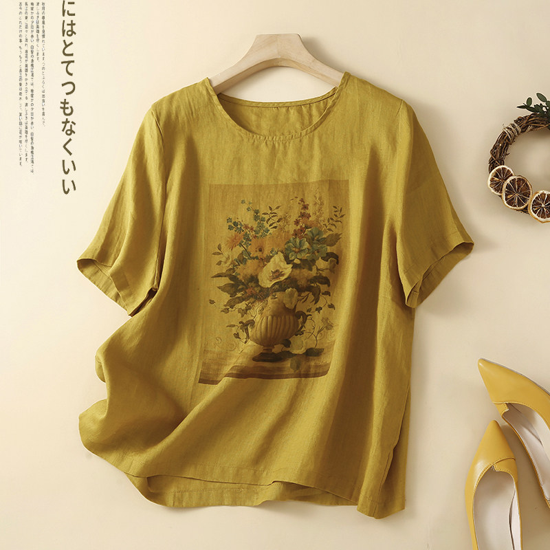 Утечка зазора ~ счетчик внешней торговли, большой брендовый лейбл, японский льняной топ с принтом в стиле ретро, женская свободная футболка с короткими рукавами