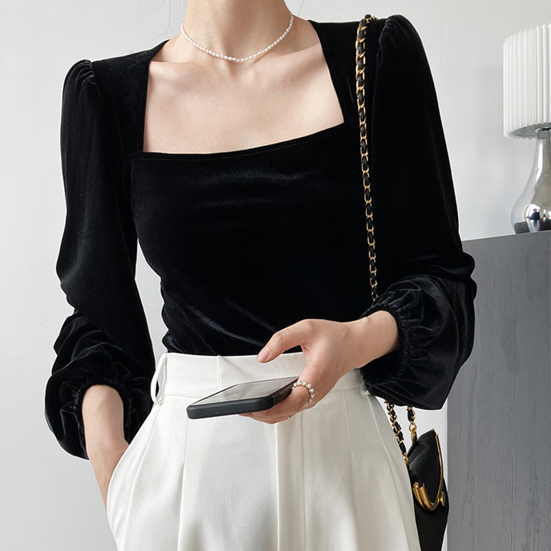 Рубашка для квадратных воротничков для женщин с модным весной, осенью и зимой 2024 Новый слой рукав