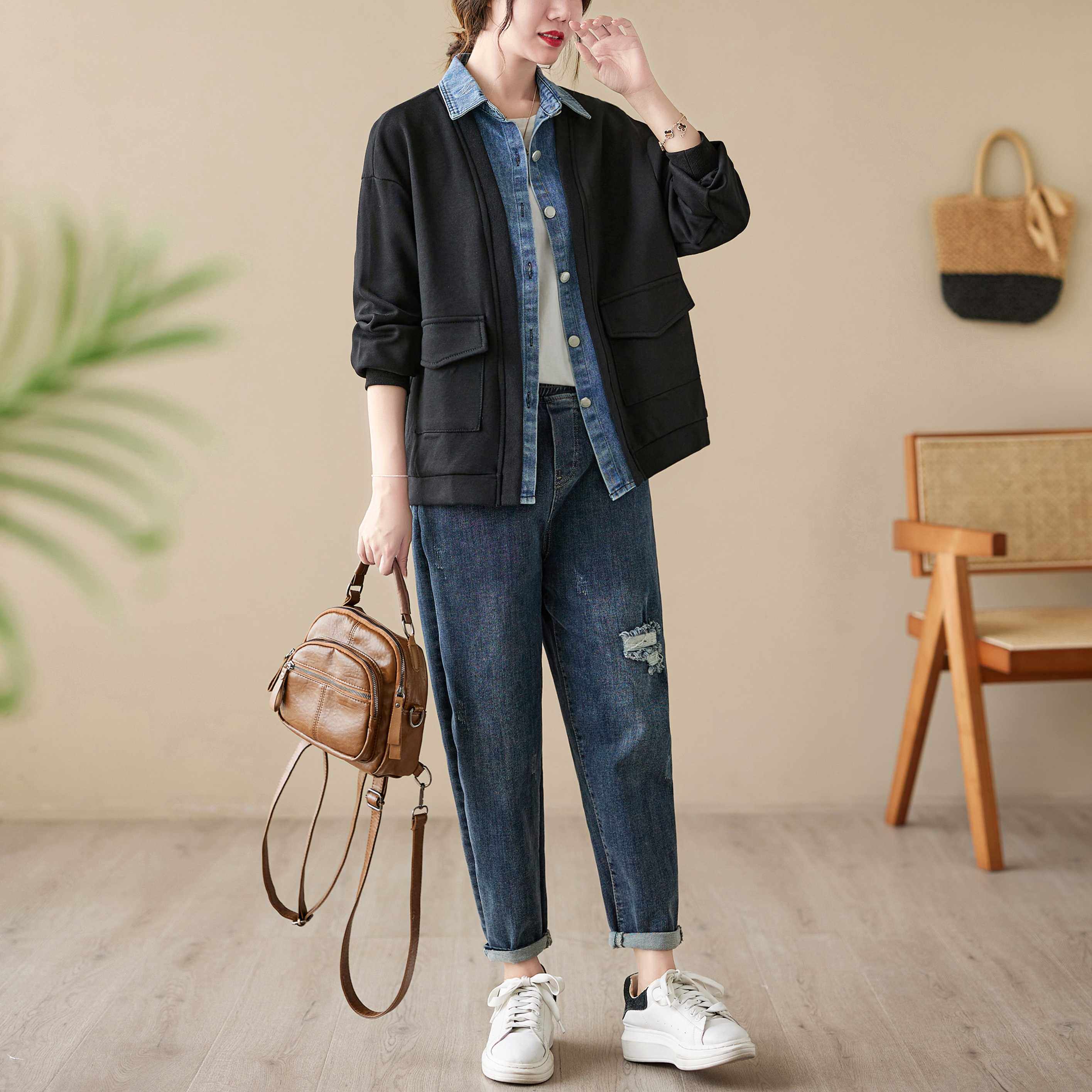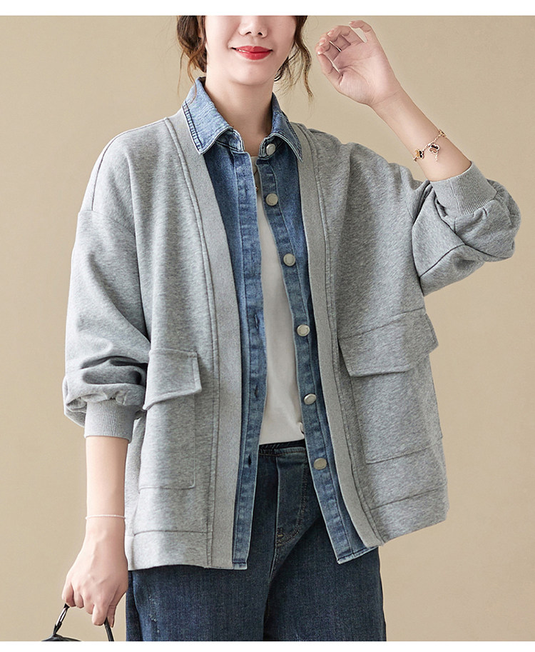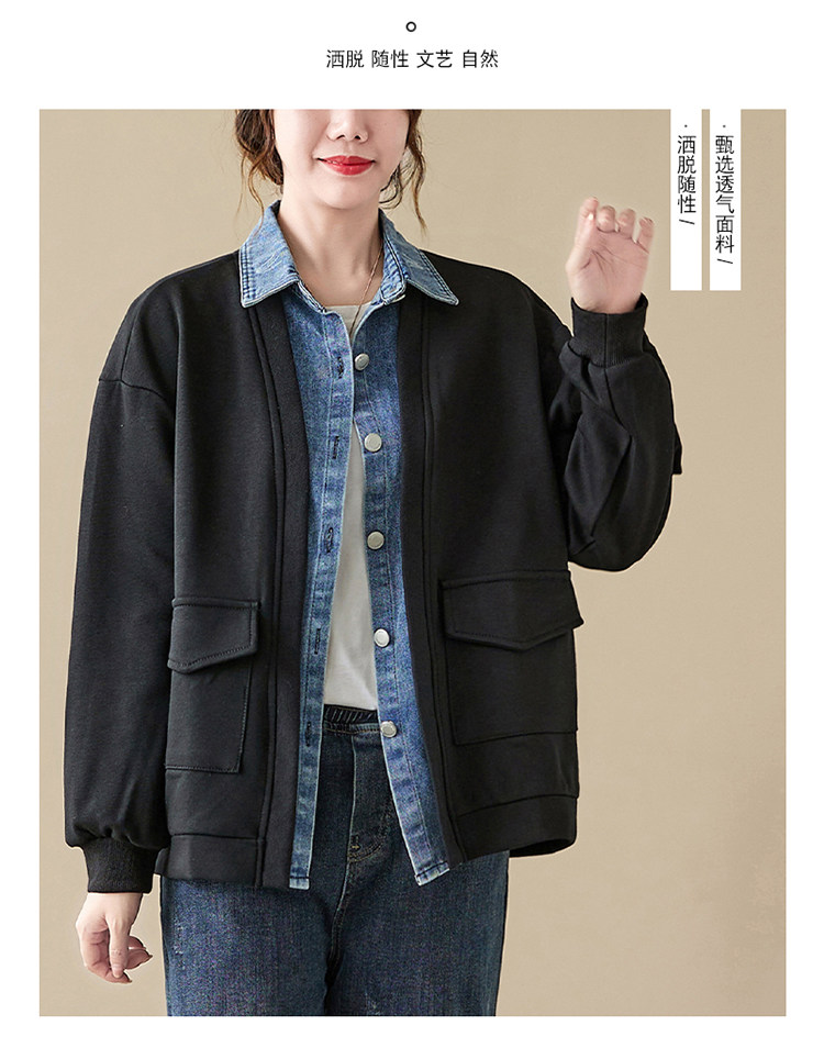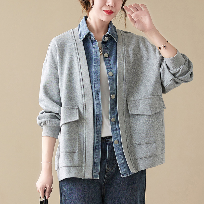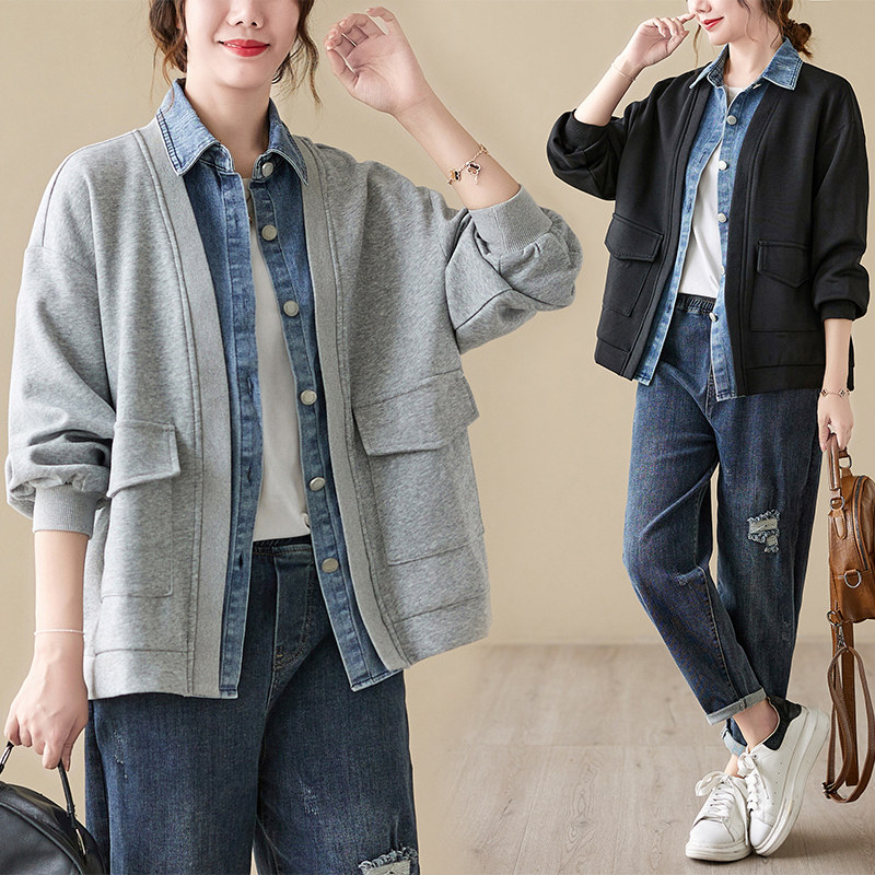 Джинсовый комплект, осенняя толстовка, дизайнерская куртка, большой размер, свободный крой, тренд сезона