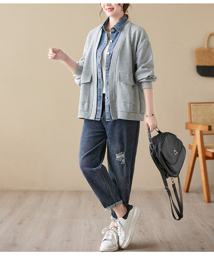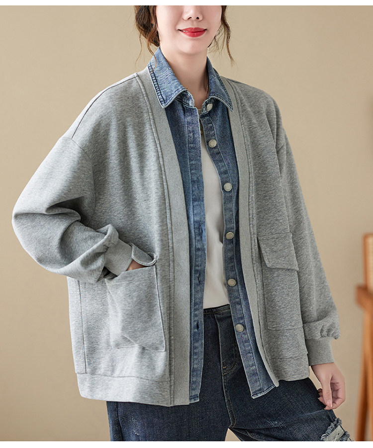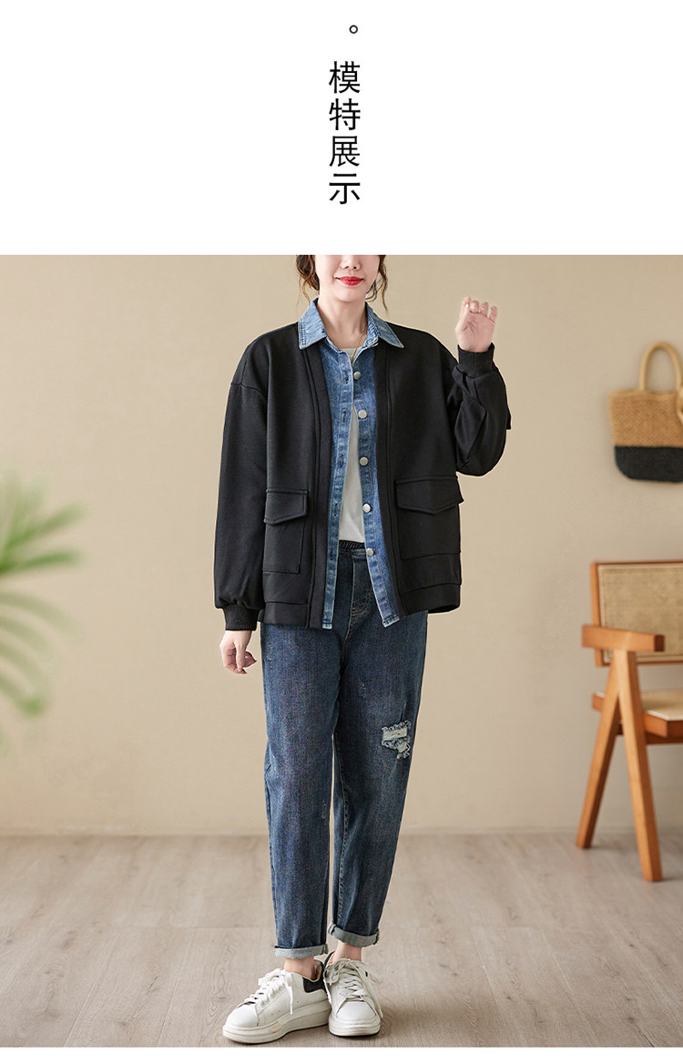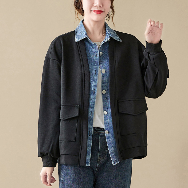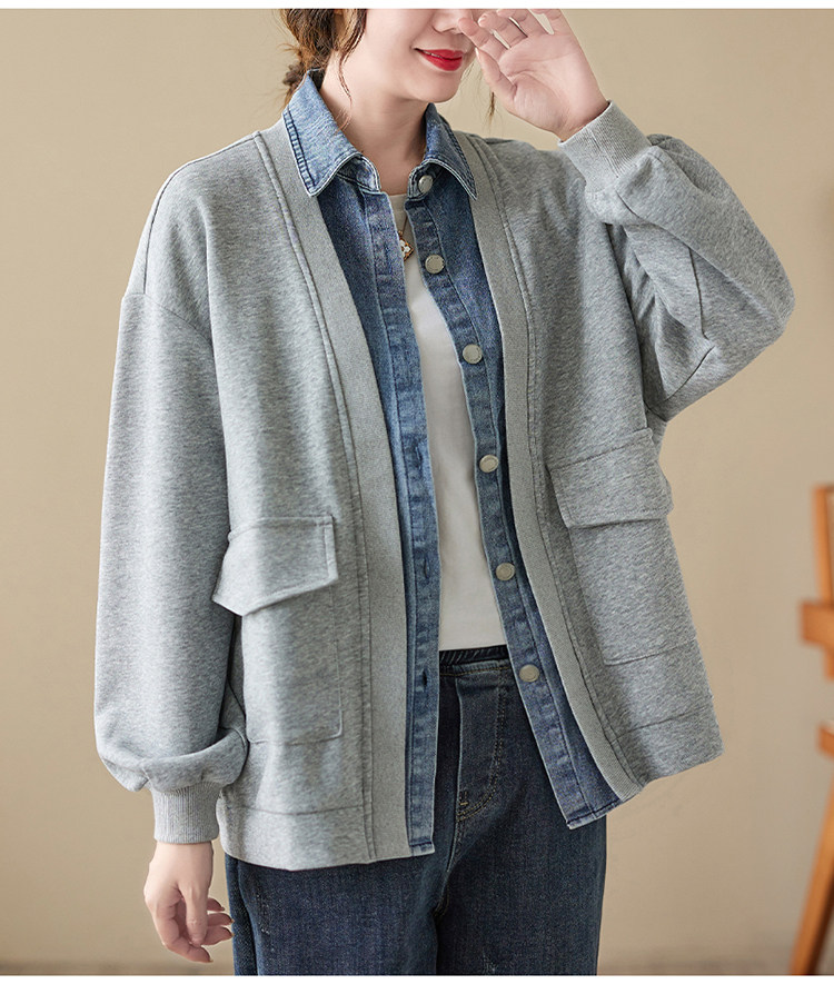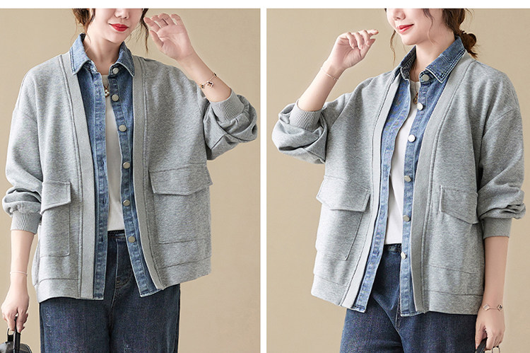 Джинсовый комплект, осенняя толстовка, дизайнерская куртка, большой размер, свободный крой, тренд сезона