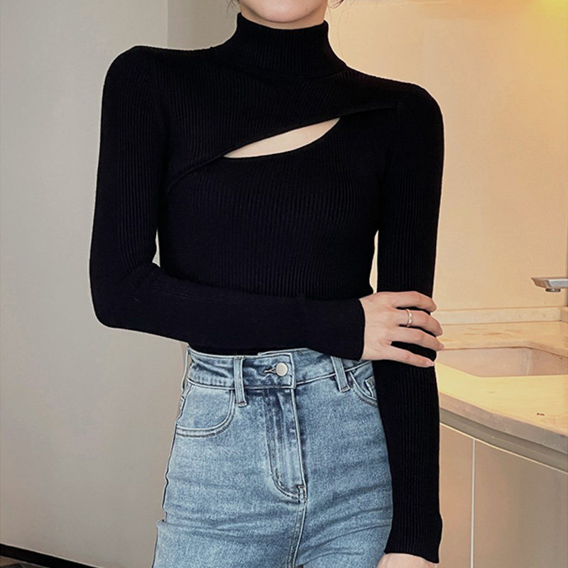 Демисезонный базовый приятный телу атмосферный свитер, высокий воротник, увеличенная толщина, в западном стиле, французский стиль