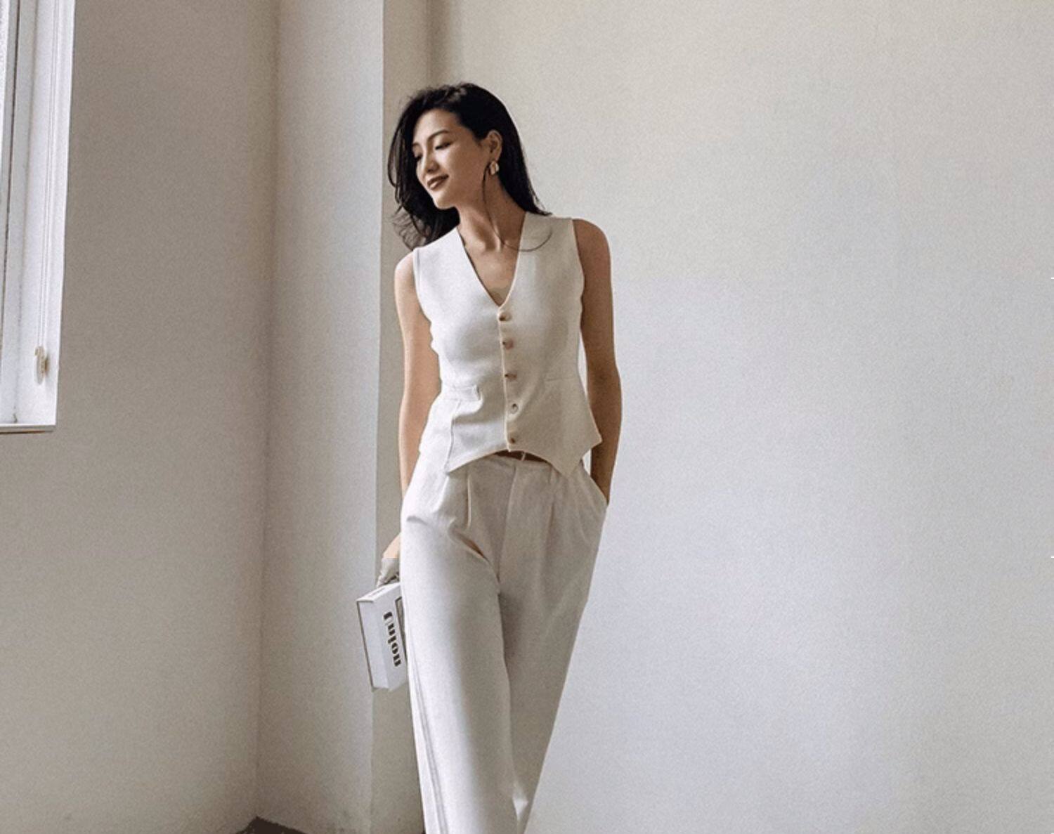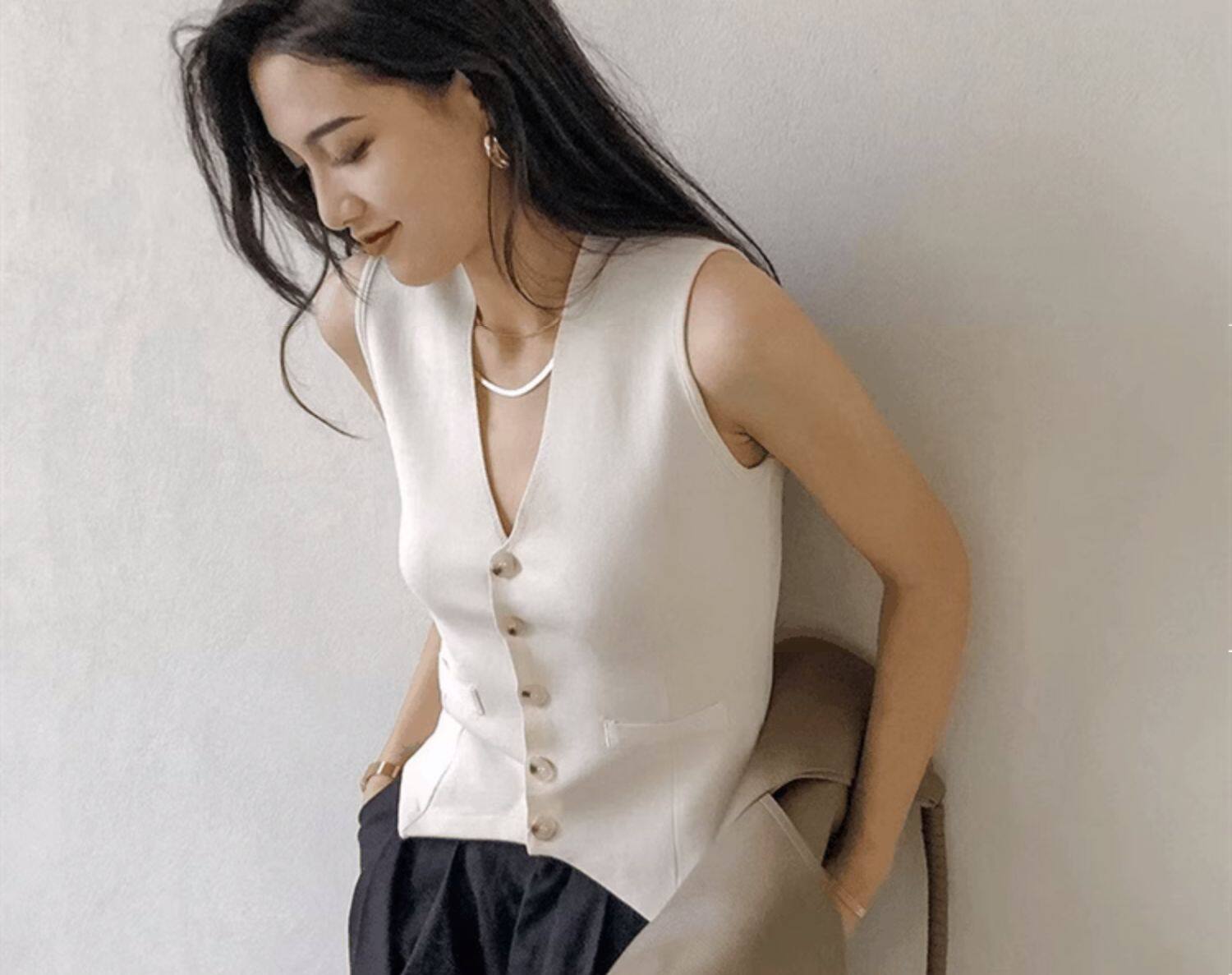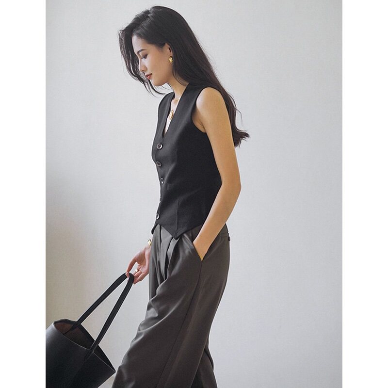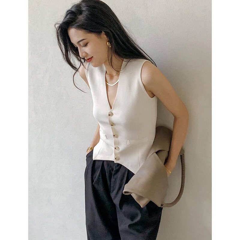 Пиджак классического кроя, жилет, тонкая майка топ, пони без рукавов, в стиле Шанель