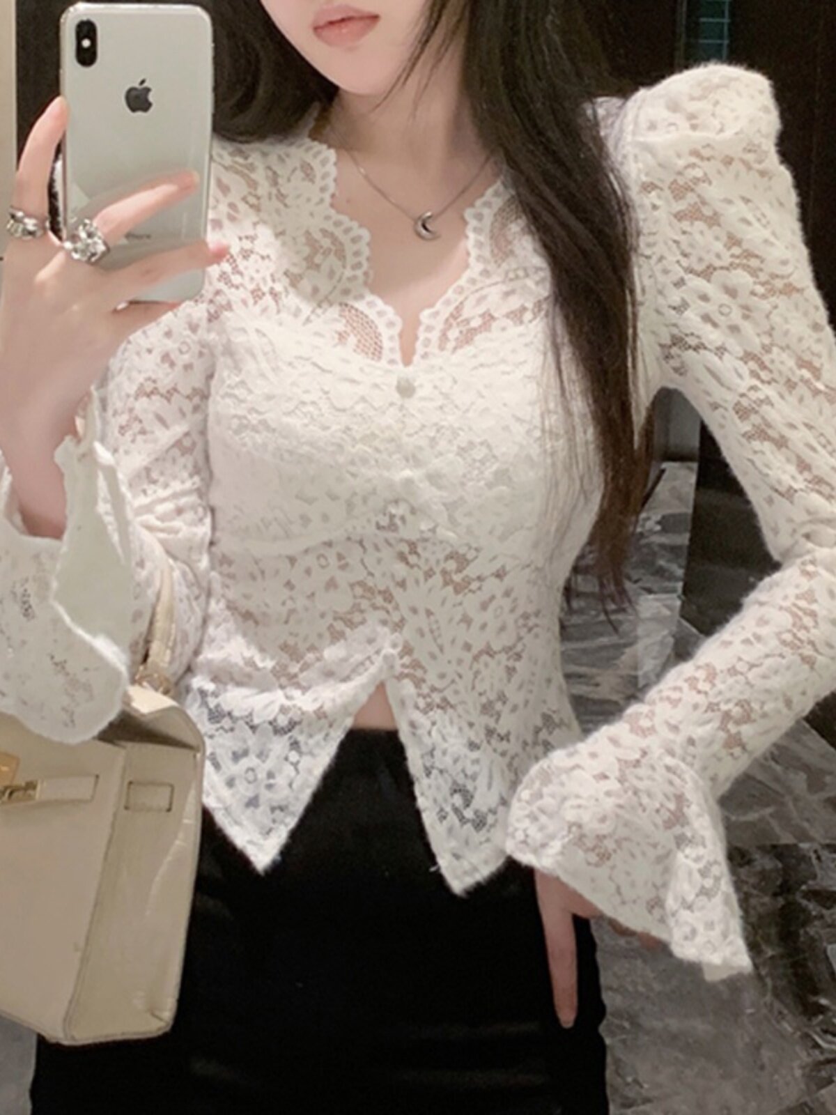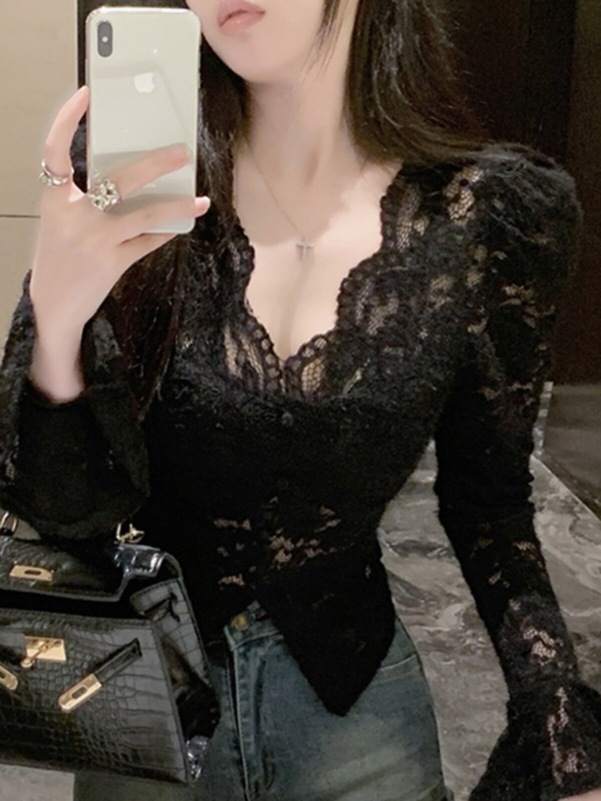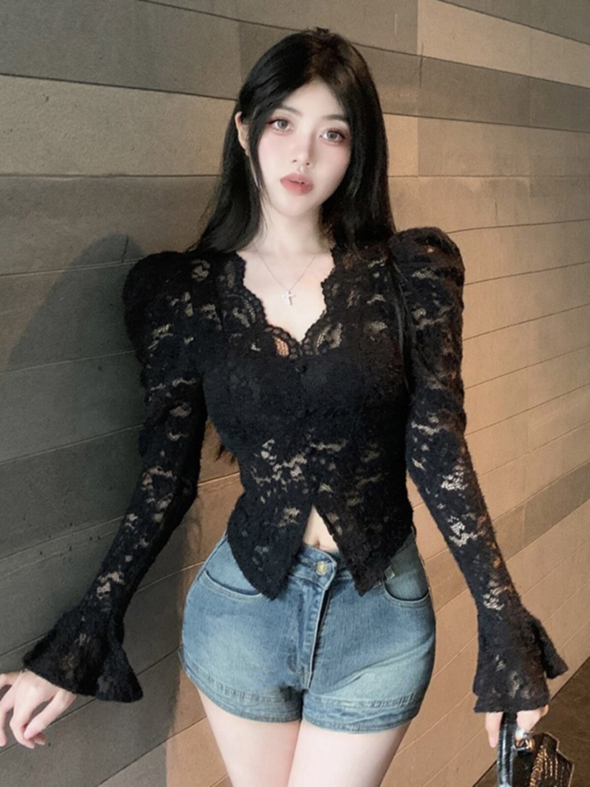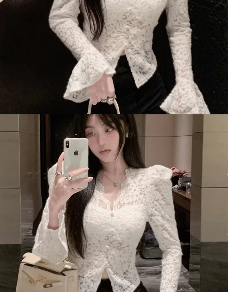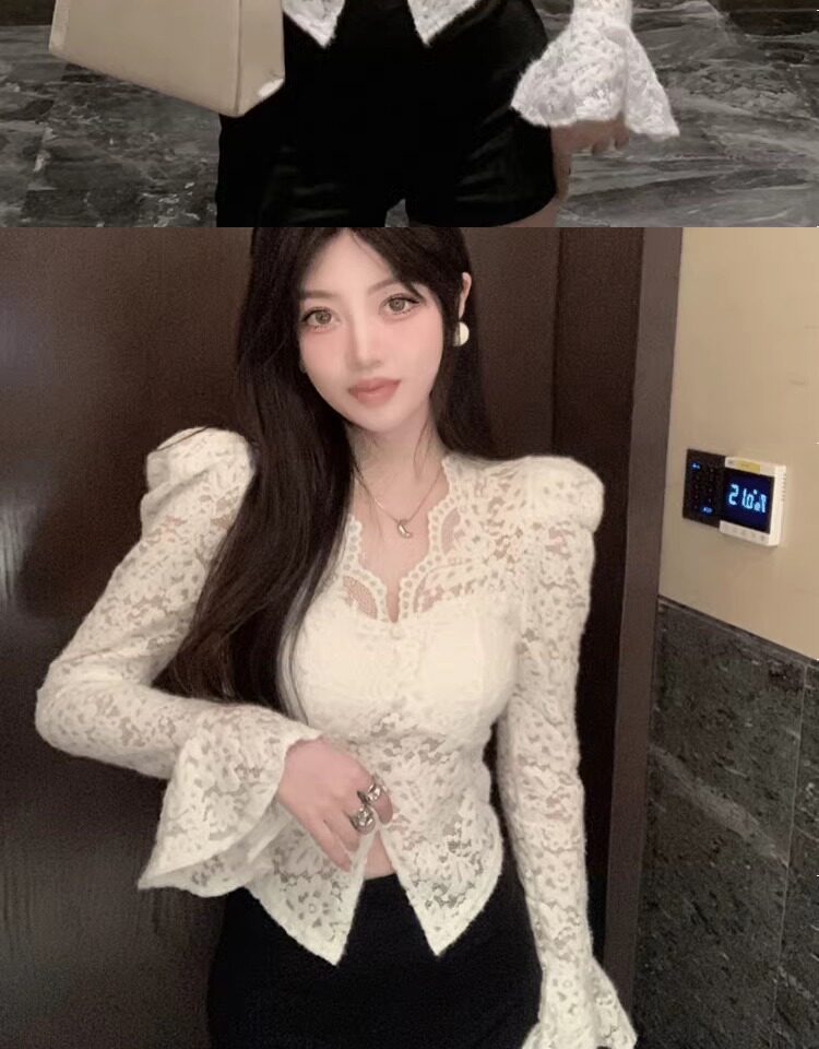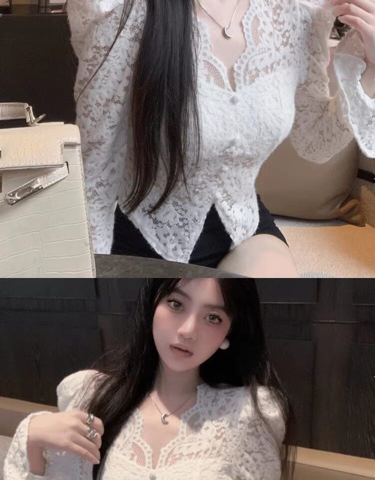 Кружевной шелковый приятный телу демисезонный сексуальный короткий корсет, V-образный вырез, рукава фонарики