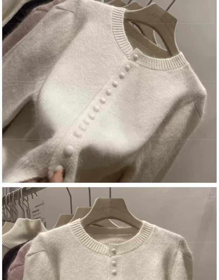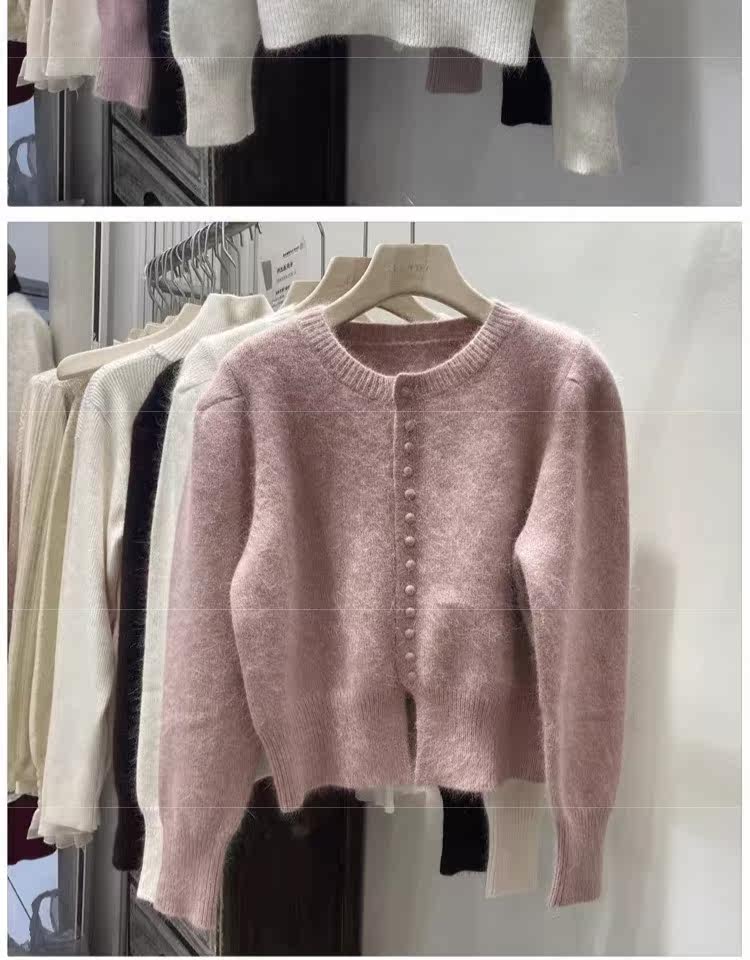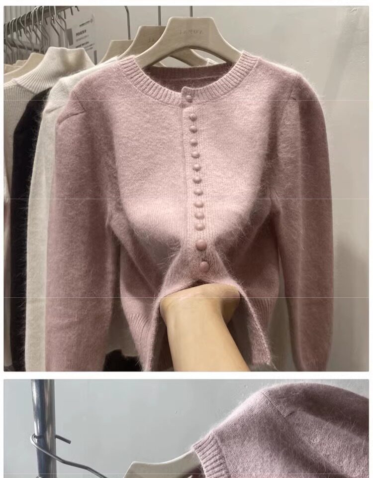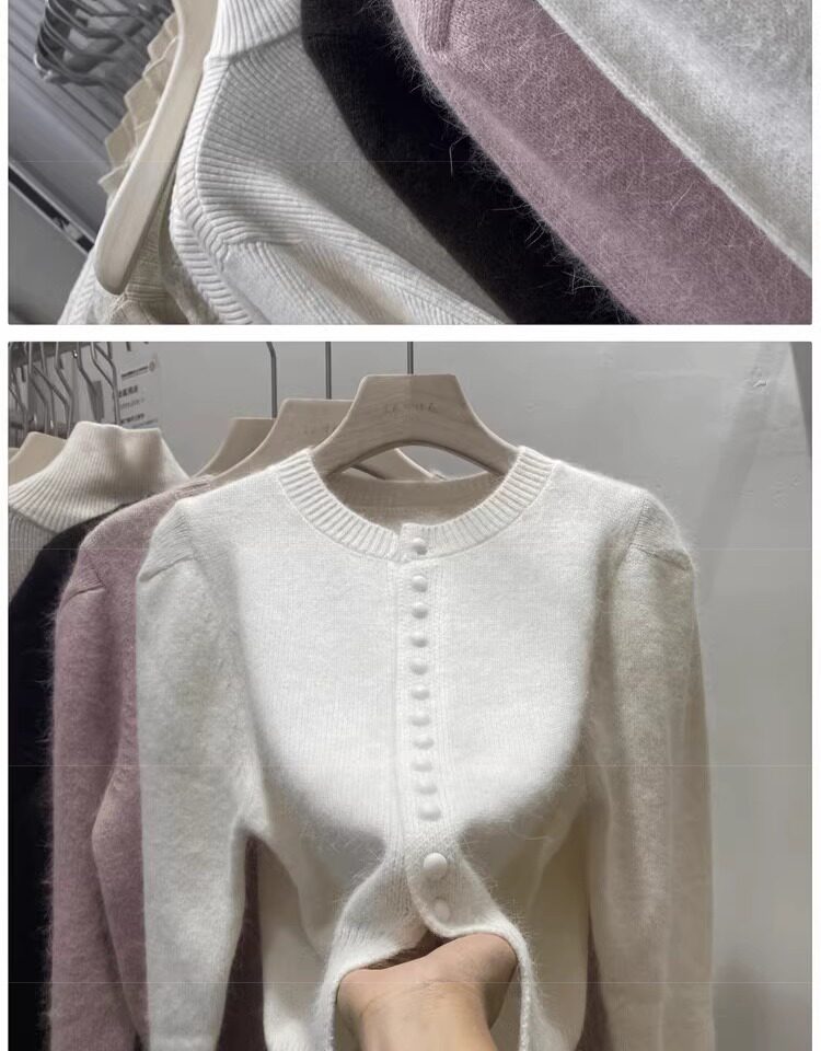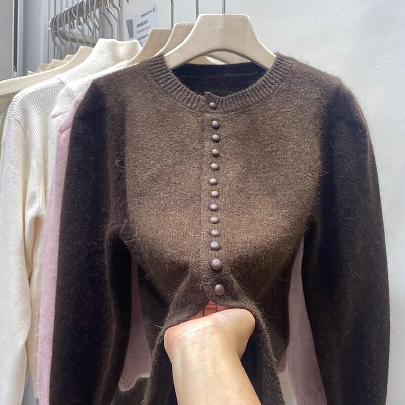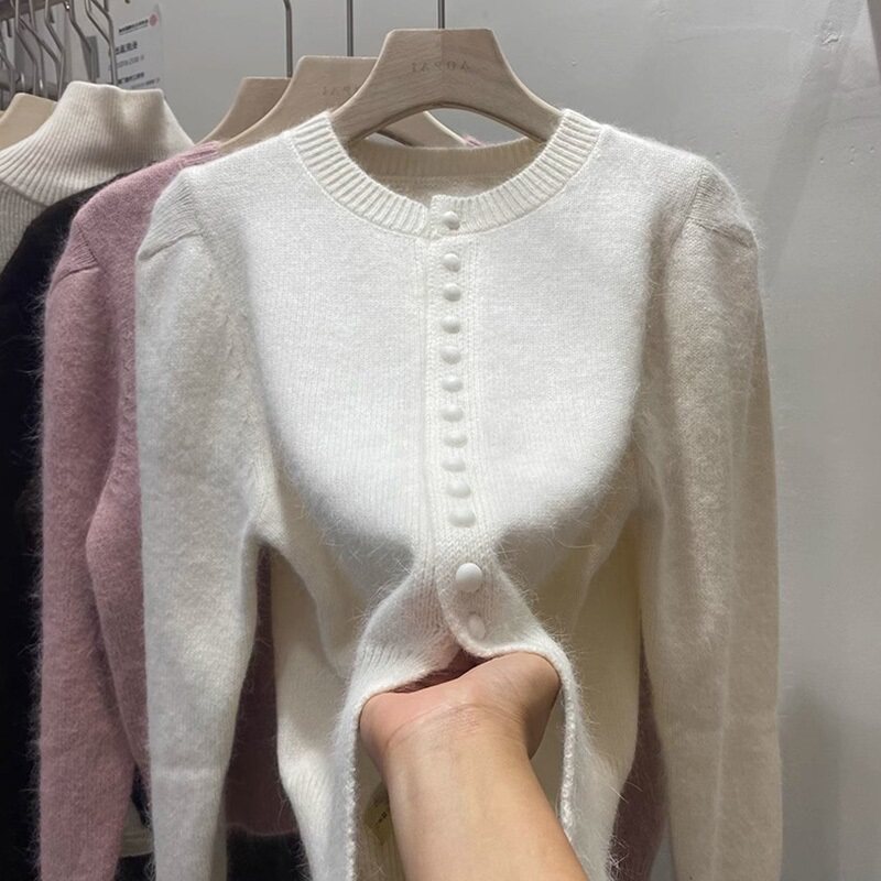Базовый приятный телу свитер, демисезонный шерстяной кардиган, куртка, рукава фонарики, изысканный стиль, увеличенная толщина